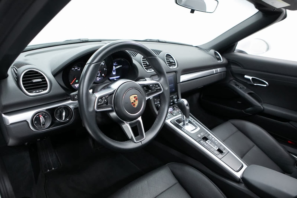 Porsche Certified, 2-Way Sport Seats, 4-Wheel Disc Brakes, 6 Speakers, ABS brakes, Air Conditioning, Alloy wheels, AM/FM radio: SiriusXM, Brake assist, Bumpers: body-color, CD player, Convertible roof lining, Convertible roof wind blocker, Delay-off headlights, Driver door bin, Driver vanity mirror, Dual front impact airbags, Dual front side impact airbags, DVD-Audio, Electronic Stability Control, Exterior Parking Camera Rear, Four wheel independent suspension, Front anti-roll bar, Front Bucket Seats, Front Center Armrest, Front reading lights, Fully automatic headlights, Garage door transmitter: HomeLink, Glass rear window, Headlight cleaning, Heated door mirrors, High intensity discharge headlights: Bi-Xenon, Illuminated entry, Integrated roll-over protection, Knee airbag, Leather Shift Knob, Low tire pressure warning, Occupant sensing airbag, Outside temperature display, Overhead airbag, Partial Leather Seat Trim, Passenger door bin, Passenger vanity mirror, Porsche Communication Management, Power convertible roof, Power door mirrors, Power driver seat, Power passenger seat, Power steering, Power windows, Radio data system, Rear anti-roll bar, Rear window defroster, Remote keyless entry, Security system, Speed control, Spoiler, Sport steering wheel, Tachometer, Telescoping steering wheel, Tilt steering wheel, Traction control, Trip computer, Variably intermittent wipers, Wheels: 18 Boxster Design. Odometer is 23658 miles below market average! White 2019 Porsche 718 Boxster Base RWD 2.0L H4 Turbocharged DOHC 16V LEV3-ULEV125 300hp
