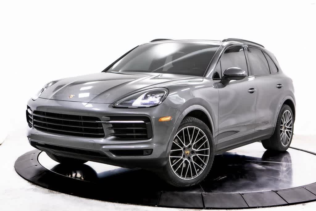 Porsche Certified, Black Leather, 10 Speakers, 4-Wheel Disc Brakes, 8-Way Power Seats, ABS brakes, Adaptive suspension, Air Conditioning, Alloy wheels, AM/FM radio: SiriusXM, Apple CarPlay, Automatic temperature control, Axle Ratio: TBD, Brake assist, Bumpers: body-color, Delay-off headlights, Driver door bin, Driver vanity mirror, Dual front impact airbags, Dual front side impact airbags, Electronic Stability Control, Exterior Parking Camera Rear, Four wheel independent suspension, Front anti-roll bar, Front Bucket Seats, Front Center Armrest, Front dual zone A/C, Front reading lights, Fully automatic headlights, Garage door transmitter: HomeLink, Heated door mirrors, Illuminated entry, Knee airbag, Leather Shift Knob, Low tire pressure warning, Navigation system: Porsche Communication Management (PCM), Occupant sensing airbag, Outside temperature display, Overhead airbag, Overhead console, Panic alarm, Partial Leather Seat Trim, Passenger door bin, Passenger vanity mirror, Porsche Communication Management, Power door mirrors, Power driver seat, Power Liftgate, Power passenger seat, Power steering, Power windows, Radio data system, Rain sensing wipers, Rear anti-roll bar, Rear fog lights, Rear reading lights, Rear seat center armrest, Rear side impact airbag, Rear window defroster, Rear window wiper, Remote keyless entry, Security system, Speed control, Split folding rear seat, Spoiler, Steering wheel mounted audio controls, Tachometer, Telescoping steering wheel, Tilt steering wheel, Traction control, Trip computer, Turn signal indicator mirrors, Variably intermittent wipers, Voltmeter, Wheels: 19 Cayenne, Black Leather. Odometer is 4908 miles below market average! Quartzite Grey Metallic 2020 Porsche Cayenne Base AWD 8-Speed Automatic with Tiptronic 3.0L V6