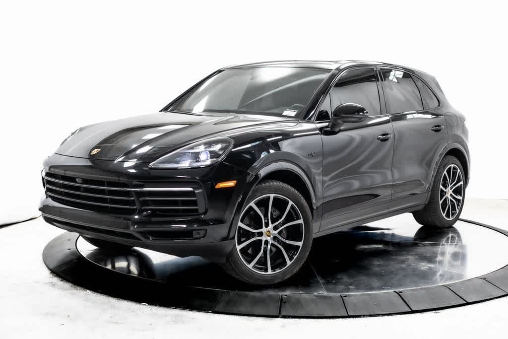 Porsche Certified, Electric Motor, 14 Speakers, 4-Wheel Disc Brakes, 8-Way Sport Seats, ABS brakes, Adaptive suspension, Air Conditioning, Alloy wheels, AM/FM radio: SiriusXM, Apple CarPlay, Auto-dimming door mirrors, Auto-dimming Rear-View mirror, Automatic temperature control, Axle Ratio: TBD, Brake assist, Bumpers: body-color, Delay-off headlights, Driver door bin, Driver vanity mirror, Dual front impact airbags, Dual front side impact airbags, Electronic Stability Control, Exterior Parking Camera Rear, Four wheel independent suspension, Front anti-roll bar, Front Bucket Seats, Front Center Armrest, Front dual zone A/C, Front reading lights, Fully automatic headlights, Garage door transmitter: HomeLink, Heated door mirrors, Heated front seats, Illuminated entry, Knee airbag, Leather Seat Trim, Leather Shift Knob, Low tire pressure warning, Navigation System, Occupant sensing airbag, Outside temperature display, Overhead airbag, Overhead console, Panic alarm, Passenger door bin, Passenger vanity mirror, Porsche Communication Management, Power door mirrors, Power driver seat, Power Liftgate, Power moonroof: Panoramic, Power passenger seat, Power steering, Power windows, Radio data system, Rain sensing wipers, Rear anti-roll bar, Rear fog lights, Rear reading lights, Rear seat center armrest, Rear side impact airbag, Rear window defroster, Rear window wiper, Remote keyless entry, Security system, Speed control, Speed-sensing steering, Split folding rear seat, Spoiler, Steering wheel mounted audio controls, Tachometer, Telescoping steering wheel, Tilt steering wheel, Traction control, Trip computer, Turn signal indicator mirrors, Variably intermittent wipers, Voltmeter, Wheels: 21 RS Spyder Design in Satin Platinum, Electric Motor. Black 2022 Porsche Cayenne E-Hybrid Platinum Edition Platinum Edition AWD 8-Speed Automatic with Tiptronic Electric Motor