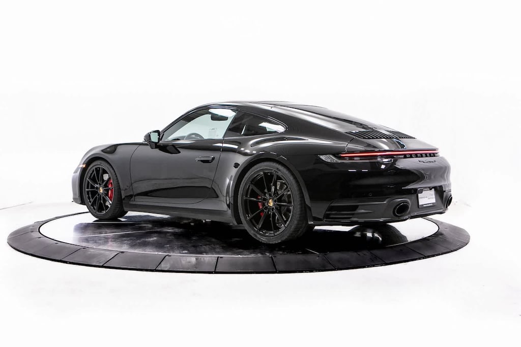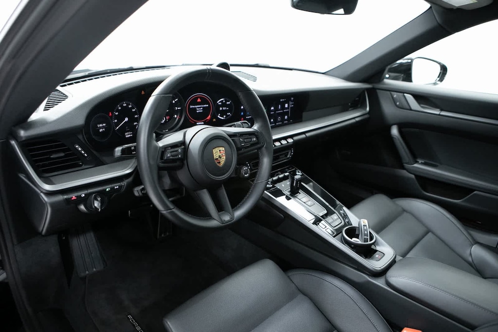 Porsche Certified, 4-Way Sport Seats, 4-Wheel Disc Brakes, 8 Speakers, ABS brakes, Adaptive suspension, Air Conditioning, Alloy wheels, Auto-dimming door mirrors, Auto-dimming Rear-View mirror, Automatic temperature control, Brake assist, Bumpers: body-color, Delay-off headlights, Driver door bin, Driver vanity mirror, Dual front impact airbags, Dual front side impact airbags, Electronic Stability Control, Exterior Parking Camera Rear, Four wheel independent suspension, Front anti-roll bar, Front Bucket Seats, Front Center Armrest, Front dual zone A/C, Front reading lights, Fully automatic headlights, Garage door transmitter: HomeLink, Heated door mirrors, Heated front seats, Illuminated entry, Leather Seat Trim, Leather steering wheel, Low tire pressure warning, Navigation system: Porsche Communication Management (PCM), Occupant sensing airbag, Outside temperature display, Overhead airbag, Overhead console, Passenger door bin, Passenger vanity mirror, Porsche Communication Management, Power door mirrors, Power driver seat, Power passenger seat, Power steering, Power windows, Radio data system, Rain sensing wipers, Rear anti-roll bar, Rear fog lights, Rear window defroster, Remote keyless entry, Security system, Speed control, Split folding rear seat, Spoiler, Sport steering wheel, Steering wheel mounted audio controls, Tachometer, Telescoping steering wheel, Tilt steering wheel, Traction control, Trip computer, Variably intermittent wipers, Wheels: 20 Front/21 Rear Carrera S. Black 2023 Porsche 911 Carrera S Carrera S RWD 8-Speed Porsche Doppelkupplung (PDK) 3.0L H6 Turbocharged DOHC 24V LEV3-ULEV70 443hp