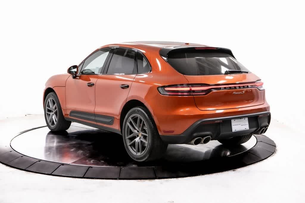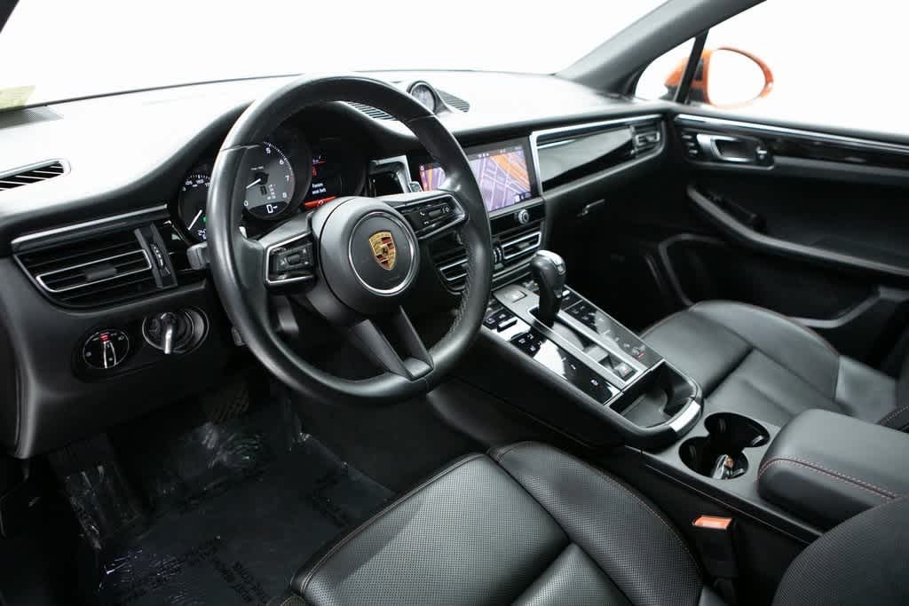 Porsche Certified, 10 Speakers, 14-Way Power Seats, 4-Wheel Disc Brakes, 4.67 Axle Ratio, 8-Way Power Seats, ABS brakes, Air Conditioning, Alloy wheels, AM/FM radio: SiriusXM, Apple CarPlay & Android Auto, Auto-dimming door mirrors, Auto-dimming Rear-View mirror, Automatic temperature control, BOSE Surround Sound System, Brake assist, Bumpers: body-color, Delay-off headlights, Door Handles in High Gloss Black, Driver door bin, Driver vanity mirror, Dual front impact airbags, Dual front side impact airbags, Electronic Stability Control, Emergency communication system: Car Connect Services, Exterior Parking Camera Rear, Four wheel independent suspension, Front anti-roll bar, Front Bucket Seats, Front Center Armrest, Front dual zone A/C, Front reading lights, Fully automatic headlights, Garage door transmitter: HomeLink, Heated door mirrors, Heated front seats, Illuminated entry, Lane Change Assist (LCA), Leather Shift Knob, Leather steering wheel, LED Headlights w/Dynamic Light System Plus, Low tire pressure warning, Memory Package, Memory seat, Navigation System, Occupant sensing airbag, Outside temperature display, Overhead airbag, Overhead console, Panic alarm, Panoramic Roof System, Partial Leather Seat Trim w/Sport-Tex, Passenger door bin, Passenger vanity mirror, Porsche Communication Management, Power door mirrors, Power driver seat, Power Liftgate, Power passenger seat, Power steering, Power windows, Premium Package Plus, Radio data system, Rain sensing wipers, Rear air conditioning, Rear anti-roll bar, Rear Heated Seats, Rear reading lights, Rear seat center armrest, Rear side impact airbag, Rear window defroster, Rear window wiper, Remote keyless entry, Security system, Speed control, Speed-sensing steering, Split folding rear seat, Spoiler, Sport steering wheel, SportDesign Exterior Mirrors in High Gloss Black, Steering wheel mounted audio controls, Sunblind for Rear Side Windows, Tachometer, Telescoping steering wheel, Tilt steering wheel, Traction control, Trip computer, Turn signal indicator mirrors, Under Door Puddle Light Projectors, Variably intermittent wipers, Ventilated Front Seats, Wheels: 20 Macan S in Highly Polished Dk Titanium, Wheels: 20 Macan S in Vesuvius Grey, Window Trim in High Gloss Black. Papaya Metallic 2023 Porsche Macan S S AWD 7-Speed Porsche Doppelkupplung (PDK) V6