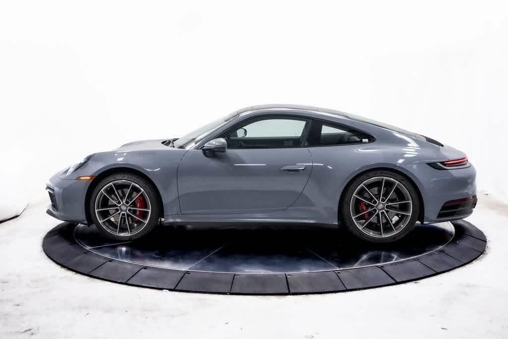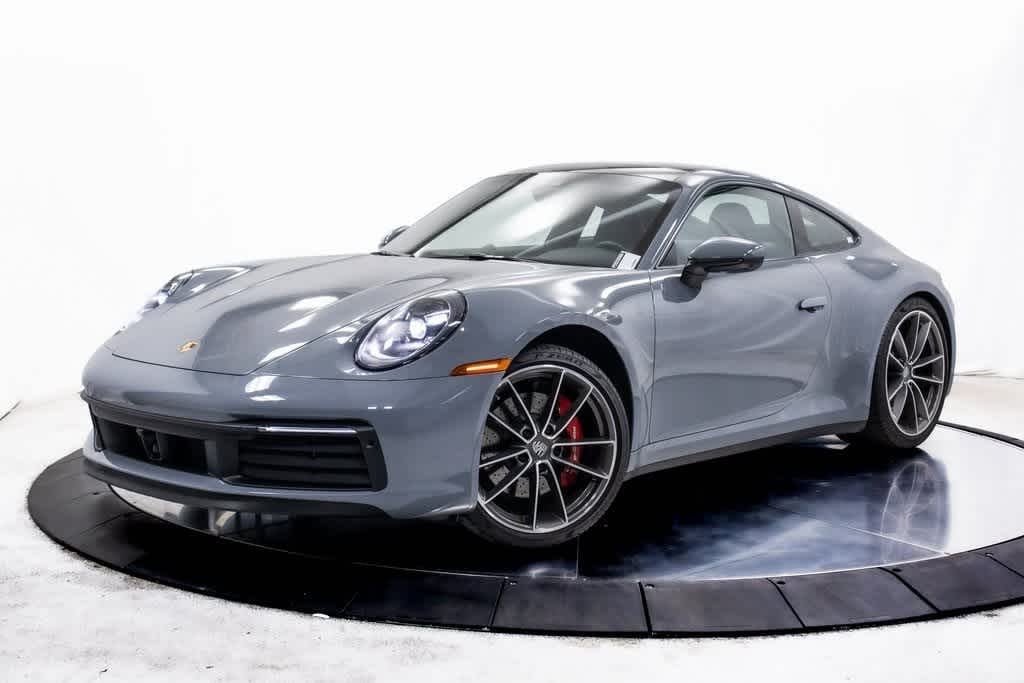 Porsche Certified, 4-Way Sport Seats, 4-Wheel Disc Brakes, 8 Speakers, ABS brakes, Adaptive suspension, Air Conditioning, Alloy wheels, Auto-dimming door mirrors, Auto-dimming Rear-View mirror, Automatic temperature control, Brake assist, Bumpers: body-color, Delay-off headlights, Driver door bin, Driver vanity mirror, Dual front impact airbags, Dual front side impact airbags, Electronic Stability Control, Exterior Parking Camera Rear, Four wheel independent suspension, Front anti-roll bar, Front Bucket Seats, Front Center Armrest, Front dual zone A/C, Front reading lights, Fully automatic headlights, Garage door transmitter: HomeLink, Heated door mirrors, Heated front seats, Illuminated entry, Leather Seat Trim, Leather steering wheel, Low tire pressure warning, Navigation system: Porsche Communication Management (PCM), Occupant sensing airbag, Outside temperature display, Overhead airbag, Overhead console, Passenger door bin, Passenger vanity mirror, Porsche Communication Management, Power door mirrors, Power driver seat, Power passenger seat, Power steering, Power windows, Radio data system, Rain sensing wipers, Rear anti-roll bar, Rear fog lights, Rear window defroster, Remote keyless entry, Security system, Sound Package Plus, Speed control, Split folding rear seat, Spoiler, Sport steering wheel, Steering wheel mounted audio controls, Tachometer, Telescoping steering wheel, Tilt steering wheel, Traction control, Trip computer, Variably intermittent wipers, Wheels: 20 Front/21 Rear Carrera S. Arctic Grey 2024 Porsche 911 Carrera S Carrera S RWD 8-Speed Porsche Doppelkupplung (PDK) 3.0L H6 Turbocharged DOHC 24V LEV3-ULEV70 443hp