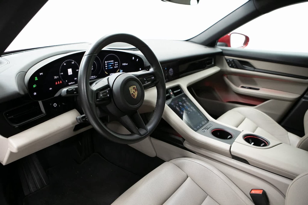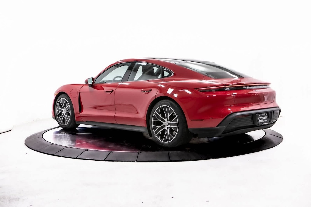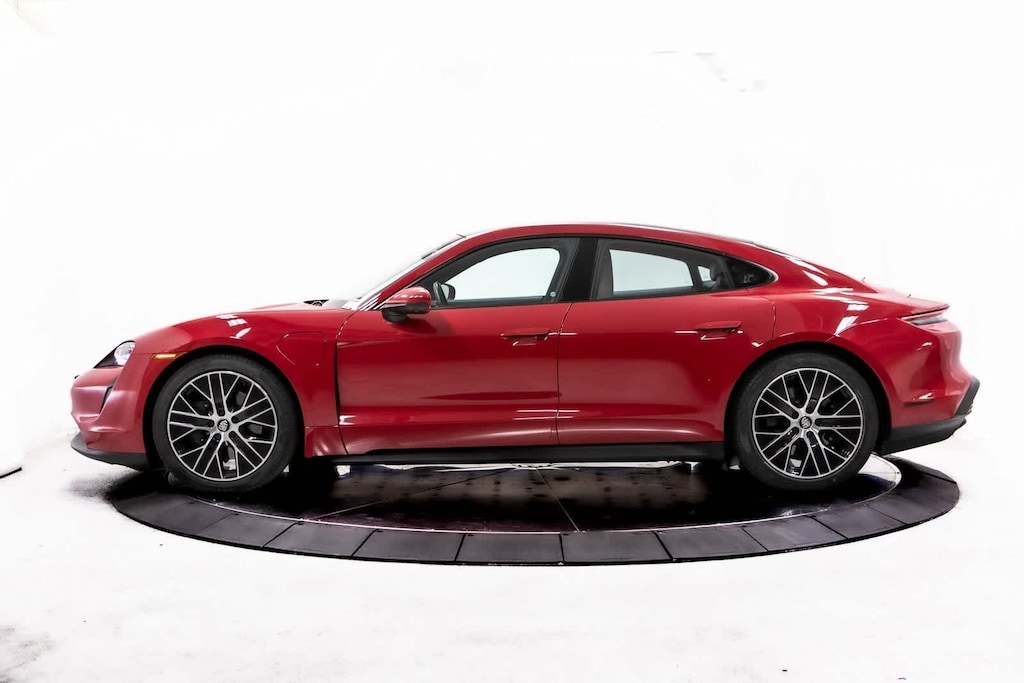 Porsche Certified, 10 Speakers, 14-Way Power Seats w/Comfort Memory, 4-Wheel Disc Brakes, 8-Way Power Front Seats, ABS brakes, Air Conditioning, Alloy wheels, Auto-dimming door mirrors, Auto-dimming Rear-View mirror, Automatic temperature control, BOSE Surround Sound System, Brake assist, Bumpers: body-color, Compass, Delay-off headlights, Driver door bin, Driver vanity mirror, Dual front impact airbags, Dual front side impact airbags, Electronic Stability Control, Exterior Parking Camera Rear, Four wheel independent suspension, Front anti-roll bar, Front Bucket Seats, Front Center Armrest, Front dual zone A/C, Front reading lights, Front Seat Ventilation, Fully automatic headlights, Garage door transmitter: HomeLink, Heated door mirrors, Heated front seats, Illuminated entry, Ionizer, Knee airbag, Lane Change Assist (LCA), Leather steering wheel, Low tire pressure warning, Memory seat, Navigation system: Porsche Communication Management (PCM), Occupant sensing airbag, Outside temperature display, Overhead airbag, Overhead console, Panic alarm, Partial Leather Seat Trim, Passenger door bin, Passenger vanity mirror, Porsche Communication Management, Porsche Dynamic Light System Plus (PDLS+), Power door mirrors, Power driver seat, Power Folding Exterior Mirrors, Power passenger seat, Power steering, Power windows, Premium Package, Radio data system, Rain sensing wipers, Rear anti-roll bar, Rear fog lights, Rear reading lights, Rear seat center armrest, Rear side impact airbag, Rear window defroster, Remote keyless entry, Security system, Speed control, Speed-sensing steering, Split folding rear seat, Spoiler, Sport steering wheel, Steering wheel mounted audio controls, Storage Package, Surround View, Telescoping steering wheel, Tilt steering wheel, Traction control, Trip computer, Variably intermittent wipers, Wheels: 19 Taycan S Aero. Carmine Red 2024 Porsche Taycan Base RWD 2-Speed Automatic Electric Motor