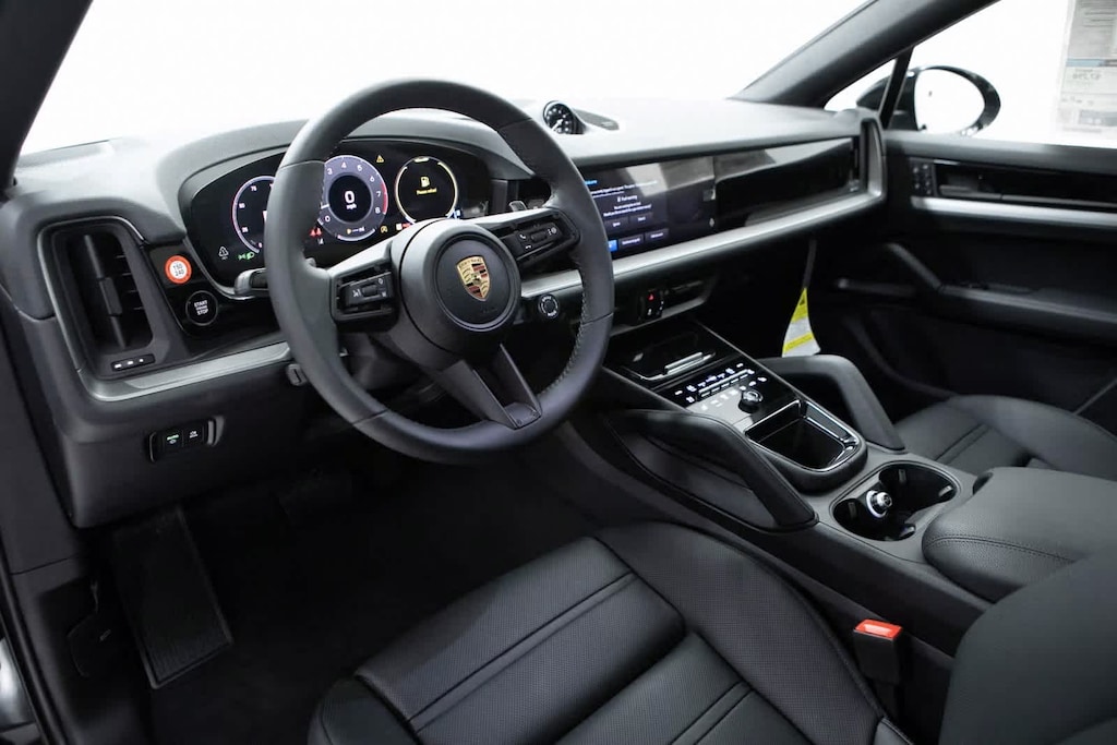 Porsche Certified, 10 Speakers, 14-Way Power Seats w/Comfort Memory, 4-Wheel Disc Brakes, 4-Zone Climate Control, 8-Way Sport Seats, ABS brakes, Adaptive Cruise Control w/Lane Keep Assist (LKA), Adaptive suspension, Air Conditioning, Alloy wheels, AM/FM radio: SiriusXM w/360L, Apple CarPlay & Android Auto, Audio memory, Auto-dimming door mirrors, Auto-dimming Rear-View mirror, Automatic temperature control, BOSE Surround Sound System, Brake assist, Bumpers: body-color, Compass, Delay-off headlights, Driver door bin, Driver vanity mirror, Dual front impact airbags, Dual front side impact airbags, Electronic Stability Control, Exterior Parking Camera Rear, Four wheel independent suspension, Front anti-roll bar, Front Bucket Seats, Front Center Armrest, Front dual zone A/C, Front reading lights, Front Ventilated Seats, Fully automatic headlights, Garage door transmitter: HomeLink, HD-Matrix Design LED Headlights, Heated door mirrors, Heated front seats, Heated GT Sport Steering Wheel in Leather, Heated steering wheel, HVAC memory, Illuminated entry, Knee airbag, Leather Seat Trim, Leather steering wheel, Low tire pressure warning, Memory seat, Navigation System, Occupant sensing airbag, Outside temperature display, Overhead airbag, Overhead console, Panic alarm, Passenger door bin, Passenger vanity mirror, Porsche Communication Management, Porsche Crest on Front Headrests, Porsche Logo & Model Designation on Rear in Black, Power door mirrors, Power driver seat, Power Liftgate, Power passenger seat, Power steering, Power windows, Premium Package Plus, Radio data system, Rain sensing wipers, Rear anti-roll bar, Rear fog lights, Rear Heated Seats, Rear reading lights, Rear seat center armrest, Rear side impact airbag, Rear window defroster, Remote keyless entry, Security system, Speed control, Speed-sensing steering, Split folding rear seat, Spoiler, Sport Tailpipes in Dark Bronze, Steering wheel mounted audio controls, Tachometer, Telescoping steering wheel, Tilt steering wheel, Traction control, Trip computer, Turn signal indicator mirrors, Under Door Puddle Light Projectors, Variably intermittent wipers, Voltmeter, Wheels: 20 Cayenne Design, Wheels: 21 RS Spyder Design. Odometer is 1237 miles below market average! Black 2025 Porsche Cayenne Coupe Base AWD 8-Speed Automatic with Tiptronic 3.0L V6