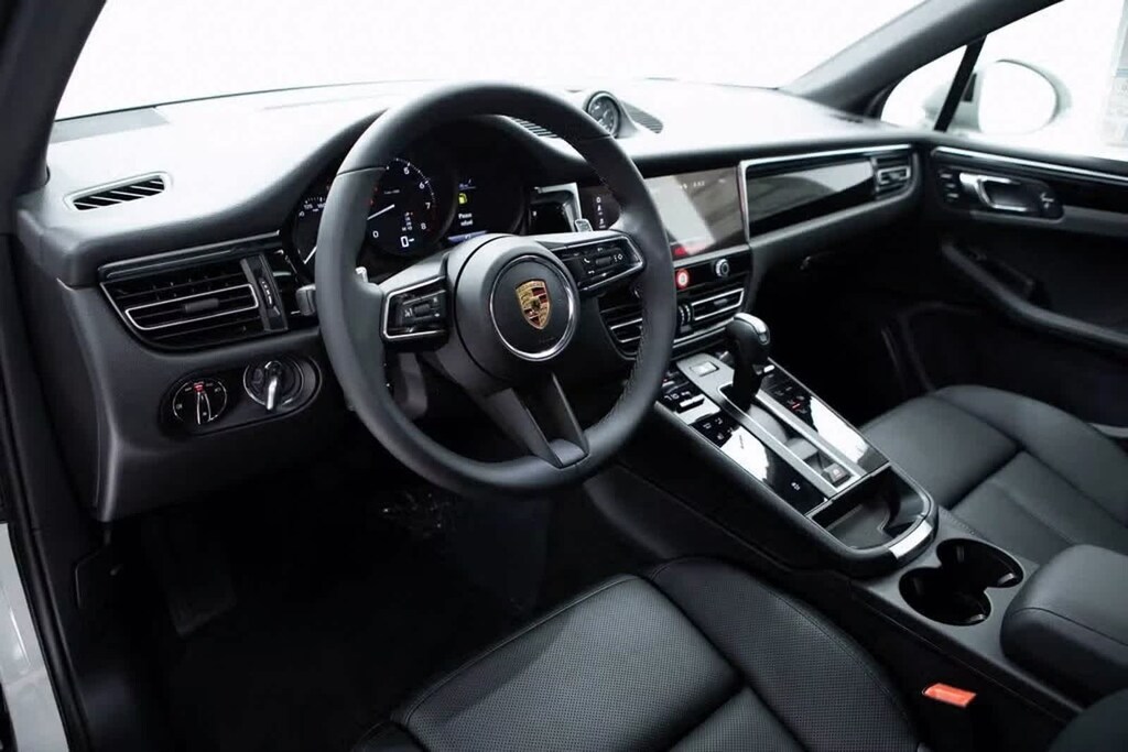Porsche Certified, 14-Way Power Seats w/Memory Package, 4-Wheel Disc Brakes, 8 Speakers, 8-Way Heated Front Comfort Seats, ABS brakes, Air Conditioning, Alloy wheels, AM/FM radio: SiriusXM, Apple CarPlay, Auto-dimming door mirrors, Auto-dimming Rear-View mirror, Automatic temperature control, Brake assist, Bumpers: body-color, Delay-off headlights, Driver door bin, Driver vanity mirror, Dual front impact airbags, Dual front side impact airbags, Electronic Stability Control, Emergency communication system, Exterior Parking Camera Rear, Four wheel independent suspension, Front anti-roll bar, Front Bucket Seats, Front Center Armrest, Front dual zone A/C, Front reading lights, Front Ventilated Seats, Fully automatic headlights, Garage door transmitter: HomeLink, Heated door mirrors, Heated front seats, Illuminated entry, Lane Change Assist (LCA), Leather Shift Knob, Leather steering wheel, LED Headlights w/Porsche Dynamic Light System Plus, Low tire pressure warning, Memory seat, Navigation System, Occupant sensing airbag, Outside temperature display, Overhead airbag, Overhead console, Panic alarm, Panoramic Roof System, Passenger door bin, Passenger vanity mirror, Porsche Communication Management, Power door mirrors, Power driver seat, Power Liftgate, Power passenger seat, Power steering, Power windows, Premium Package Plus, Radio data system, Rain sensing wipers, Rear air conditioning, Rear anti-roll bar, Rear Heated Seats, Rear reading lights, Rear seat center armrest, Rear side impact airbag, Rear window defroster, Rear window wiper, Remote keyless entry, Security system, Speed control, Speed-sensing steering, Split folding rear seat, Spoiler, Sport steering wheel, Standard Seat Trim, Steering wheel mounted audio controls, Tachometer, Telescoping steering wheel, Tilt steering wheel, Traction control, Trip computer, Turn signal indicator mirrors, Variably intermittent wipers, Wheels: 19 Macan. Odometer is 2115 miles below market average! Black 2025 Porsche Macan Base AWD 7-Speed Porsche Doppelkupplung (PDK) 2.0L I4 Turbocharged