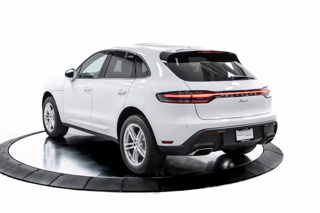 Porsche Certified, 14-Way Power Seats w/Memory Package, 4-Wheel Disc Brakes, 8 Speakers, 8-Way Heated Front Comfort Seats, ABS brakes, Air Conditioning, Alloy wheels, AM/FM radio: SiriusXM, Apple CarPlay, Auto-dimming door mirrors, Auto-dimming Rear-View mirror, Automatic temperature control, Brake assist, Bumpers: body-color, Delay-off headlights, Driver door bin, Driver vanity mirror, Dual front impact airbags, Dual front side impact airbags, Electronic Stability Control, Emergency communication system, Exterior Parking Camera Rear, Four wheel independent suspension, Front anti-roll bar, Front Bucket Seats, Front Center Armrest, Front dual zone A/C, Front reading lights, Front Ventilated Seats, Fully automatic headlights, Garage door transmitter: HomeLink, Heated door mirrors, Heated front seats, Illuminated entry, Lane Change Assist (LCA), Leather Shift Knob, Leather steering wheel, LED Headlights w/Porsche Dynamic Light System Plus, Low tire pressure warning, Memory seat, Navigation System, Occupant sensing airbag, Outside temperature display, Overhead airbag, Overhead console, Panic alarm, Panoramic Roof System, Passenger door bin, Passenger vanity mirror, Porsche Communication Management, Power door mirrors, Power driver seat, Power Liftgate, Power passenger seat, Power steering, Power windows, Premium Package Plus, Radio data system, Rain sensing wipers, Rear air conditioning, Rear anti-roll bar, Rear Heated Seats, Rear reading lights, Rear seat center armrest, Rear side impact airbag, Rear window defroster, Rear window wiper, Remote keyless entry, Security system, Speed control, Speed-sensing steering, Split folding rear seat, Spoiler, Sport steering wheel, Standard Seat Trim, Steering wheel mounted audio controls, Tachometer, Telescoping steering wheel, Tilt steering wheel, Traction control, Trip computer, Turn signal indicator mirrors, Variably intermittent wipers, Wheels: 19 Macan. White 2025 Porsche Macan Base AWD 7-Speed Porsche Doppelkupplung (PDK) 2.0L I4 Turbocharged