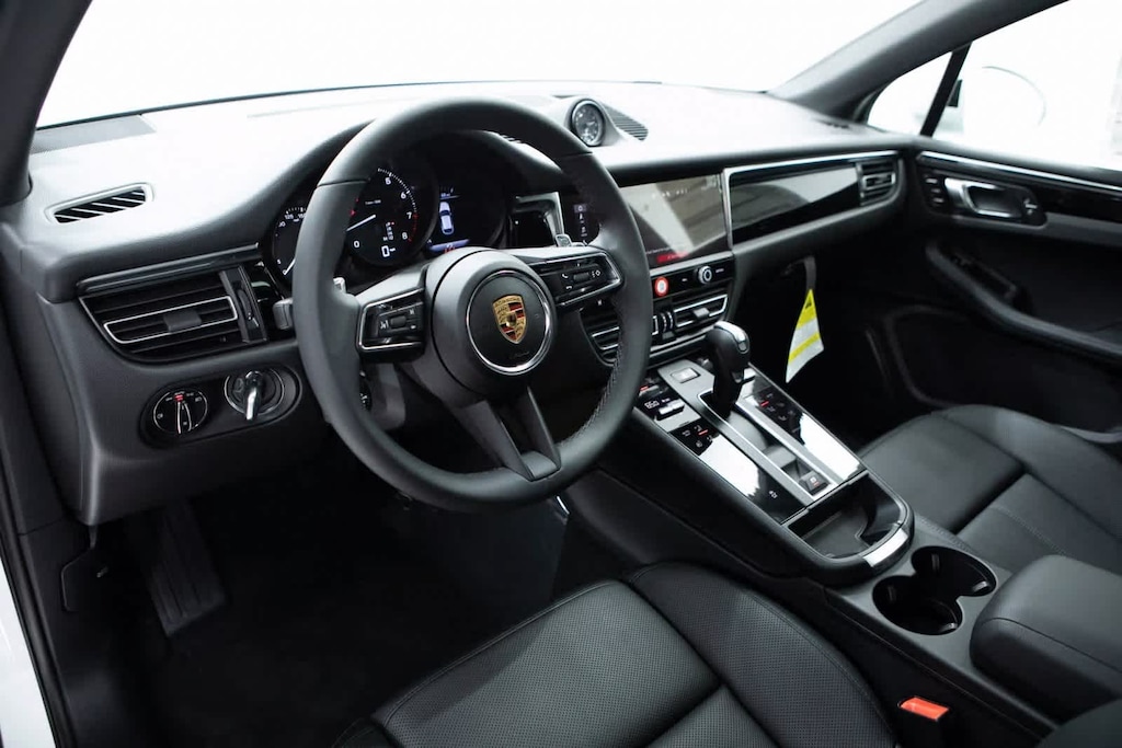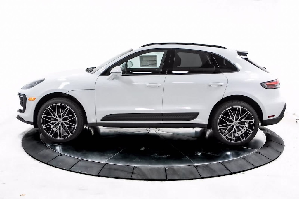 Porsche Certified, 14-Way Power Seats w/Memory Package, 4-Wheel Disc Brakes, 8 Speakers, 8-Way Heated Front Comfort Seats, ABS brakes, Air Conditioning, Alloy wheels, AM/FM radio: SiriusXM, Apple CarPlay, Auto-dimming door mirrors, Auto-dimming Rear-View mirror, Automatic temperature control, Brake assist, Bumpers: body-color, Delay-off headlights, Driver door bin, Driver vanity mirror, Dual front impact airbags, Dual front side impact airbags, Electronic Stability Control, Emergency communication system, Exterior Parking Camera Rear, Four wheel independent suspension, Front anti-roll bar, Front Bucket Seats, Front Center Armrest, Front dual zone A/C, Front reading lights, Front Ventilated Seats, Fully automatic headlights, Garage door transmitter: HomeLink, Heated door mirrors, Heated front seats, Illuminated entry, Lane Change Assist (LCA), Leather Shift Knob, Leather steering wheel, LED Headlights w/Porsche Dynamic Light System Plus, Low tire pressure warning, Memory seat, Navigation System, Occupant sensing airbag, Outside temperature display, Overhead airbag, Overhead console, Panic alarm, Panoramic Roof System, Passenger door bin, Passenger vanity mirror, Porsche Communication Management, Power door mirrors, Power driver seat, Power Liftgate, Power passenger seat, Power steering, Power windows, Premium Package Plus, Radio data system, Rain sensing wipers, Rear air conditioning, Rear anti-roll bar, Rear Heated Seats, Rear reading lights, Rear seat center armrest, Rear side impact airbag, Rear window defroster, Rear window wiper, Remote keyless entry, Security system, Speed control, Speed-sensing steering, Split folding rear seat, Spoiler, Sport steering wheel, Standard Seat Trim, Steering wheel mounted audio controls, Tachometer, Telescoping steering wheel, Tilt steering wheel, Traction control, Trip computer, Turn signal indicator mirrors, Variably intermittent wipers, Wheels: 19 Macan. Odometer is 1927 miles below market average! White 2025 Porsche Macan Base AWD 7-Speed Porsche Doppelkupplung (PDK) 2.0L I4 Turbocharged