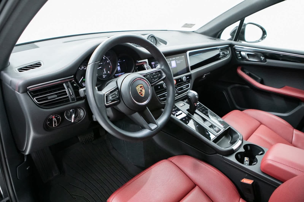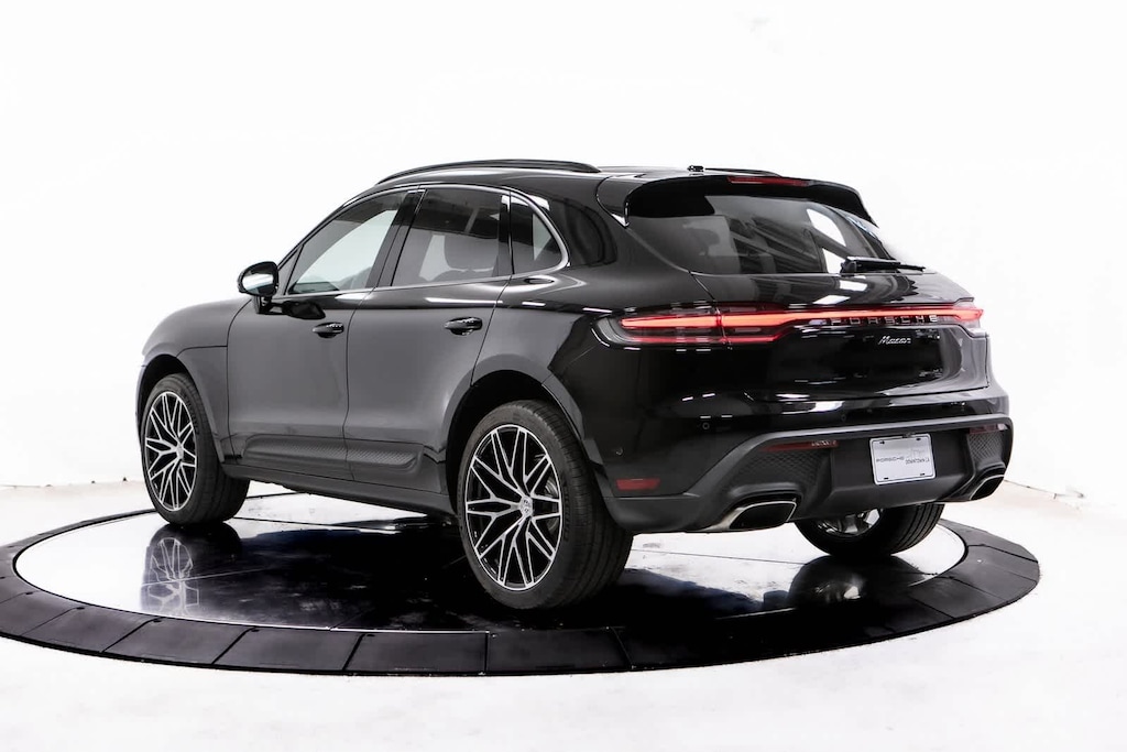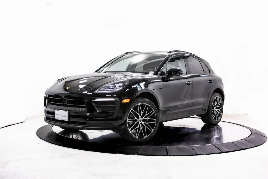 Porsche Certified, 14-Way Power Seats w/Memory Package, 4-Wheel Disc Brakes, 8 Speakers, 8-Way Heated Front Comfort Seats, ABS brakes, Air Conditioning, Alloy wheels, AM/FM radio: SiriusXM, Apple CarPlay, Auto-dimming door mirrors, Auto-dimming Rear-View mirror, Automatic temperature control, Brake assist, Bumpers: body-color, Delay-off headlights, Driver door bin, Driver vanity mirror, Dual front impact airbags, Dual front side impact airbags, Electronic Stability Control, Emergency communication system, Exterior Parking Camera Rear, Four wheel independent suspension, Front anti-roll bar, Front Bucket Seats, Front Center Armrest, Front dual zone A/C, Front reading lights, Front Ventilated Seats, Fully automatic headlights, Garage door transmitter: HomeLink, Heated door mirrors, Heated front seats, Illuminated entry, Lane Change Assist (LCA), Leather Shift Knob, Leather steering wheel, LED Headlights w/Porsche Dynamic Light System Plus, Low tire pressure warning, Memory seat, Navigation System, Occupant sensing airbag, Outside temperature display, Overhead airbag, Overhead console, Panic alarm, Panoramic Roof System, Passenger door bin, Passenger vanity mirror, Porsche Communication Management, Power door mirrors, Power driver seat, Power Liftgate, Power passenger seat, Power steering, Power windows, Premium Package Plus, Radio data system, Rain sensing wipers, Rear air conditioning, Rear anti-roll bar, Rear Heated Seats, Rear reading lights, Rear seat center armrest, Rear side impact airbag, Rear window defroster, Rear window wiper, Remote keyless entry, Security system, Speed control, Speed-sensing steering, Split folding rear seat, Spoiler, Sport steering wheel, Standard Seat Trim, Steering wheel mounted audio controls, Tachometer, Telescoping steering wheel, Tilt steering wheel, Traction control, Trip computer, Turn signal indicator mirrors, Variably intermittent wipers, Wheels: 19 Macan. Odometer is 1240 miles below market average! Black 2025 Porsche Macan Base AWD 7-Speed Porsche Doppelkupplung (PDK) 2.0L I4 Turbocharged