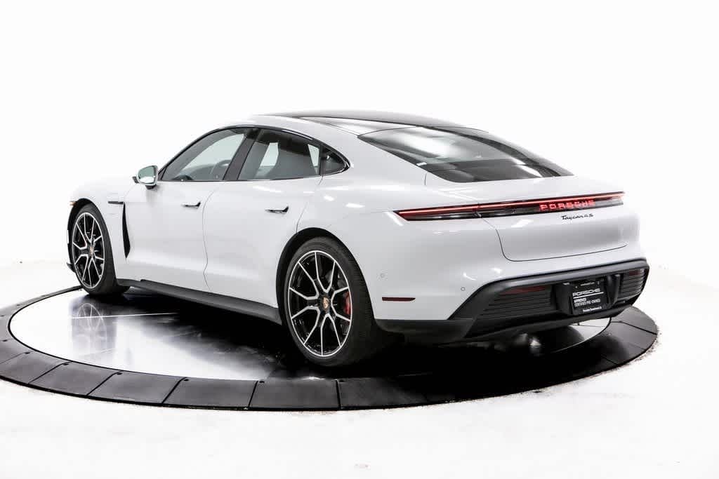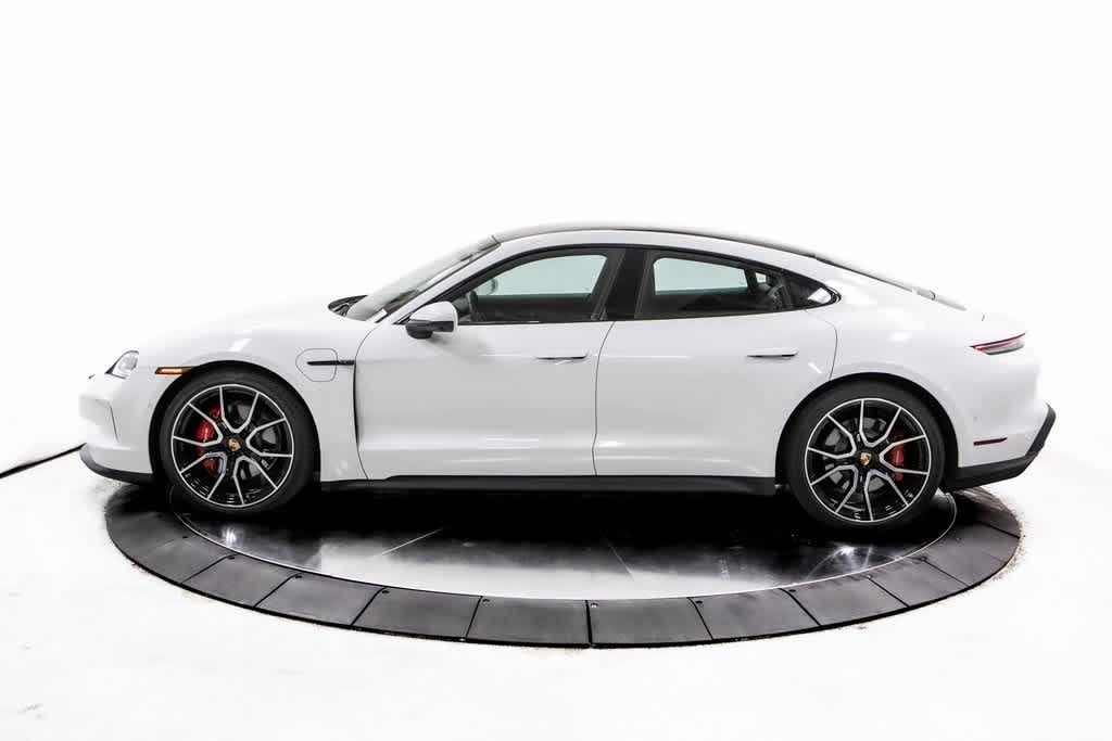 Porsche Certified, 10 Speakers, 14-Way Comfort Seats w/Comfort Memory, 4-Wheel Disc Brakes, 8-Way Comfort Seats, ABS brakes, Adaptive Cruise Control, Adaptive suspension, Advanced 4-Zone Climate Control, Air Conditioning, Air Quality System, Alloy wheels, Apple CarPlay & Android Auto, Artificial Leather Seat Trim, Auto High-beam Headlights, Auto-dimming door mirrors, Auto-dimming Rear-View mirror, Auto-leveling suspension, Automatic temperature control, BOSE Surround Sound System, Brake assist, Bumpers: body-color, Compass, Delay-off headlights, Driver door bin, Driver vanity mirror, Dual front impact airbags, Dual front side impact airbags, Electronic Stability Control, Exterior Parking Camera Rear, Fixed Panoramic Roof in Glass, Four wheel independent suspension, Front anti-roll bar, Front Bucket Seats, Front Center Armrest, Front dual zone A/C, Front reading lights, Front Seat Ventilation, Fully automatic headlights, Garage door transmitter: HomeLink, Head-Up Display, Heated door mirrors, Heated front seats, Heated steering wheel, Illuminated entry, Knee airbag, Leather steering wheel, Light Strip w/Illuminated Porsche Logo, Low tire pressure warning, Memory seat, Model Designation on Rear in High Gloss Black, Navigation system: Porsche Communication Management (PCM), Occupant sensing airbag, Outside temperature display, Overhead airbag, Overhead console, Panic alarm, Passenger Display, Passenger door bin, Passenger vanity mirror, Performance Battery Plus, Porsche Communication Management, Porsche Electric Sport Sound, Porsche InnoDrive w/ACC & ALK, Power door mirrors, Power driver seat, Power passenger seat, Power steering, Power windows, Premium Package, Radio data system, Rain sensing wipers, Rear 2+1 Seats, Rear anti-roll bar, Rear Axle Steering, Rear fog lights, Rear reading lights, Rear seat center armrest, Rear side impact airbag, Rear window defroster, Remote keyless entry, Security system, Soft Close Doors, Speed control, Speed-sensing steering, Split folding rear seat, Spoiler, Sport Chrono Package w/Push to Pass (8LD), Steering wheel mounted audio controls, Storage Package, Surround View w/Active Parking Support, Telescoping steering wheel, Tilt steering wheel, Traction control, Trip computer, Under Door Puddle Light Projectors, Variably intermittent wipers, Wheel Center Caps w/Colored Porsche Crest, Wheels: 19 Taycan S Aero, Wheels: 21 RS Spyder Design, Window Trim in High Gloss Black. Odometer is 768 miles below market average! White 2025 Porsche Taycan 4S 4S AWD 2-Speed Automatic Electric Motor