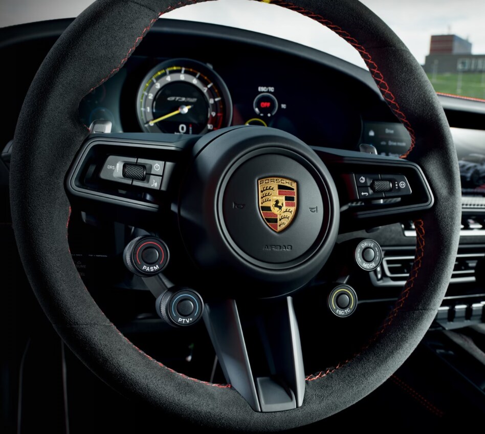 Step inside the cockpit of the 911 GT3 RS and you'll find a purposeful, driver-centric interior designed for those who demand the best. High-quality materials, including leather and Alcantara, adorn the seats, dashboard, and steering wheel, creating a premium ambiance. The sport seats provide excellent support and comfort, keeping you firmly in place during spirited driving.