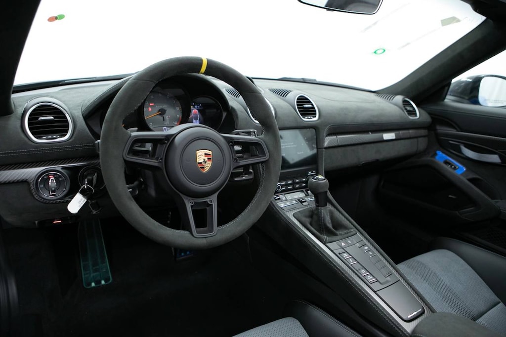 SHARK BLUE 2025 Porsche 718 Spyder RWD 7-Speed Porsche Doppelkupplung (PDK) 4.0L H6 DOHC 24V LEV3-ULEV70 493hp 4-Wheel Disc Brakes, 6 Speakers, ABS brakes, Adaptive suspension, Air Conditioning, Alloy wheels, AM/FM radio: SiriusXM, Automatic temperature control, BOSE Surround Sound System, Brake assist, Brake Calipers in High Gloss Black, Bumpers: body-color, Chrono Package, Convertible roof lining, Convertible roof wind blocker, Delay-off headlights, Deletion of SiriusXM Antenna, Driver door bin, Driver vanity mirror, Dual front impact airbags, Dual front side impact airbags, Electronic Stability Control, Exterior Parking Camera Rear, Four wheel independent suspension, Front anti-roll bar, Front Axle Lift System, Front Bucket Seats, Front Center Armrest, Front dual zone A/C, Front reading lights, Full Bucket Seats, Fully automatic headlights, Garage door transmitter: HomeLink, Glass rear window, Heated door mirrors, High intensity discharge headlights: Bi-Xenon, Illuminated Door-Sill Guards in Carbon Fiber, Illuminated entry, Integrated roll-over protection, Knee airbag, Light Design Package, Low tire pressure warning, Luggage Net in Passenger Footwell, Navigation System, Occupant sensing airbag, Outside temperature display, Overhead airbag, Passenger door bin, Passenger vanity mirror, Porsche Ceramic Composite Brakes, Porsche Communication Management, Power door mirrors, Power driver seat, Power passenger seat, Power steering, Power windows, Radio data system, Rear anti-roll bar, Rear window defroster, Remote keyless entry, Security system, Smoking Package, Sound Package Plus w/6 Loudspeakers, Speed control, Spoiler, Sport steering wheel, Spyder RS Top w/Accents in Deviated Color, Tachometer, Telescoping steering wheel, Tilt steering wheel, Traction control, Trip computer, Two-Tone Leather/Race-Tex Seat Trim, Variably intermittent wipers, Weissach Package, Wheels Painted in Satin Black, Wheels: 20 718 Cayman GT4 RS Forged Aluminum, Wheels: 20 718 Cayman GT4 RS Forged Magnesium.