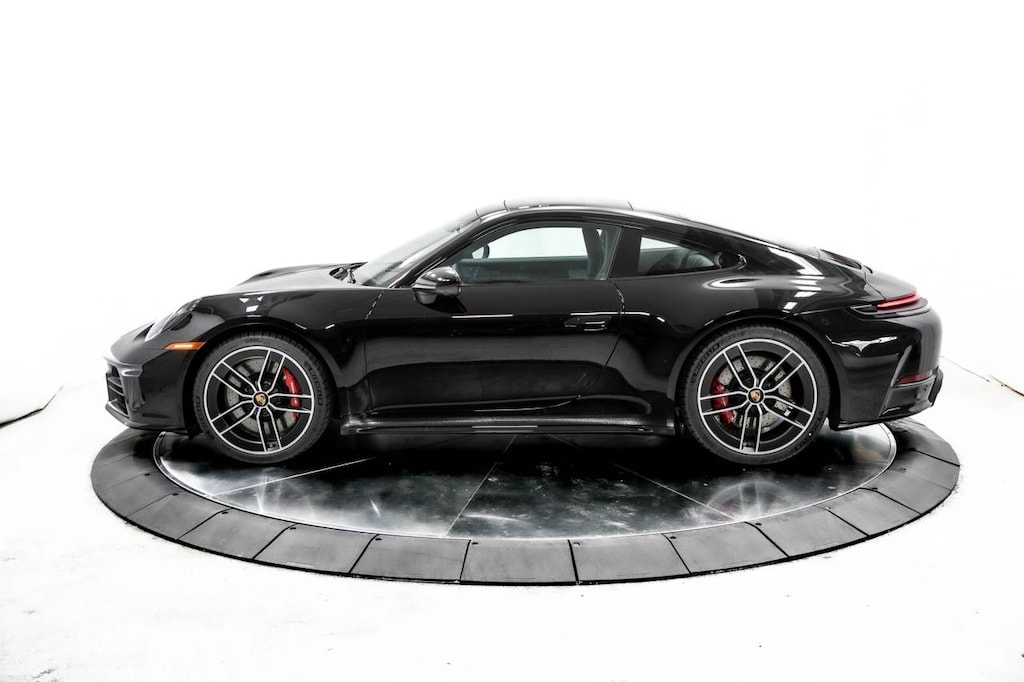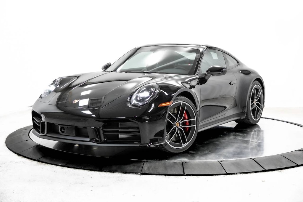 Black 2025 Porsche 911 Carrera S RWD 8-Speed Porsche Doppelkupplung (PDK) 3.0L H6 Turbocharged DOHC 24V LEV3-ULEV70 473hp 14-Way Power Sport Seats w/Memory Package, 4-Way Sport Seats, 4-Wheel Disc Brakes, 8 Speakers, 911 Logo on Rear in High Gloss Black, ABS brakes, Adaptive Cruise Control, Adaptive suspension, Air Conditioning, Alloy wheels, Auto-dimming door mirrors, Auto-dimming Rear-View mirror, Automatic temperature control, BOSE Surround Sound System, Brake assist, Bumpers: body-color, Delay-off headlights, Driver door bin, Driver vanity mirror, Dual front impact airbags, Dual front side impact airbags, Electric Slide/Tilt Glass Sunroof, Electronic Stability Control, Emergency communication system, Exclusive Design Fuel Cap, Extended Range 22.1 Gallon Fuel Tank, Exterior Parking Camera Rear, Four wheel independent suspension, Front anti-roll bar, Front Bucket Seats, Front Center Armrest, Front dual zone A/C, Front reading lights, Front Ventilated Seats, Fully automatic headlights, Garage door transmitter: HomeLink, Heated door mirrors, Heated front seats, Heated GT Sport Steering Wheel in Leather (2PJ), Heated steering wheel, Illuminated entry, Interior Trim Inlays in Exterior Color, Ionizer, Lane Change Assist (LCA), Leather Seat Trim w/Leather Package, Leather steering wheel, Low tire pressure warning, Navigation system: Porsche Communication Management (PCM), Occupant sensing airbag, Outside temperature display, Overhead airbag, Overhead console, Passenger door bin, Passenger vanity mirror, Porsche Communication Management, Porsche Crest on Front Headrests, PORSCHE Logo on Rear in High Gloss Black, Power door mirrors, Power driver seat, Power passenger seat, Power steering, Power windows, Premium Package, Radio data system, Rain sensing wipers, Rear anti-roll bar, Rear fog lights, Rear Seats, Rear window defroster, Remote keyless entry, Security system, Sound Package Plus, Speed control, Spoiler, Sport Chrono Package, Sport Exhaust System w/Tailpipes in Black, Sport steering wheel, SportDesign Package in High Gloss Black, Steering wheel mounted audio controls, Storage Net in Passenger Footwell, Surround View w/Active Parking Support, Tachometer, Telescoping steering wheel, Tilt steering wheel, Traction control, Trip computer, Under Door Puddle Light Projectors, Variably intermittent wipers, Wheels Painted in Satin Black, Wheels: 20 Fr/21 Rr Carrera Exclusive Design, Wheels: 20 Front/21 Rear Carrera S, Window Trim in High Gloss Black.