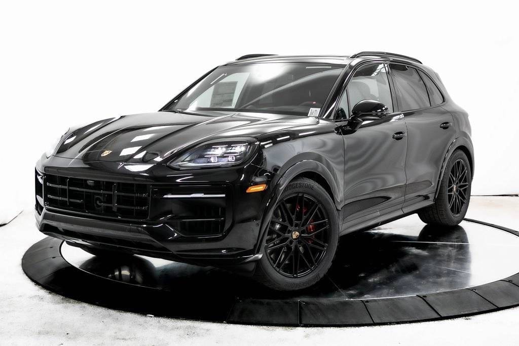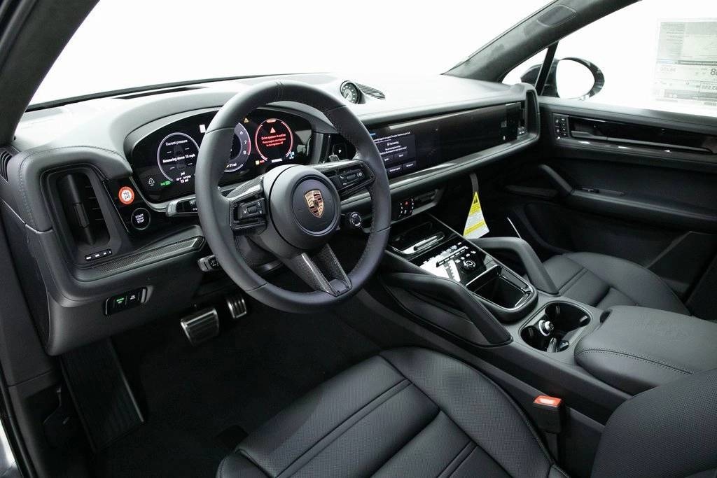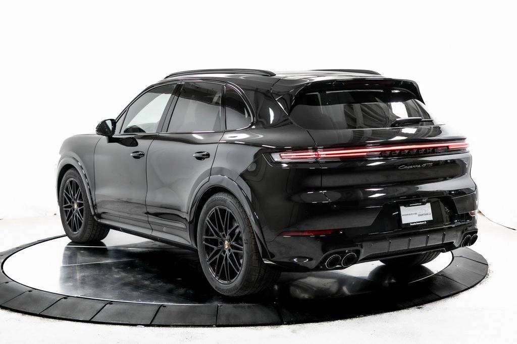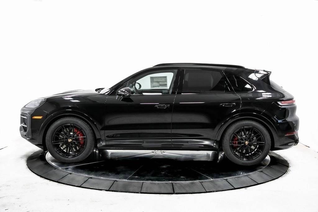 Black 2025 Porsche Cayenne GTS AWD 8-Speed Automatic with Tiptronic V8 Black Leather, 14 Speakers, 14-Way Power Seats w/Comfort Memory, 4-Wheel Disc Brakes, 4-Zone Climate Control, 8-Way Sport Seats, ABS brakes, Adaptive Cruise Control w/Lane Keep Assist (LKA), Adaptive suspension, Air Conditioning, Air Quality System, Alloy wheels, AM/FM radio: SiriusXM w/360L, Apple CarPlay & Android Auto, Audio memory, Auto High-beam Headlights, Auto-dimming door mirrors, Auto-dimming Rear-View mirror, Auto-leveling suspension, Automatic temperature control, Brake assist, Bumpers: body-color, Burmester 3D High-End Surround Sound System, Carbon Fiber Floor Mats w/Leather Edging/Stitching, Center Console Armrest w/Porsche Crest, Compass, Delay-off headlights, Driver door bin, Driver vanity mirror, Dual front impact airbags, Dual front side impact airbags, Electronic Stability Control, Exterior Parking Camera Rear, Four wheel independent suspension, Front anti-roll bar, Front Bucket Seats, Front Center Armrest, Front dual zone A/C, Front Massage Seat Function w/Fr Ventilated Seats, Front reading lights, Front Ventilated Seats, Fully automatic headlights, Garage door transmitter: HomeLink, Head-Up Display, Heated door mirrors, Heated front seats, Heated steering wheel, Htd GT Sport Steering Whl in Lthr w/Carbon Fiber, HVAC memory, Illuminated entry, Interior Trim in Carbon Fiber, Knee airbag, Leather/Race-Tex Seat Trim, Low tire pressure warning, Memory seat, Navigation System, Occupant sensing airbag, Outside temperature display, Overhead airbag, Overhead console, Panic alarm, Panoramic Roof System, Passenger Display, Passenger door bin, Passenger vanity mirror, Porsche Communication Management, Porsche Crest on Front & Rear Headrests, Porsche Dynamic Chassis Control, Power door mirrors, Power driver seat, Power Liftgate, Power passenger seat, Power steering, Power Sunblind for Rear Side Windows, Power windows, Premium Package Plus, Preparation for Porsche Front & Rear Dashcam, Radio data system, Rain sensing wipers, Rear anti-roll bar, Rear Axle Steering, Rear fog lights, Rear Heated Seats, Rear reading lights, Rear seat center armrest, Rear side impact airbag, Rear window defroster, Rear window wiper, Remote keyless entry, Roof Rails in Black Aluminum Finish, Seat Belts in Bordeaux Red, Security system, Speed control, Speed-sensing steering, Split folding rear seat, Spoiler, Sport Chrono Package, Sport steering wheel, SportDesign Package, Steering Column Casing in Leather, Steering wheel mounted audio controls, Tachometer, Telescoping steering wheel, Tilt steering wheel, Traction control, Trip computer, Turn signal indicator mirrors, Under Door Puddle Light Projectors, Variably intermittent wipers, Voltmeter, Wheels: 21 RS Spyder Design in Anthracite Grey, Wheels: 21 RS Spyder Design in Satin Black, Black Leather.