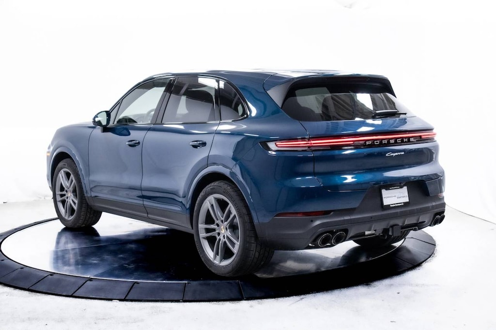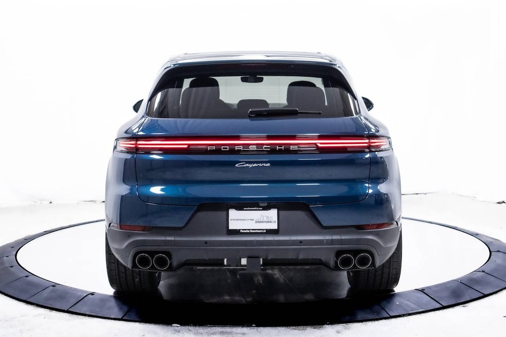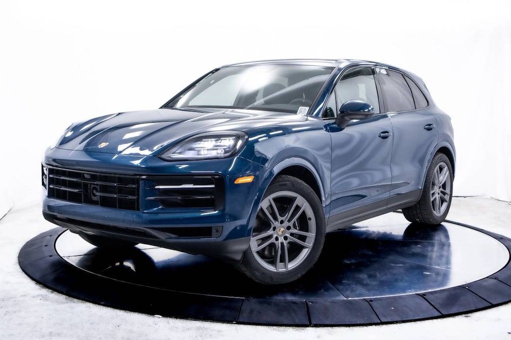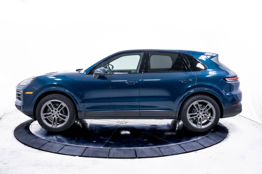 Montego B Met 2025 Porsche Cayenne AWD 8-Speed Automatic with Tiptronic 3.0L V6 Black Leather, 10 Speakers, 14-Way Power Seats w/Comfort Memory, 4-Wheel Disc Brakes, 4-Zone Climate Control, 8-Way Power Seats, ABS brakes, Adaptive Cruise Control w/Lane Keep Assist (LKA), Adaptive suspension, Air Conditioning, Alloy wheels, AM/FM radio: SiriusXM w/360L, Apple CarPlay & Android Auto, Artificial Leather Seat Trim, Audio memory, Auto-dimming door mirrors, Auto-dimming Rear-View mirror, Automatic temperature control, BOSE Surround Sound System, Brake assist, Brake Calipers in High Gloss Black, Bumpers: body-color, Compass, Delay-off headlights, Driver door bin, Driver vanity mirror, Dual front impact airbags, Dual front side impact airbags, Electronic Stability Control, Exclusive Design Fuel Cap, Exterior Parking Camera Rear, Four wheel independent suspension, Front anti-roll bar, Front Bucket Seats, Front Center Armrest, Front dual zone A/C, Front reading lights, Front Ventilated Seats, Fully automatic headlights, Garage door transmitter: HomeLink, HD-Matrix Design LED Headlights, Heated door mirrors, Heated front seats, Heated GT Sport Steering Wheel in Leather, Heated steering wheel, HVAC memory, Illuminated entry, Knee airbag, Leather steering wheel, Low tire pressure warning, Memory seat, Navigation System, Occupant sensing airbag, Outside temperature display, Overhead airbag, Overhead console, Panic alarm, Panoramic Roof System, Passenger door bin, Passenger vanity mirror, Porsche Communication Management, Porsche Crest on Front Headrests, Power door mirrors, Power driver seat, Power Liftgate, Power passenger seat, Power steering, Power windows, Premium Package Plus, Radio data system, Rain sensing wipers, Rear anti-roll bar, Rear fog lights, Rear Heated Seats, Rear reading lights, Rear seat center armrest, Rear side impact airbag, Rear window defroster, Rear window wiper, Remote keyless entry, Security system, Smoking Package, Speed control, Speed-sensing steering, Split folding rear seat, Spoiler, Sport Tailpipes in Dark Bronze, Steering wheel mounted audio controls, Tachometer, Telescoping steering wheel, Tilt steering wheel, Traction control, Trailer Hitch w/o Tow Ball, Trip computer, Turn signal indicator mirrors, Variably intermittent wipers, Voltmeter, Wheels: 20 Cayenne Design, Wheels: 21 Cayenne Turbo Design in Vesuvius Grey, Window Trim in High Gloss Black, Black Leather.