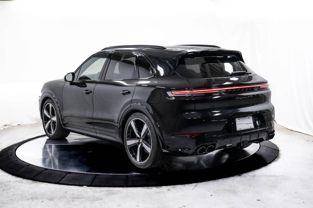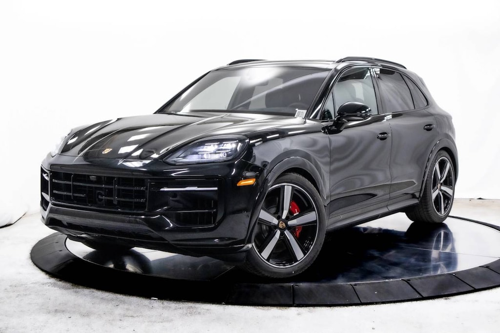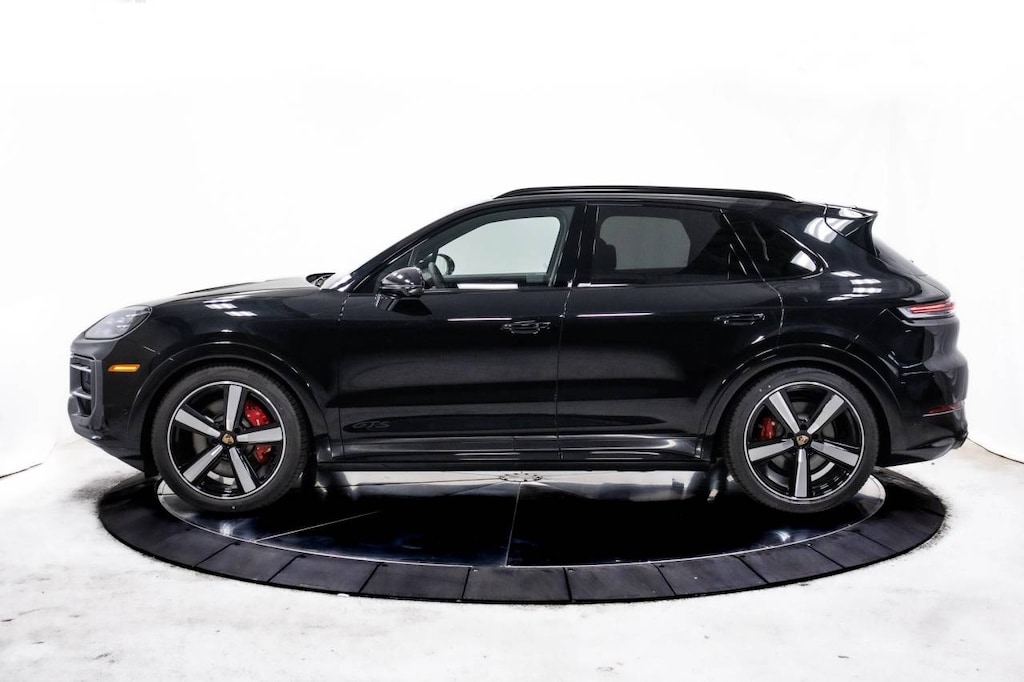 Black 2025 Porsche Cayenne GTS AWD 8-Speed Automatic with Tiptronic V8 Black Leather, 14 Speakers, 14-Way Power Seats w/Comfort Memory, 4-Wheel Disc Brakes, 4-Zone Climate Control, 8-Way Sport Seats, ABS brakes, Adaptive Cruise Control w/Lane Keep Assist (LKA), Adaptive suspension, Air Conditioning, Air Quality System, Alloy wheels, AM/FM radio: SiriusXM w/360L, Apple CarPlay & Android Auto, Audio memory, Auto High-beam Headlights, Auto-dimming door mirrors, Auto-dimming Rear-View mirror, Auto-leveling suspension, Automatic temperature control, Brake assist, Bumpers: body-color, Burmester 3D High-End Surround Sound System, Compass, Delay-off headlights, Driver door bin, Driver vanity mirror, Dual front impact airbags, Dual front side impact airbags, Electronic Stability Control, Exterior Mirror Lower Trim & Base in Ext Color, Exterior Parking Camera Rear, Four wheel independent suspension, Front & Rear Ventilated Seats, Front anti-roll bar, Front Bucket Seats, Front Center Armrest, Front dual zone A/C, Front reading lights, Front Ventilated Seats, Fully automatic headlights, Garage door transmitter: HomeLink, Head-Up Display, Heated door mirrors, Heated front seats, Heated GT Sport Steering Wheel in Leather, Heated steering wheel, Heated Windshield, HVAC memory, Illuminated entry, Knee airbag, Leather/Race-Tex Seat Trim, Low tire pressure warning, Memory seat, Navigation System, Night Vision Assist, Occupant sensing airbag, Outside temperature display, Overhead airbag, Overhead console, Panic alarm, Panoramic Roof System, Passenger Display, Passenger door bin, Passenger vanity mirror, Porsche Communication Management, Porsche Crest on Front & Rear Headrests, Porsche Dynamic Chassis Control, Power door mirrors, Power driver seat, Power Liftgate, Power passenger seat, Power steering, Power Sunblind for Rear Side Windows, Power windows, Premium Package Plus, Radio data system, Rain sensing wipers, Rear anti-roll bar, Rear Axle Steering, Rear fog lights, Rear Heated Seats, Rear reading lights, Rear seat center armrest, Rear side impact airbag, Rear window defroster, Rear window wiper, Remote keyless entry, Roof Rails in Black Aluminum Finish, Security system, Smoking Package, Speed control, Speed-sensing steering, Split folding rear seat, Spoiler, Sport Chrono Package, Sport steering wheel, SportDesign Package, Steering wheel mounted audio controls, Tachometer, Technology Package, Telescoping steering wheel, Tilt steering wheel, Traction control, Trailer Hitch w/o Tow Ball, Trip computer, Turn signal indicator mirrors, Under Door Puddle Light Projectors, Variably intermittent wipers, Voltmeter, Wheels: 21 RS Spyder Design in Anthracite Grey, Wheels: 22 Exclusive Design Spt in High Gloss Blk, Black Leather.