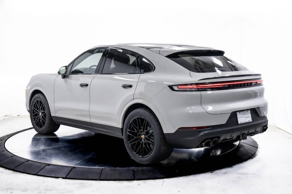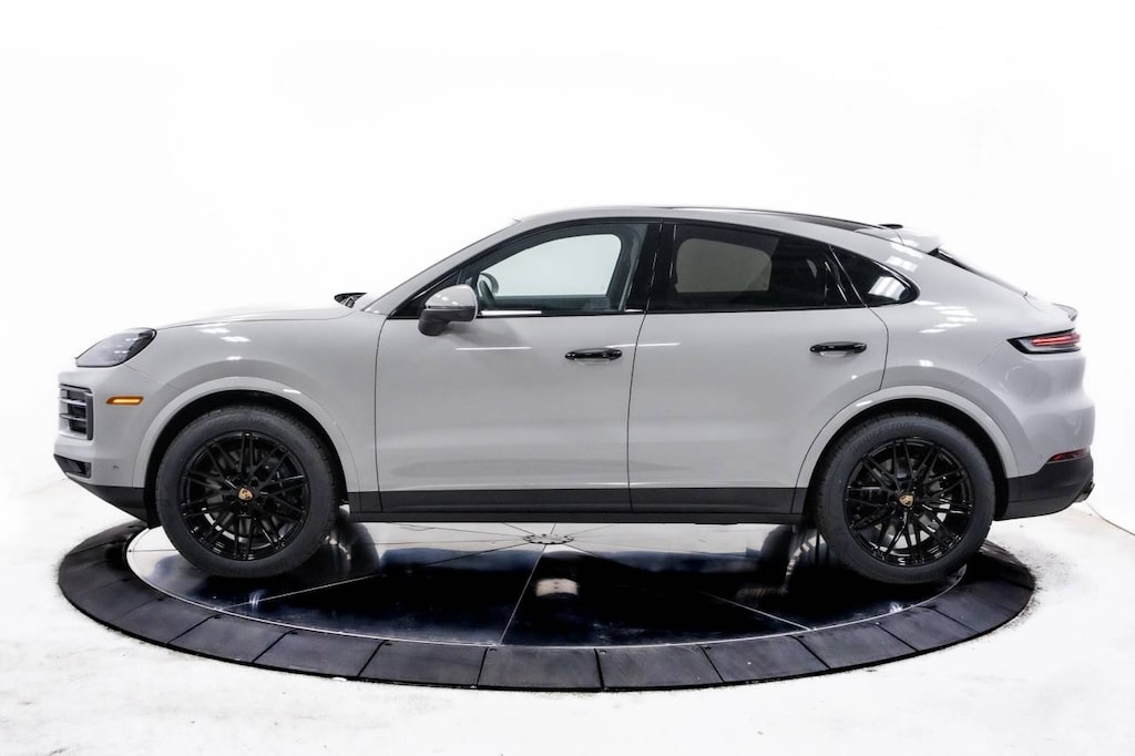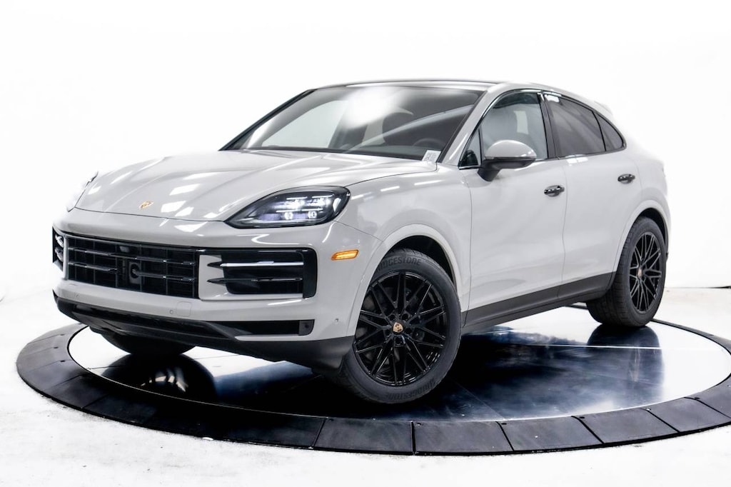 Chalk 2025 Porsche Cayenne Coupe AWD 8-Speed Automatic with Tiptronic 3.0L V6 10 Speakers, 14-Way Power Seats w/Comfort Memory, 4-Wheel Disc Brakes, 4-Zone Climate Control, 8-Way Sport Seats, ABS brakes, Adaptive Cruise Control w/Lane Keep Assist (LKA), Adaptive suspension, Air Conditioning, Alloy wheels, AM/FM radio: SiriusXM w/360L, Apple CarPlay & Android Auto, Audio memory, Auto-dimming door mirrors, Auto-dimming Rear-View mirror, Automatic temperature control, BOSE Surround Sound System, Brake assist, Bumpers: body-color, Compass, Delay-off headlights, Door Handles in High Gloss Black, Driver door bin, Driver vanity mirror, Dual front impact airbags, Dual front side impact airbags, Electronic Stability Control, Exclusive Design Taillights, Exterior Parking Camera Rear, Four wheel independent suspension, Front anti-roll bar, Front Bucket Seats, Front Center Armrest, Front dual zone A/C, Front reading lights, Front Ventilated Seats, Fully automatic headlights, Garage door transmitter: HomeLink, HD-Matrix Design LED Headlights, HD-Matrix Design LED Headlights in Black, Heated door mirrors, Heated front seats, Heated steering wheel, HVAC memory, Illuminated entry, Knee airbag, Leather Seat Trim, Leather steering wheel, Low tire pressure warning, Memory seat, Navigation System, Occupant sensing airbag, Outside temperature display, Overhead airbag, Overhead console, Panic alarm, Passenger door bin, Passenger vanity mirror, Porsche Communication Management, Porsche Logo in High Gloss Blk w/Mdl Desig Delete, Power door mirrors, Power driver seat, Power Liftgate, Power passenger seat, Power steering, Power windows, Premium Package Plus, Radio data system, Rain sensing wipers, Rear anti-roll bar, Rear Comfort Seats (2+1), Rear fog lights, Rear Heated Seats, Rear reading lights, Rear seat center armrest, Rear side impact airbag, Rear window defroster, Remote keyless entry, Security system, Smoking Package, Speed control, Speed-sensing steering, Split folding rear seat, Spoiler, Sport Tailpipes in Dark Bronze, Steering wheel mounted audio controls, Tachometer, Telescoping steering wheel, Tilt steering wheel, Traction control, Trailer Hitch w/o Tow Ball, Trip computer, Turn signal indicator mirrors, Variably intermittent wipers, Voltmeter, Wheels: 20 Cayenne Design, Wheels: 21 RS Spyder Design in High Gloss Black.