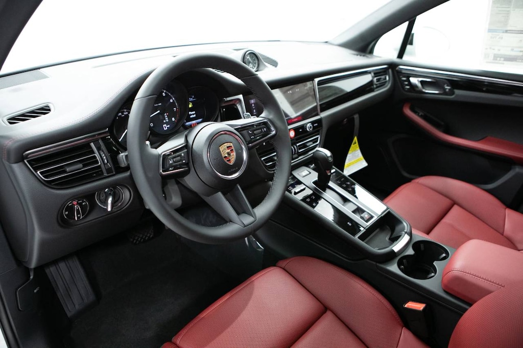 White 2025 Porsche Macan AWD 7-Speed Porsche Doppelkupplung (PDK) 2.0L I4 Turbocharged 14-Way Power Seats w/Memory Package, 4-Wheel Disc Brakes, 8 Speakers, 8-Way Heated Front Comfort Seats, ABS brakes, Air Conditioning, Alloy wheels, AM/FM radio: SiriusXM, Apple CarPlay, Auto-dimming door mirrors, Auto-dimming Rear-View mirror, Automatic temperature control, BOSE Surround Sound System, Brake assist, Bumpers: body-color, Delay-off headlights, Driver door bin, Driver vanity mirror, Dual front impact airbags, Dual front side impact airbags, Electric Steering Column, Electronic Stability Control, Emergency communication system, Exterior Parking Camera Rear, Four wheel independent suspension, Front anti-roll bar, Front Bucket Seats, Front Center Armrest, Front dual zone A/C, Front reading lights, Front Ventilated Seats, Fully automatic headlights, Garage door transmitter: HomeLink, Heated door mirrors, Heated front seats, Illuminated entry, Lane Change Assist (LCA), Leather Shift Knob, Leather steering wheel, LED Headlights w/Porsche Dynamic Light System Plus, Low tire pressure warning, Memory seat, Navigation System, Occupant sensing airbag, Outside temperature display, Overhead airbag, Overhead console, Panic alarm, Panoramic Roof System, Passenger door bin, Passenger vanity mirror, Porsche Communication Management, Power door mirrors, Power driver seat, Power Liftgate, Power passenger seat, Power steering, Power windows, Premium Package Plus, Radio data system, Rain sensing wipers, Rear air conditioning, Rear anti-roll bar, Rear Heated Seats, Rear reading lights, Rear seat center armrest, Rear side impact airbag, Rear window defroster, Rear window wiper, Remote keyless entry, Roof Rails in High Gloss Black, Security system, Self Steering Park Assist, Speed control, Speed-sensing steering, Split folding rear seat, Spoiler, Sport steering wheel, Standard Seat Trim, Steering wheel mounted audio controls, Surround View, Tachometer, Telescoping steering wheel, Tilt steering wheel, Traction control, Trip computer, Turn signal indicator mirrors, Under Door Puddle Light Projectors, Variably intermittent wipers, Wheels: 19 Macan, Wheels: 21 RS Spyder Design.