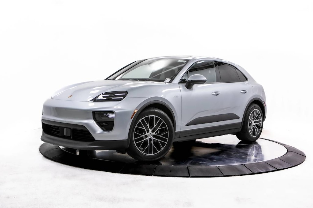 Silver Metallic 2025 Porsche Macan Electric RWD Single-Speed Automatic Electric ZEV 335hp 1 Year of 30 Minute DC Charging Sessions, 10 Speakers, 4-Wheel Disc Brakes, 8-Way Comfort Seats, ABS brakes, Adaptive suspension, Air Conditioning, Alloy wheels, Auto High-beam Headlights, Auto-dimming door mirrors, Auto-dimming Rear-View mirror, Auto-leveling suspension, Automatic temperature control, Bodyside moldings, Brake assist, Bumpers: body-color, Compass, Delay-off headlights, Driver door bin, Driver vanity mirror, Dual front impact airbags, Dual front side impact airbags, Electronic Stability Control, Emergency communication system: Emergency Call Systems - eCall and bCall, Exterior Parking Camera Rear, Four wheel independent suspension, Front anti-roll bar, Front Bucket Seats, Front Center Armrest, Front dual zone A/C, Front reading lights, Fully automatic headlights, Garage door transmitter: HomeLink, Heated door mirrors, Heated front seats, Heated steering wheel, Illuminated entry, Leather steering wheel, Low tire pressure warning, Navigation system: Porsche Communication Management (PCM), Occupant sensing airbag, Outside temperature display, Overhead airbag, Overhead console, Panic alarm, Passenger door bin, Passenger vanity mirror, Porsche Communication Management, Power door mirrors, Power driver seat, Power Liftgate, Power moonroof: Panoramic, Power passenger seat, Power steering, Power windows, Radio data system, Rain sensing wipers, Rear anti-roll bar, Rear fog lights, Rear reading lights, Rear seat center armrest, Rear side impact airbag, Rear window defroster, Remote keyless entry, Security system, Speed control, Speed-sensing steering, Split folding rear seat, Spoiler, Standard Interior Seat Trim, Steering wheel mounted audio controls, Telescoping steering wheel, Tilt steering wheel, Traction control, Trip computer, Variably intermittent wipers, Wheels: 20 Macan, Wheels: 20 Macan S.