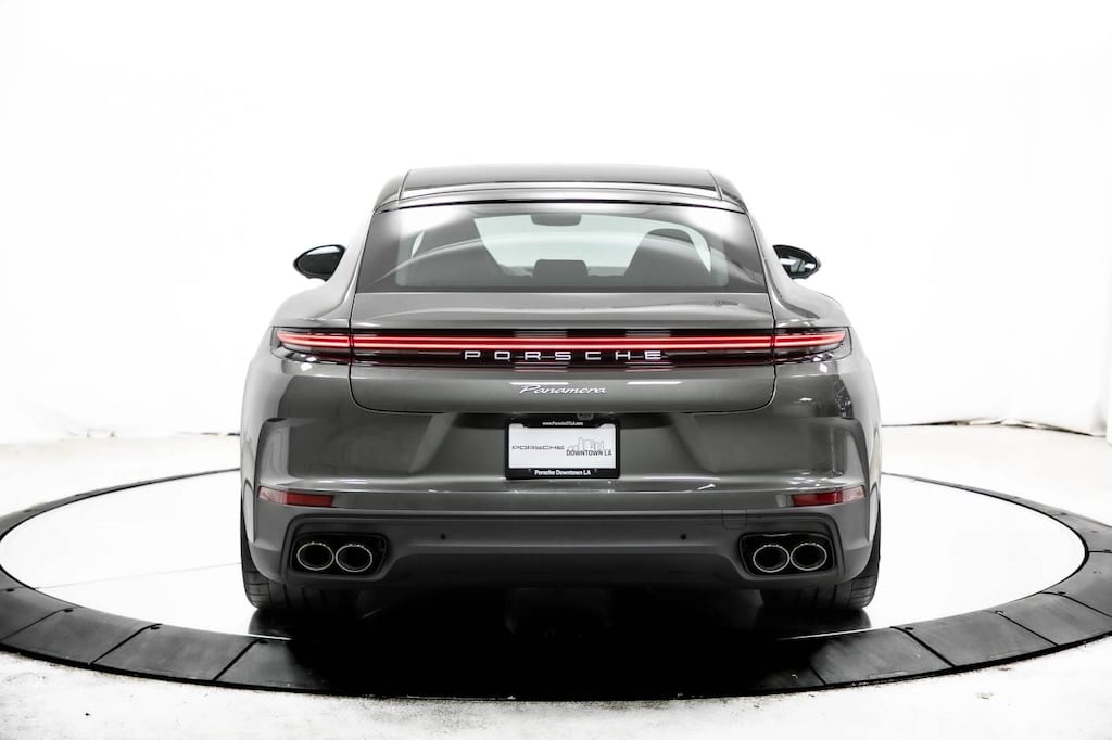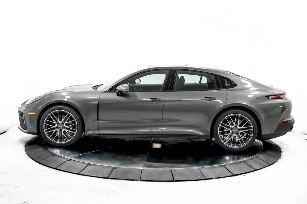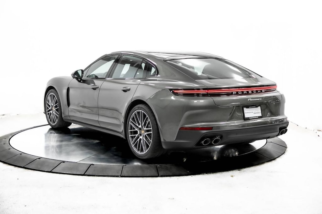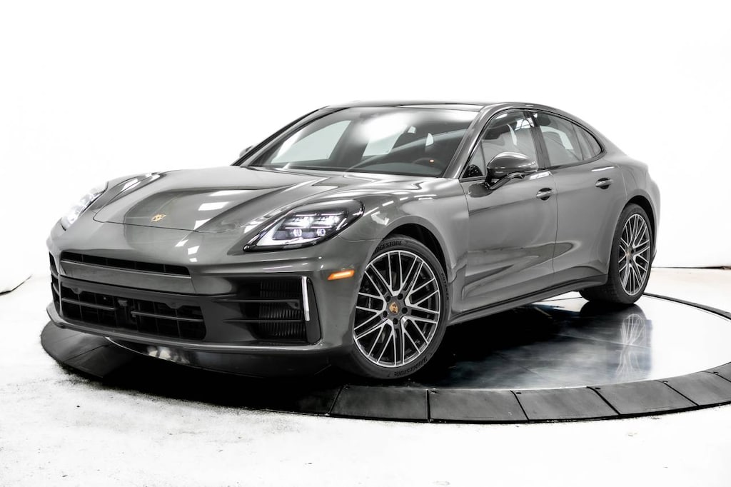 Green 2025 Porsche Panamera RWD 8-Speed Porsche Doppelkupplung (PDK) 2.9L V6 10 Speakers, 14-Way Comfort Seats w/Memory Package, 4-Wheel Disc Brakes, 4-Zone Climate Control, ABS brakes, Adaptive suspension, Air Conditioning, Air Quality System, Alloy wheels, AM/FM radio: SiriusXM w/360L, Apple CarPlay & Android Auto, Artificial Leather Seat Trim, Audio memory, Auto-dimming door mirrors, Auto-dimming Rear-View mirror, Auto-leveling suspension, Automatic temperature control, BOSE Surround Sound System, Brake assist, Bumpers: body-color, Compass, Delay-off headlights, Driver door bin, Driver vanity mirror, Dual front impact airbags, Dual front side impact airbags, Electronic Stability Control, Exterior Parking Camera Rear, Four wheel independent suspension, Front anti-roll bar, Front Bucket Seats, Front Center Armrest, Front dual zone A/C, Front reading lights, Fully automatic headlights, Garage door transmitter: HomeLink, HD-Matrix Design LED Headlights, Heated door mirrors, Heated front seats, Heated GT Sport Steering Wheel in Leather, Heated steering wheel, HVAC memory, Illuminated entry, Leather steering wheel, Low tire pressure warning, Memory seat, Navigation System, Occupant sensing airbag, Outside temperature display, Overhead airbag, Overhead console, Panic alarm, Passenger door bin, Passenger vanity mirror, Porsche Communication Management, Porsche Crest on Front & Rear Headrests, Porsche InnoDrive w/Active Lane Keeping, Power door mirrors, Power driver seat, Power Liftgate, Power moonroof, Power passenger seat, Power steering, Power windows, Premium Package, Radio data system, Radio: Sound Package Plus, Rain sensing wipers, Rear 2+1 Seats, Rear anti-roll bar, Rear fog lights, Rear Heated Seats, Rear reading lights, Rear seat center armrest, Rear side impact airbag, Rear window defroster, Remote keyless entry, Security system, Speed control, Speed-sensing steering, Split folding rear seat, Spoiler, Sport Tailpipes in Dark Bronze, Steering wheel mounted audio controls, Storage Package, Surround View w/Active Parking Support, Tachometer, Telescoping steering wheel, Tilt steering wheel, Traction control, Trip computer, Variably intermittent wipers, Ventilated Front Seats, Wheel Center Caps w/Colored Porsche Crest, Wheels: 19 Panamera, Wheels: 21 911 Turbo Design, Window Trim in High Gloss Black.