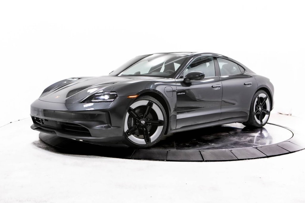Gray Metallic 2025 Porsche Taycan RWD 2-Speed Automatic Electric Motor 10 Speakers, 14-Way Comfort Seats w/Comfort Memory, 4-Wheel Disc Brakes, 8-Way Comfort Seats, ABS brakes, Adaptive Cruise Control, Air Conditioning, Air Quality System, Alloy wheels, Apple CarPlay & Android Auto, Artificial Leather Seat Trim, Auto High-beam Headlights, Auto-dimming door mirrors, Auto-dimming Rear-View mirror, Automatic temperature control, BOSE Surround Sound System, Brake assist, Bumpers: body-color, Compass, Delay-off headlights, Driver door bin, Driver vanity mirror, Dual front impact airbags, Dual front side impact airbags, Electronic Stability Control, Exterior Parking Camera Rear, Fixed Panoramic Roof in Glass, Four wheel independent suspension, Front anti-roll bar, Front Bucket Seats, Front Center Armrest, Front dual zone A/C, Front reading lights, Front Seat Ventilation, Fully automatic headlights, Garage door transmitter: HomeLink, Head-Up Display, Heated door mirrors, Heated front seats, Heated steering wheel, Illuminated entry, Knee airbag, Leather steering wheel, Low tire pressure warning, Memory seat, Navigation system: Porsche Communication Management (PCM), Occupant sensing airbag, Outside temperature display, Overhead airbag, Overhead console, Panic alarm, Passenger Display, Passenger door bin, Passenger vanity mirror, Performance Battery Plus, Porsche Communication Management, Porsche Electric Sport Sound, Porsche InnoDrive w/ACC & ALK, Power door mirrors, Power driver seat, Power passenger seat, Power steering, Power windows, Premium Package, Radio data system, Rain sensing wipers, Rear 2+1 Seats, Rear anti-roll bar, Rear fog lights, Rear Heated Seats, Rear reading lights, Rear seat center armrest, Rear side impact airbag, Rear window defroster, Remote keyless entry, Security system, Soft Close Doors, Speed control, Speed-sensing steering, Split folding rear seat, Spoiler, Sport Chrono Package, Steering wheel mounted audio controls, Storage Package, Surround View w/Active Parking Support, Telescoping steering wheel, Tilt steering wheel, Traction control, Trip computer, Under Door Puddle Light Projectors, Variably intermittent wipers, Wheels: 19 Taycan S Aero, Wheels: 21 Mission E Design.