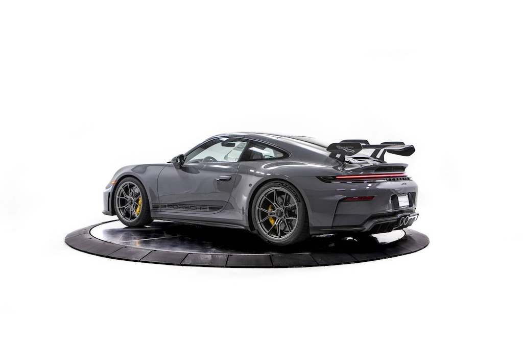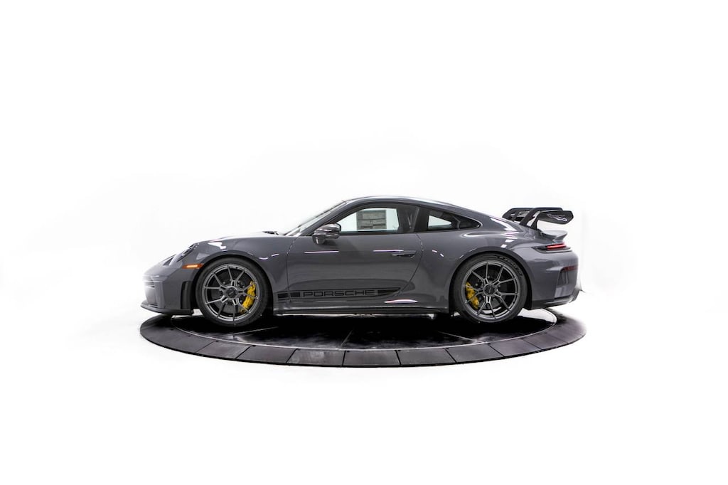 Slate 2026 Porsche 911 GT3 RWD 4.0L H6 DOHC 24V LEV3-LEV160 502hp 18-Way Adaptive Sport Seats Plus, 4-Way Sport Seats Plus, 4-Wheel Disc Brakes, 8 Speakers, ABS brakes, Adaptive suspension, Air Conditioning, Alloy wheels, Aluminum Pedals & Footrest, Ambient Lighting, Automatic temperature control, BORN IN FLACHT Under Door Puddle Light Projectors, BOSE Surround Sound System, Brake assist, Bumpers: body-color, Chrono Package, Delay-off headlights, Deletion of SiriusXM Antenna, Driver door bin, Driver vanity mirror, Dual front impact airbags, Dual front side impact airbags, Electronic Stability Control, Emergency communication system, Exclusive Design Fuel Cap, Exclusive Design Taillights, Extended Range 23.7 Gallon Fuel Tank, Exterior Parking Camera Rear, Four wheel independent suspension, Front anti-roll bar, Front Axle Lift System, Front Bucket Seats, Front Center Armrest, Front dual zone A/C, Front reading lights, Fully automatic headlights, Garage door transmitter: HomeLink, GT Sport Steering Wheel in Leather, HD-Matrix Design LED Headlights in Black (8JU), Heated door mirrors, Heated front seats, Illuminated Door-Sill Guards in Matte Carbon Fiber, Illuminated entry, Ionizer, Leather/Race-Tex Seat Trim, Low tire pressure warning, Navigation system: Porsche Communication Management (PCM), Occupant sensing airbag, Outside temperature display, Overhead airbag, Overhead console, ParkAssist Rear, Passenger door bin, Passenger vanity mirror, Porsche Ceramic Composite Brakes (PCCB) (1LQ), Porsche Communication Management, PORSCHE Logo Decal on Side in Black, Power door mirrors, Power driver seat, Power passenger seat, Power steering, Power windows, Preparation for Front & Rear Porsche Dashcam, Radio data system, Rear anti-roll bar, Rear fog lights, Rear window defroster, Remote keyless entry, Seat Belts in Racing Yellow, Security system, Sound Package Plus, Speed control, Speed-sensing steering, Spoiler, Sport steering wheel, Steering wheel mounted audio controls, Storage Net in Passenger Footwell, Tachometer, Telescoping steering wheel, Tilt steering wheel, Traction control, Trip computer, Variably intermittent wipers, Weissach Package, Weissach Package Logo on Rear Wing Endplates, Wheels Painted in Satin Dark Silver, Wheels: 20 Front/21 Rear 911 GT3.