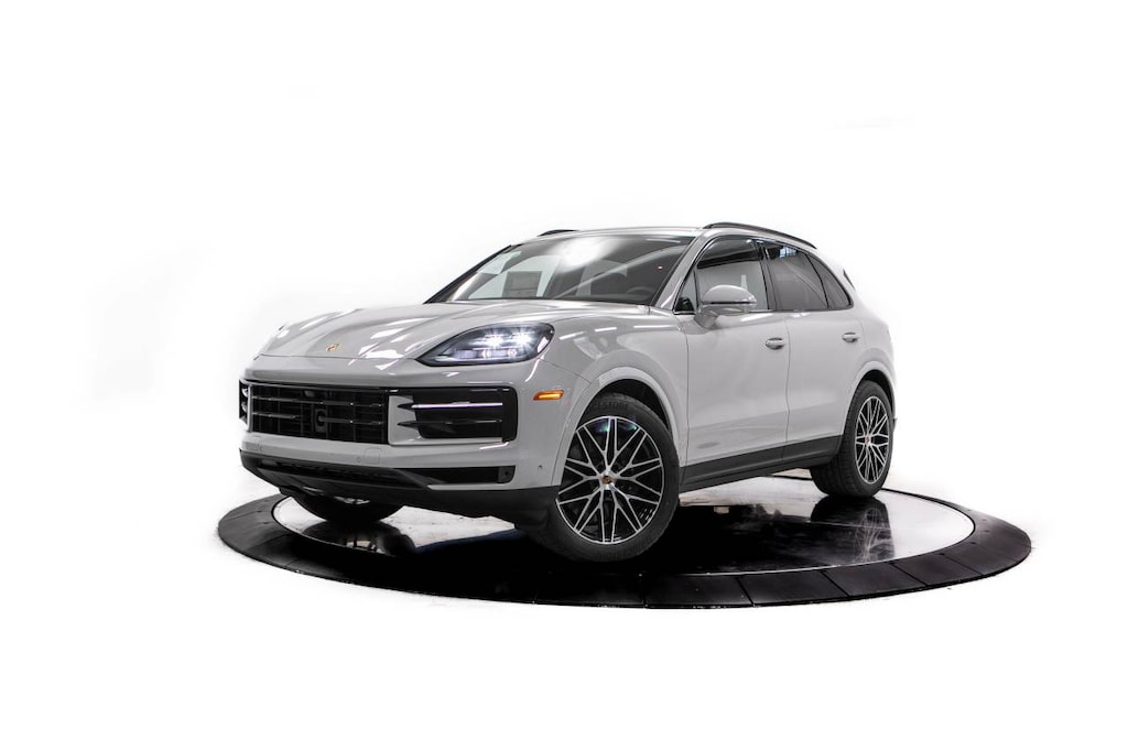 Chalk 2026 Porsche Cayenne AWD 8-Speed Automatic with Tiptronic 3.0L V6 Black Leather, 10 Speakers, 14-Way Power Seats with Comfort Memory, 4-Wheel Disc Brakes, 4-Zone Climate Control, 8-Way Power Seats, ABS brakes, Adaptive Cruise Control with Lane Keep Assist (LKA), Adaptive suspension, Air Conditioning, Air Quality System, Alloy wheels, AM/FM radio: SiriusXM w/360L, Apple CarPlay & Android Auto, Artificial Leather Seat Trim, Audio memory, Auto-dimming door mirrors, Auto-dimming Rear-View mirror, Automatic temperature control, BOSE Surround Sound System, Brake assist, Bumpers: body-color, Compass, Delay-off headlights, Driver door bin, Driver vanity mirror, Dual front impact airbags, Dual front side impact airbags, Electronic Stability Control, Exclusive Design Fuel Cap, Exclusive Design Taillights, Exterior Mirrors in Exterior Color, Exterior Parking Camera Rear, Four wheel independent suspension, Front anti-roll bar, Front Bucket Seats, Front Center Armrest, Front dual zone A/C, Front reading lights, Front Ventilated Seats, Fully automatic headlights, Garage door transmitter: HomeLink, HD-Matrix Design LED Headlights, Heated door mirrors, Heated front seats, Heated GT Sport Steering Wheel in Leather, Heated steering wheel, HVAC memory, Illuminated entry, Knee airbag, Leather steering wheel, Low tire pressure warning, Memory seat, Navigation System, Occupant sensing airbag, Outside temperature display, Overhead airbag, Overhead console, Panic alarm, Panoramic Roof System, Passenger door bin, Passenger vanity mirror, Porsche Communication Management, Porsche Crest on Front Headrests, Porsche Logo in High Gloss Black with Model Designation Delete, Power door mirrors, Power driver seat, Power Liftgate, Power passenger seat, Power steering, Power windows, Premium Package Plus, Preparation For Porsche Front and Rear Dashcam, Radio data system, Rain sensing wipers, Rear anti-roll bar, Rear fog lights, Rear Heated Seats, Rear reading lights, Rear seat center armrest, Rear side impact airbag, Rear window defroster, Rear window wiper, Remote keyless entry, Roof Rails in Black Aluminum Finish, Security system, Speed control, Speed-sensing steering, Split folding rear seat, Spoiler, Sport Tailpipes in Dark Bronze, Steering wheel mounted audio controls, Tachometer, Telescoping steering wheel, Tilt steering wheel, Traction control, Trip computer, Turn signal indicator mirrors, Under Door Puddle Light Projectors, Variably intermittent wipers, Voltmeter, Wheels: 20 Cayenne Design, Wheels: 21 RS Spyder Design, Window Trim in High Gloss Black, Black Leather.