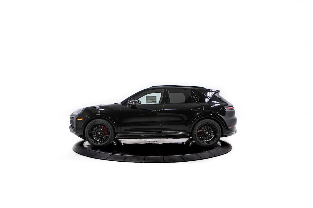Black 2026 Porsche Cayenne GTS AWD 8-Speed Automatic with Tiptronic V8 Black Leather, 14 Speakers, 14-Way Power Seats with Comfort Memory, 4-Wheel Disc Brakes, 4-Zone Climate Control, 8-Way Sport Seats, ABS brakes, Adaptive Cruise Control with Lane Keep Assist (LKA), Adaptive suspension, Air Conditioning, Alloy wheels, AM/FM radio: SiriusXM w/360L, Apple CarPlay & Android Auto, Audio memory, Auto High-beam Headlights, Auto-dimming door mirrors, Auto-dimming Rear-View mirror, Auto-leveling suspension, Automatic temperature control, Brake assist, Bumpers: body-color, Compass, Delay-off headlights, Driver door bin, Driver vanity mirror, Dual front impact airbags, Dual front side impact airbags, Electronic Stability Control, Exclusive Design Fuel Cap, Exterior Parking Camera Rear, Four wheel independent suspension, Front anti-roll bar, Front Bucket Seats, Front Center Armrest, Front dual zone A/C, Front reading lights, Front Ventilated Seats, Fully automatic headlights, Garage door transmitter: HomeLink, Heated door mirrors, Heated front seats, Heated GT Sport Steering Wheel in Leather, Heated steering wheel, HVAC memory, Illuminated entry, Knee airbag, Leather/Race-Tex Seat Trim, Low tire pressure warning, Memory seat, Navigation System, Occupant sensing airbag, Outside temperature display, Overhead airbag, Overhead console, Panic alarm, Panoramic Roof System, Passenger door bin, Passenger vanity mirror, Porsche Communication Management, Porsche Crest on Front and Rear Headrests, Porsche Logo and Model Designation on Rear in Black, Power door mirrors, Power driver seat, Power Liftgate, Power passenger seat, Power steering, Power windows, Premium Package Plus, Preparation For Porsche Front and Rear Dashcam, Radio data system, Rain sensing wipers, Rear anti-roll bar, Rear Axle Steering, Rear fog lights, Rear Heated Seats, Rear reading lights, Rear seat center armrest, Rear side impact airbag, Rear window defroster, Rear window wiper, Remote keyless entry, Roof Rails in Black Aluminum Finish, Security system, Speed control, Speed-sensing steering, Split folding rear seat, Spoiler, Sport Chrono Package, Sport steering wheel, Steering wheel mounted audio controls, Tachometer, Telescoping steering wheel, Tilt steering wheel, Traction control, Trip computer, Turn signal indicator mirrors, Under Door Puddle Light Projectors, Variably intermittent wipers, Voltmeter, Wheels: 21 RS Spyder Design in Anthracite Grey, Wheels: 21 RS Spyder Design in Satin Black, Black Leather.