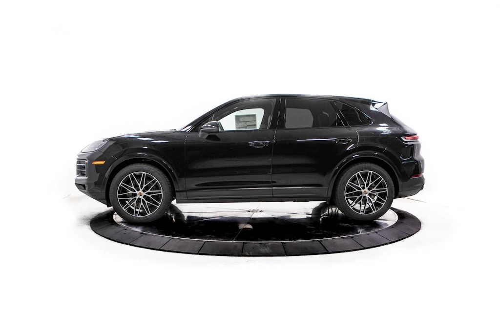 Black 2026 Porsche Cayenne AWD 8-Speed Automatic with Tiptronic 3.0L V6 Black Leather, 10 Speakers, 14-Way Power Seats with Comfort Memory, 4-Wheel Disc Brakes, 8-Way Power Seats, ABS brakes, Adaptive Cruise Control with Lane Keep Assist (LKA), Adaptive suspension, Air Conditioning, Alloy wheels, AM/FM radio: SiriusXM w/360L, Apple CarPlay & Android Auto, Artificial Leather Seat Trim, Audio memory, Auto-dimming door mirrors, Auto-dimming Rear-View mirror, Automatic temperature control, BOSE Surround Sound System, Brake assist, Bumpers: body-color, Compass, Delay-off headlights, Driver door bin, Driver vanity mirror, Dual front impact airbags, Dual front side impact airbags, Electronic Stability Control, Exterior Parking Camera Rear, Four wheel independent suspension, Front anti-roll bar, Front Bucket Seats, Front Center Armrest, Front dual zone A/C, Front reading lights, Front Ventilated Seats, Fully automatic headlights, Garage door transmitter: HomeLink, Heated door mirrors, Heated front seats, Heated GT Sport Steering Wheel in Leather, Heated steering wheel, HVAC memory, Illuminated entry, Knee airbag, Leather steering wheel, Low tire pressure warning, Memory seat, Navigation System, Occupant sensing airbag, Outside temperature display, Overhead airbag, Overhead console, Panic alarm, Panoramic Roof System, Passenger door bin, Passenger vanity mirror, Porsche Communication Management, Power door mirrors, Power driver seat, Power Liftgate, Power passenger seat, Power steering, Power windows, Premium Package, Radio data system, Rain sensing wipers, Rear anti-roll bar, Rear fog lights, Rear Heated Seats, Rear reading lights, Rear seat center armrest, Rear side impact airbag, Rear window defroster, Rear window wiper, Remote keyless entry, Security system, Speed control, Speed-sensing steering, Split folding rear seat, Spoiler, Steering wheel mounted audio controls, Tachometer, Telescoping steering wheel, Tilt steering wheel, Traction control, Trip computer, Turn signal indicator mirrors, Under Door Puddle Light Projectors, Variably intermittent wipers, Voltmeter, Wheels: 20 Cayenne Design, Wheels: 21 RS Spyder Design, Window Trim in High Gloss Black, Black Leather.