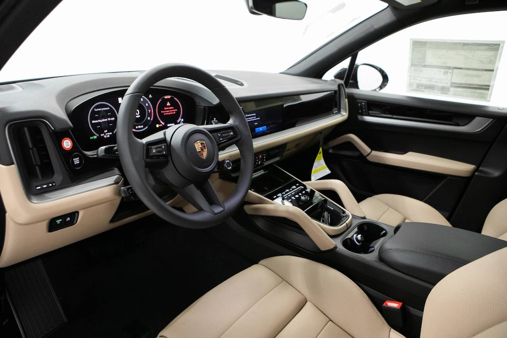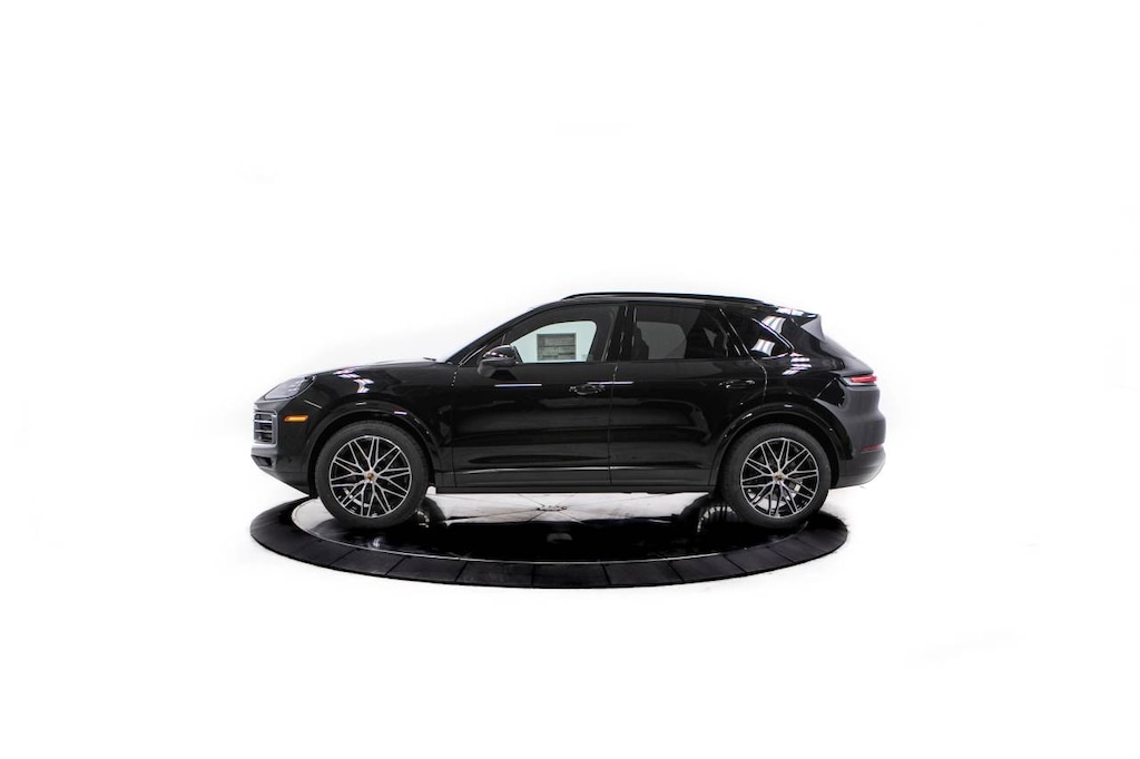 Black 2026 Porsche Cayenne AWD 8-Speed Automatic with Tiptronic 3.0L V6 Black Leather, 10 Speakers, 14-Way Power Seats with Comfort Memory, 4-Wheel Disc Brakes, 4-Zone Climate Control, 8-Way Power Seats, ABS brakes, Adaptive Cruise Control with Lane Keep Assist (LKA), Adaptive suspension, Air Conditioning, Alloy wheels, AM/FM radio: SiriusXM w/360L, Apple CarPlay & Android Auto, Artificial Leather Seat Trim, Audio memory, Auto-dimming door mirrors, Auto-dimming Rear-View mirror, Automatic temperature control, BOSE Surround Sound System, Brake assist, Bumpers: body-color, Compass, Delay-off headlights, Driver door bin, Driver vanity mirror, Dual front impact airbags, Dual front side impact airbags, Electronic Stability Control, Exterior Parking Camera Rear, Four wheel independent suspension, Front anti-roll bar, Front Bucket Seats, Front Center Armrest, Front dual zone A/C, Front reading lights, Front Ventilated Seats, Fully automatic headlights, Garage door transmitter: HomeLink, HD-Matrix Design LED Headlights, Heated door mirrors, Heated front seats, Heated steering wheel, HVAC memory, Illuminated entry, Knee airbag, Leather steering wheel, Low tire pressure warning, Memory seat, Navigation System, Occupant sensing airbag, Outside temperature display, Overhead airbag, Overhead console, Panic alarm, Panoramic Roof System, Passenger door bin, Passenger vanity mirror, Porsche Communication Management, Power door mirrors, Power driver seat, Power Liftgate, Power passenger seat, Power steering, Power windows, Premium Package Plus, Radio data system, Rain sensing wipers, Rear anti-roll bar, Rear fog lights, Rear Heated Seats, Rear reading lights, Rear seat center armrest, Rear side impact airbag, Rear window defroster, Rear window wiper, Remote keyless entry, Roof Rails in Black Aluminum Finish, Security system, Speed control, Speed-sensing steering, Split folding rear seat, Spoiler, Steering wheel mounted audio controls, Tachometer, Telescoping steering wheel, Tilt steering wheel, Traction control, Trip computer, Turn signal indicator mirrors, Under Door Puddle Light Projectors, Variably intermittent wipers, Voltmeter, Wheels: 20 Cayenne Design, Wheels: 21 RS Spyder Design, Window Trim in High Gloss Black, Black Leather.