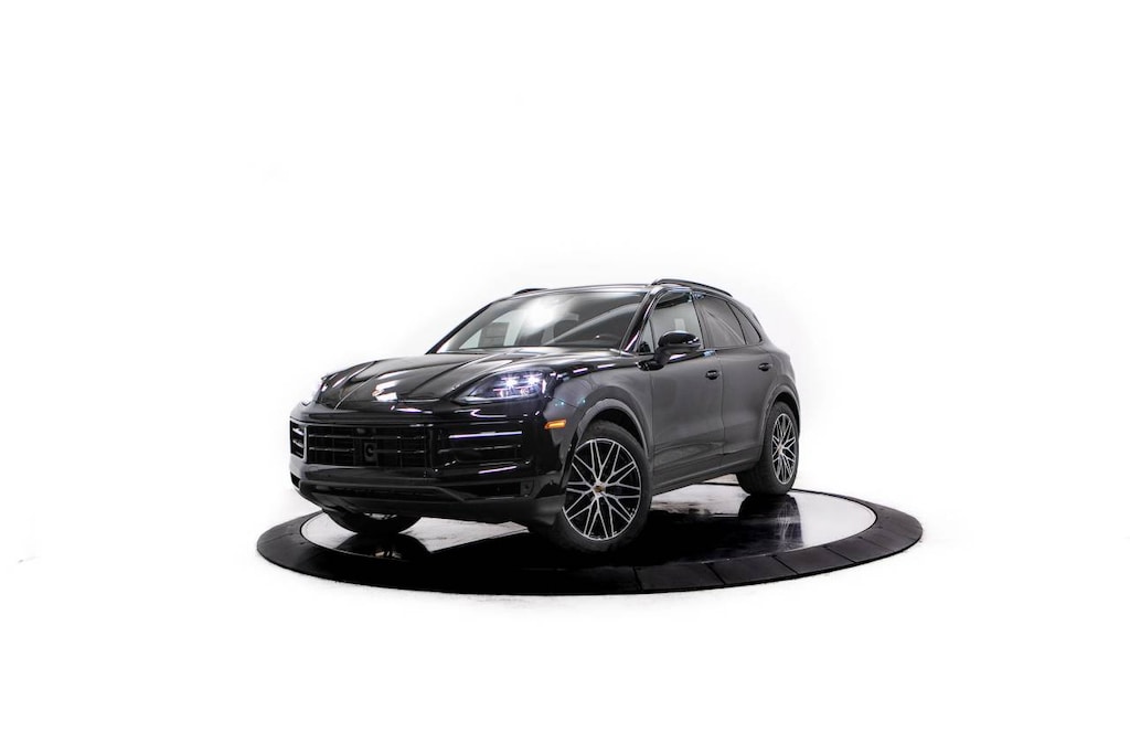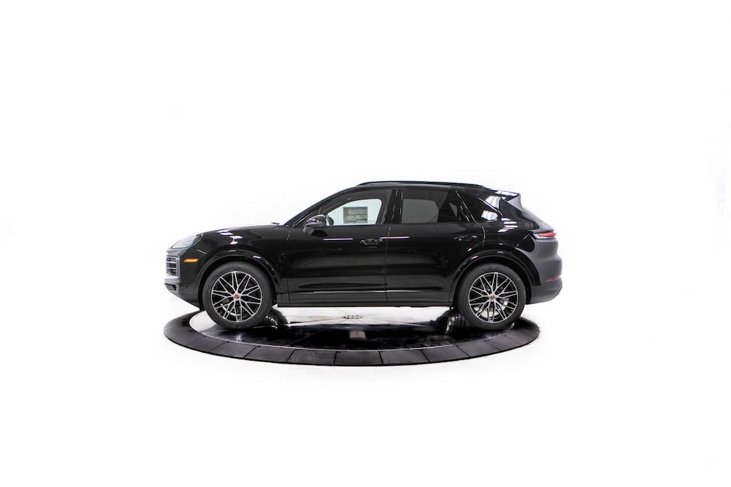 Black 2026 Porsche Cayenne AWD 8-Speed Automatic with Tiptronic 3.0L V6 Black Leather, 10 Speakers, 14-Way Power Seats with Comfort Memory, 4-Wheel Disc Brakes, 4-Zone Climate Control, 8-Way Power Seats, ABS brakes, Adaptive Cruise Control with Lane Keep Assist (LKA), Adaptive suspension, Air Conditioning, Alloy wheels, AM/FM radio: SiriusXM w/360L, Apple CarPlay & Android Auto, Artificial Leather Seat Trim, Audio memory, Auto-dimming door mirrors, Auto-dimming Rear-View mirror, Automatic temperature control, BOSE Surround Sound System, Brake assist, Bumpers: body-color, Compass, Delay-off headlights, Driver door bin, Driver vanity mirror, Dual front impact airbags, Dual front side impact airbags, Electronic Stability Control, Exclusive Design Fuel Cap, Exterior Parking Camera Rear, Four wheel independent suspension, Front anti-roll bar, Front Bucket Seats, Front Center Armrest, Front dual zone A/C, Front reading lights, Front Ventilated Seats, Fully automatic headlights, Garage door transmitter: HomeLink, HD-Matrix Design LED Headlights, Heated door mirrors, Heated front seats, Heated steering wheel, HVAC memory, Illuminated entry, Knee airbag, Leather steering wheel, Low tire pressure warning, Memory seat, Navigation System, Occupant sensing airbag, Outside temperature display, Overhead airbag, Overhead console, Panic alarm, Panoramic Roof System, Passenger door bin, Passenger vanity mirror, Porsche Communication Management, Power door mirrors, Power driver seat, Power Liftgate, Power passenger seat, Power steering, Power windows, Premium Package Plus, Radio data system, Rain sensing wipers, Rear anti-roll bar, Rear fog lights, Rear Heated Seats, Rear reading lights, Rear seat center armrest, Rear side impact airbag, Rear window defroster, Rear window wiper, Remote keyless entry, Roof Rails in Black Aluminum Finish, Security system, Speed control, Speed-sensing steering, Split folding rear seat, Spoiler, Steering wheel mounted audio controls, Tachometer, Telescoping steering wheel, Tilt steering wheel, Traction control, Trip computer, Turn signal indicator mirrors, Under Door Puddle Light Projectors, Variably intermittent wipers, Voltmeter, Wheels: 20 Cayenne Design, Wheels: 21 RS Spyder Design, Window Trim in High Gloss Black, Black Leather.