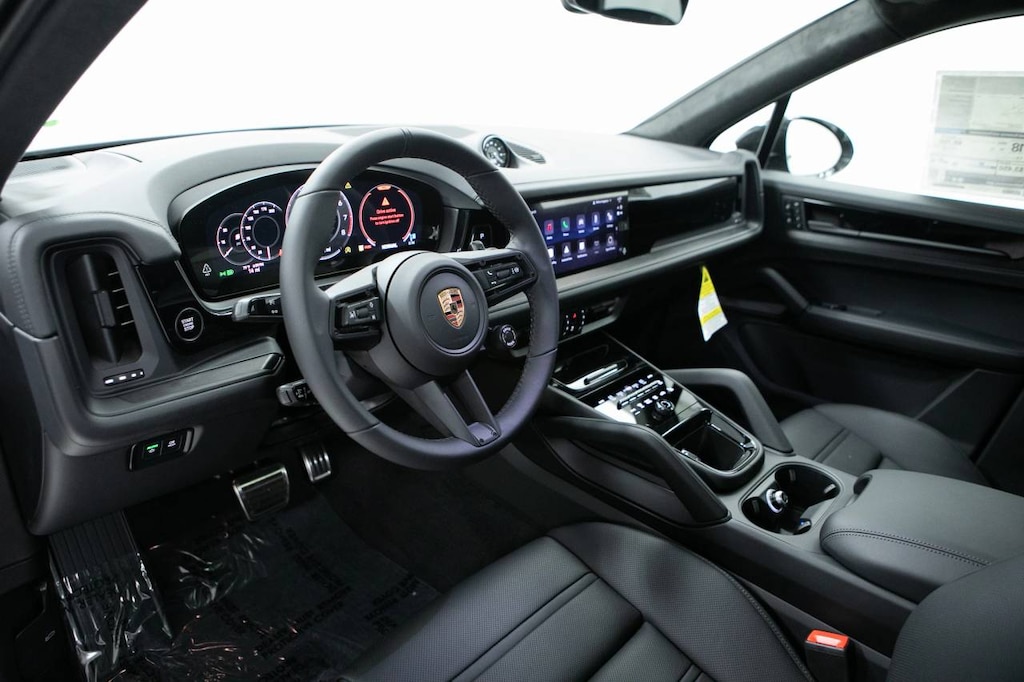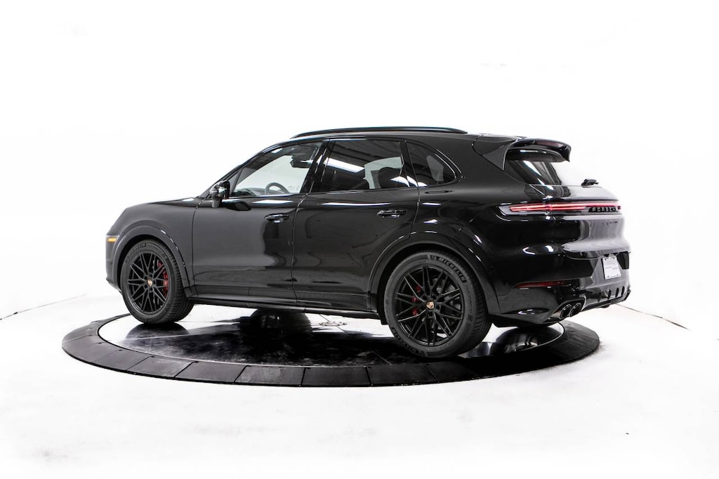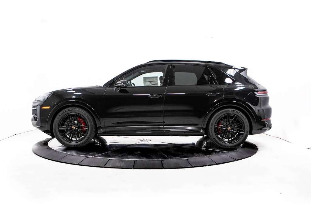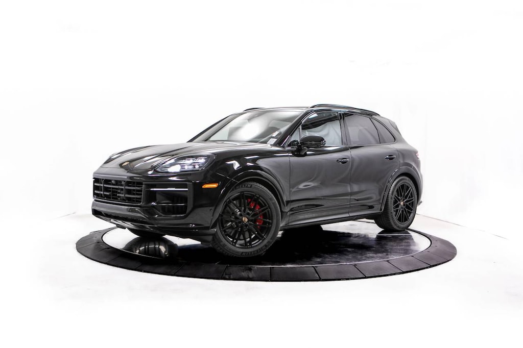 Black 2026 Porsche Cayenne GTS AWD 8-Speed Automatic with Tiptronic V8 Black Leather, 14 Speakers, 14-Way Power Seats w/Comfort Memory, 4-Wheel Disc Brakes, 4-Zone Climate Control, 8-Way Sport Seats, ABS brakes, Adaptive Cruise Control w/Lane Keep Assist (LKA), Adaptive suspension, Air Conditioning, Alloy wheels, AM/FM radio: SiriusXM w/360L, Apple CarPlay & Android Auto, Audio memory, Auto High-beam Headlights, Auto-dimming door mirrors, Auto-dimming Rear-View mirror, Auto-leveling suspension, Automatic temperature control, Brake assist, Bumpers: body-color, Compass, Delay-off headlights, Driver door bin, Driver vanity mirror, Dual front impact airbags, Dual front side impact airbags, Electronic Stability Control, Exterior Parking Camera Rear, Four wheel independent suspension, Front anti-roll bar, Front Bucket Seats, Front Center Armrest, Front dual zone A/C, Front reading lights, Front Ventilated Seats, Fully automatic headlights, Garage door transmitter: HomeLink, Heated door mirrors, Heated front seats, Heated GT Sport Steering Wheel in Leather, Heated steering wheel, HVAC memory, Illuminated entry, Knee airbag, Leather/Race-Tex Seat Trim, Low tire pressure warning, Memory seat, Navigation System, Occupant sensing airbag, Outside temperature display, Overhead airbag, Overhead console, Panic alarm, Panoramic Roof System, Passenger door bin, Passenger vanity mirror, Porsche Communication Management, Porsche Crest on Front & Rear Headrests, Porsche Logo & Model Designation on Rear in Black, Power door mirrors, Power driver seat, Power Liftgate, Power passenger seat, Power steering, Power windows, Premium Package Plus, Preparation for Porsche Front & Rear Dashcam, Radio data system, Rain sensing wipers, Rear anti-roll bar, Rear fog lights, Rear Heated Seats, Rear reading lights, Rear seat center armrest, Rear side impact airbag, Rear window defroster, Rear window wiper, Remote keyless entry, Roof Rails in Black Aluminum Finish, Security system, Speed control, Speed-sensing steering, Split folding rear seat, Spoiler, Sport Chrono Package, Sport steering wheel, Steering wheel mounted audio controls, Tachometer, Telescoping steering wheel, Tilt steering wheel, Traction control, Trip computer, Turn signal indicator mirrors, Under Door Puddle Light Projectors, Variably intermittent wipers, Voltmeter, Wheels: 21 RS Spyder Design in Anthracite Grey, Wheels: 21 RS Spyder Design in Satin Black, Black Leather.