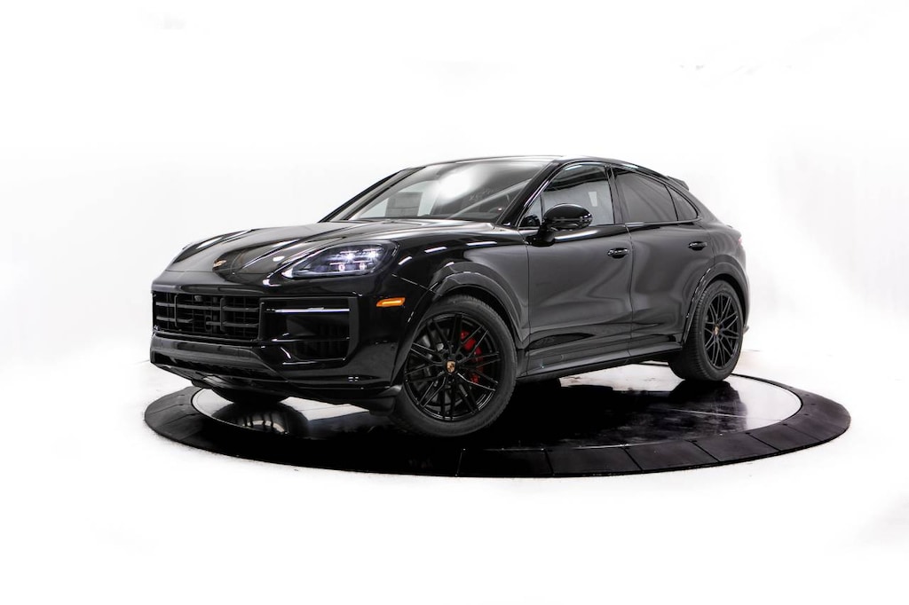 Black 2026 Porsche Cayenne Coupe GTS AWD 8-Speed Automatic with Tiptronic V8 14 Speakers, 14-Way Power Seats with Comfort Memory, 18-Way Adaptive Sport Seats Plus with Comfort Memory, 4-Wheel Disc Brakes, 4-Zone Climate Control, 8-Way Sport Seats, ABS brakes, Adaptive Cruise Control with Lane Keep Assist (LKA), Adaptive suspension, Air Conditioning, Alloy wheels, AM/FM radio: SiriusXM w/360L, Apple CarPlay & Android Auto, Audio memory, Auto High-beam Headlights, Auto-dimming door mirrors, Auto-dimming Rear-View mirror, Auto-leveling suspension, Automatic temperature control, Brake assist, Bumpers: body-color, Compass, Delay-off headlights, Driver door bin, Driver vanity mirror, Dual front impact airbags, Dual front side impact airbags, Electronic Stability Control, Exclusive Design Fuel Cap, Exterior Parking Camera Rear, Four wheel independent suspension, Front anti-roll bar, Front Bucket Seats, Front Center Armrest, Front dual zone A/C, Front reading lights, Front Ventilated Seats, Fully automatic headlights, Garage door transmitter: HomeLink, Heated door mirrors, Heated front seats, Heated GT Sport Steering Wheel in Leather, Heated steering wheel, HVAC memory, Illuminated entry, Knee airbag, Leather/Race-Tex Seat Trim, Low tire pressure warning, Memory seat, Navigation System, Occupant sensing airbag, Outside temperature display, Overhead airbag, Overhead console, Panic alarm, Passenger door bin, Passenger vanity mirror, Porsche Communication Management, Porsche Crest on Front and Rear Headrests, Power door mirrors, Power driver seat, Power Liftgate, Power passenger seat, Power steering, Power Sunblind For Rear Side Windows, Power windows, Premium Package Plus, Radio data system, Rain sensing wipers, Rear anti-roll bar, Rear Axle Steering, Rear Comfort Seats (2+1), Rear fog lights, Rear Heated Seats, Rear reading lights, Rear seat center armrest, Rear side impact airbag, Rear window defroster, Remote keyless entry, Security system, Speed control, Speed-sensing steering, Split folding rear seat, Spoiler, Sport steering wheel, Steering wheel mounted audio controls, Tachometer, Telescoping steering wheel, Tilt steering wheel, Traction control, Trip computer, Turn signal indicator mirrors, Under Door Puddle Light Projectors, Variably intermittent wipers, Voltmeter, Wheels: 21 RS Spyder Design in Anthracite Grey, Wheels: 21 RS Spyder Design in Satin Black.