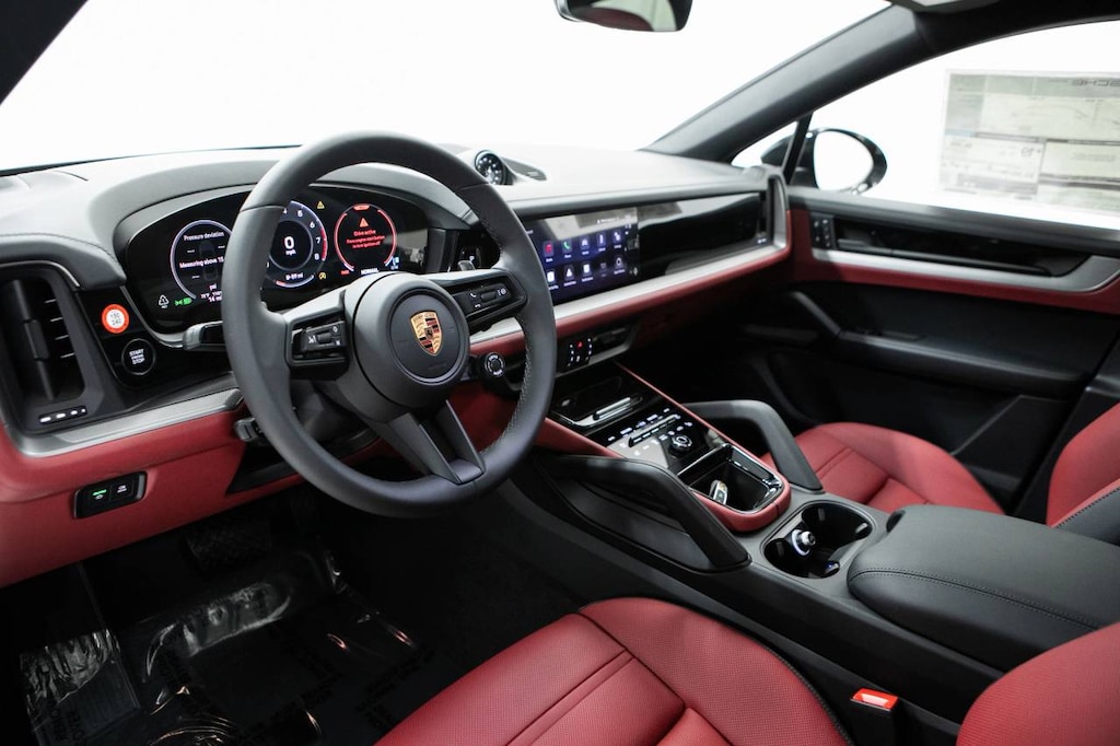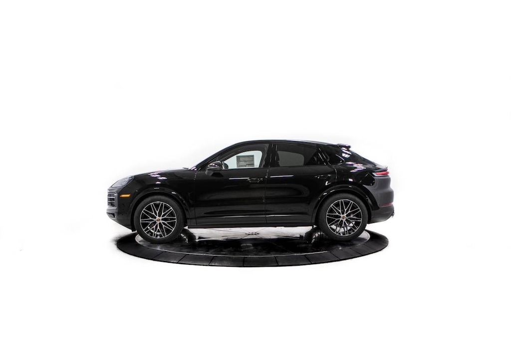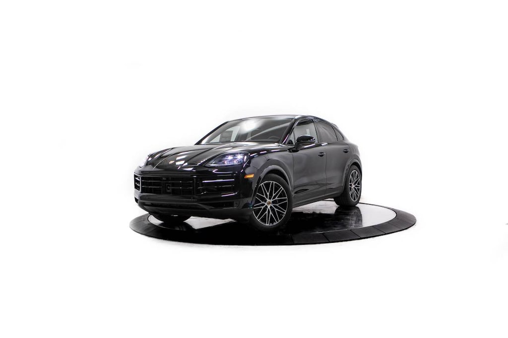 Black 2026 Porsche Cayenne Coupe AWD 8-Speed Automatic with Tiptronic 3.0L V6 10 Speakers, 14-Way Power Seats with Comfort Memory, 4-Wheel Disc Brakes, 4-Zone Climate Control, 8-Way Sport Seats, ABS brakes, Adaptive Air Suspension with Porsche Active Suspension Management (PASM), Adaptive Cruise Control with Lane Keep Assist (LKA), Adaptive suspension, Air Conditioning, Alloy wheels, AM/FM radio: SiriusXM w/360L, Apple CarPlay & Android Auto, Audio memory, Auto-dimming door mirrors, Auto-dimming Rear-View mirror, Automatic temperature control, BOSE Surround Sound System, Brake assist, Bumpers: body-color, Compass, Delay-off headlights, Driver door bin, Driver vanity mirror, Dual front impact airbags, Dual front side impact airbags, Electronic Stability Control, Exclusive Design Fuel Cap, Exterior Parking Camera Rear, Four wheel independent suspension, Front anti-roll bar, Front Bucket Seats, Front Center Armrest, Front dual zone A/C, Front reading lights, Front Ventilated Seats, Fully automatic headlights, Garage door transmitter: HomeLink, HD-Matrix Design LED Headlights, Heated door mirrors, Heated front seats, Heated steering wheel, HVAC memory, Illuminated entry, Knee airbag, Leather Seat Trim, Leather steering wheel, Low tire pressure warning, Memory seat, Navigation System, Occupant sensing airbag, Outside temperature display, Overhead airbag, Overhead console, Panic alarm, Passenger door bin, Passenger vanity mirror, Porsche Communication Management, Power door mirrors, Power driver seat, Power Liftgate, Power passenger seat, Power steering, Power windows, Premium Package Plus, Radio data system, Rain sensing wipers, Rear anti-roll bar, Rear Comfort Seats (2+1), Rear fog lights, Rear Heated Seats, Rear reading lights, Rear seat center armrest, Rear side impact airbag, Rear window defroster, Remote keyless entry, Security system, Speed control, Speed-sensing steering, Split folding rear seat, Spoiler, Sport Tailpipes in Silver, Steering wheel mounted audio controls, Tachometer, Telescoping steering wheel, Tilt steering wheel, Traction control, Trip computer, Turn signal indicator mirrors, Under Door Puddle Light Projectors, Variably intermittent wipers, Voltmeter, Wheels: 20 Cayenne Design, Wheels: 21 RS Spyder Design.