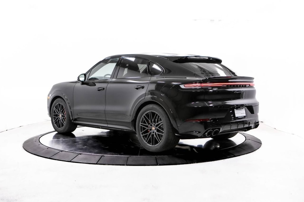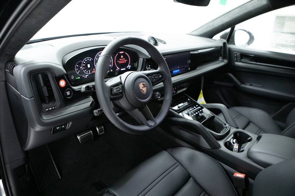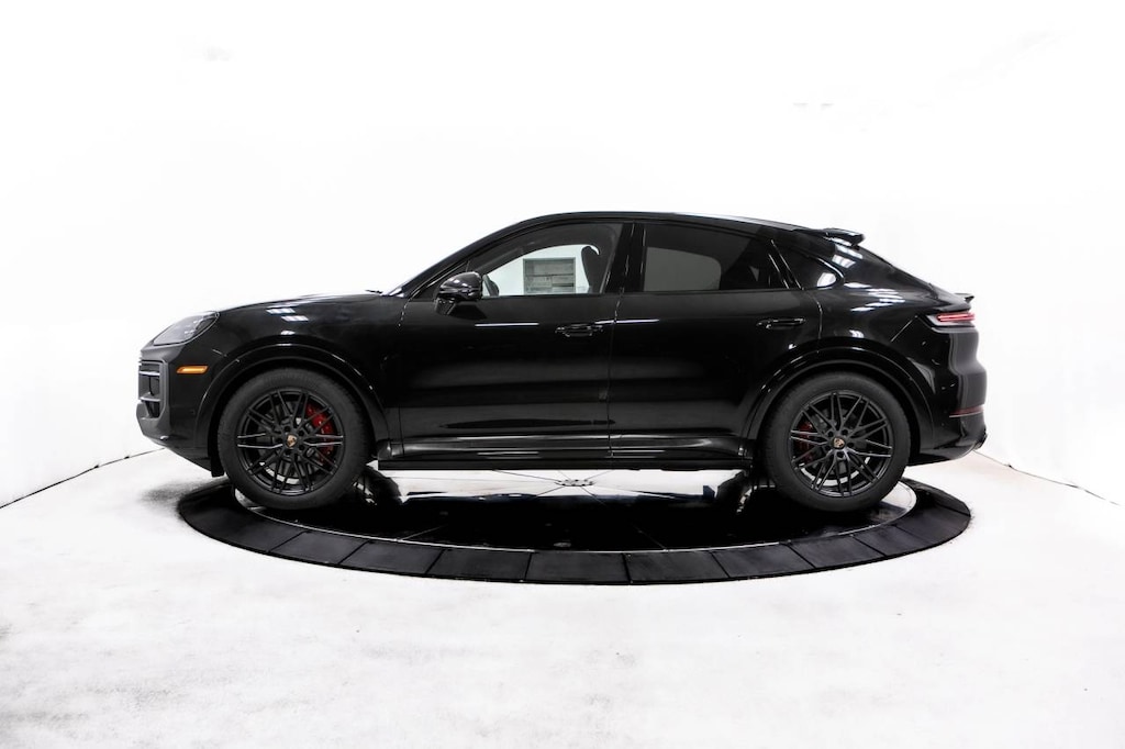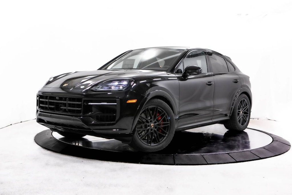 Black 2026 Porsche Cayenne Coupe GTS AWD 8-Speed Automatic with Tiptronic V8 14 Speakers, 14-Way Power Seats w/Comfort Memory, 18-Way Adaptive Sport Seats Plus w/Comfort Memory, 4-Wheel Disc Brakes, 4-Zone Climate Control, 8-Way Sport Seats, ABS brakes, Adaptive Cruise Control w/Lane Keep Assist (LKA), Adaptive suspension, Air Conditioning, Alloy wheels, AM/FM radio: SiriusXM w/360L, Apple CarPlay & Android Auto, Audio memory, Auto High-beam Headlights, Auto-dimming door mirrors, Auto-dimming Rear-View mirror, Auto-leveling suspension, Automatic temperature control, Brake assist, Bumpers: body-color, Compass, Delay-off headlights, Driver door bin, Driver vanity mirror, Dual front impact airbags, Dual front side impact airbags, Electronic Stability Control, Exterior Parking Camera Rear, Four wheel independent suspension, Front anti-roll bar, Front Bucket Seats, Front Center Armrest, Front dual zone A/C, Front reading lights, Front Ventilated Seats, Fully automatic headlights, Garage door transmitter: HomeLink, Heated door mirrors, Heated front seats, Heated GT Sport Steering Wheel in Leather, Heated steering wheel, HVAC memory, Illuminated entry, Knee airbag, Leather/Race-Tex Seat Trim, Low tire pressure warning, Memory seat, Navigation System, Occupant sensing airbag, Outside temperature display, Overhead airbag, Overhead console, Panic alarm, Passenger door bin, Passenger vanity mirror, Porsche Communication Management, Porsche Crest on Front & Rear Headrests, Power door mirrors, Power driver seat, Power Liftgate, Power passenger seat, Power steering, Power windows, Premium Package Plus, Radio data system, Rain sensing wipers, Rear anti-roll bar, Rear Comfort Seats (2+1), Rear fog lights, Rear Heated Seats, Rear reading lights, Rear seat center armrest, Rear side impact airbag, Rear window defroster, Remote keyless entry, Security system, Speed control, Speed-sensing steering, Split folding rear seat, Spoiler, Sport steering wheel, Steering wheel mounted audio controls, Tachometer, Telescoping steering wheel, Tilt steering wheel, Traction control, Trip computer, Turn signal indicator mirrors, Under Door Puddle Light Projectors, Variably intermittent wipers, Voltmeter, Wheels: 21 RS Spyder Design in Anthracite Grey.