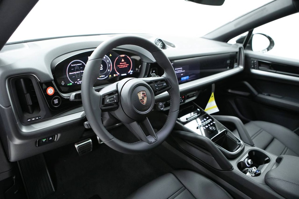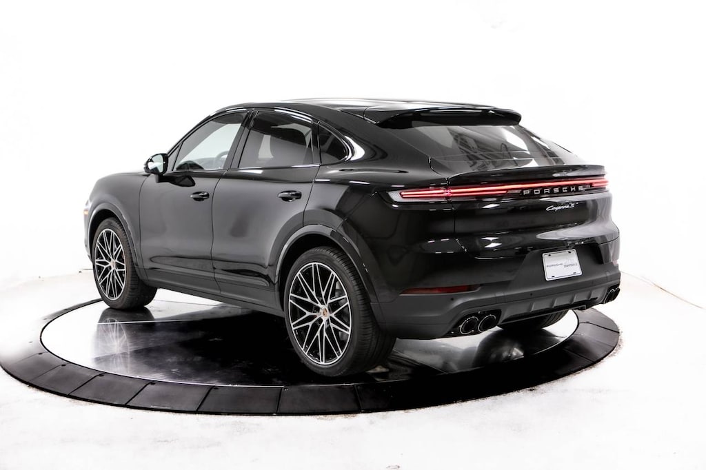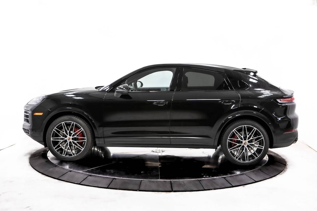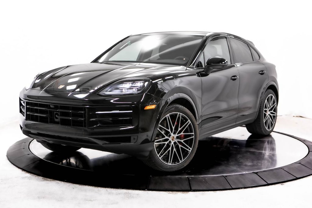 Black 2026 Porsche Cayenne Coupe S AWD 8-Speed Automatic with Tiptronic V8 10 Speakers, 14-Way Power Seats w/Comfort Memory, 4-Wheel Disc Brakes, 4-Zone Climate Control, 8-Way Sport Seats, ABS brakes, Adaptive Cruise Control w/Lane Keep Assist (LKA), Adaptive suspension, Air Conditioning, Alloy wheels, AM/FM radio: SiriusXM w/360L, Apple CarPlay & Android Auto, Audio memory, Auto-dimming door mirrors, Auto-dimming Rear-View mirror, Automatic temperature control, BOSE Surround Sound System, Brake assist, Bumpers: body-color, Compass, Delay-off headlights, Driver door bin, Driver vanity mirror, Dual front impact airbags, Dual front side impact airbags, Electronic Stability Control, Exterior Parking Camera Rear, Four wheel independent suspension, Front anti-roll bar, Front Bucket Seats, Front Center Armrest, Front dual zone A/C, Front reading lights, Front Ventilated Seats, Fully automatic headlights, Garage door transmitter: HomeLink, HD-Matrix Design LED Headlights, Heated door mirrors, Heated front seats, Heated GT Sport Steering Wheel in Leather, Heated steering wheel, HVAC memory, Illuminated entry, Knee airbag, Leather Seat Trim, Leather steering wheel, Low tire pressure warning, Memory seat, Navigation System, Occupant sensing airbag, Outside temperature display, Overhead airbag, Overhead console, Panic alarm, Passenger Display, Passenger door bin, Passenger vanity mirror, Porsche Communication Management, Porsche Crest on Front Headrests, Power door mirrors, Power driver seat, Power Liftgate, Power passenger seat, Power steering, Power windows, Premium Package Plus, Radio data system, Rain sensing wipers, Rear anti-roll bar, Rear Comfort Seats (2+1), Rear fog lights, Rear Heated Seats, Rear reading lights, Rear seat center armrest, Rear side impact airbag, Rear window defroster, Remote keyless entry, Security system, Speed control, Speed-sensing steering, Split folding rear seat, Spoiler, Sport Tailpipes in Dark Bronze, Steering wheel mounted audio controls, Tachometer, Telescoping steering wheel, Tilt steering wheel, Traction control, Trip computer, Turn signal indicator mirrors, Under Door Puddle Light Projectors, Variably intermittent wipers, Voltmeter, Wheels: 20 Cayenne S in Vesuvius Grey, Wheels: 22 RS Spyder Design.