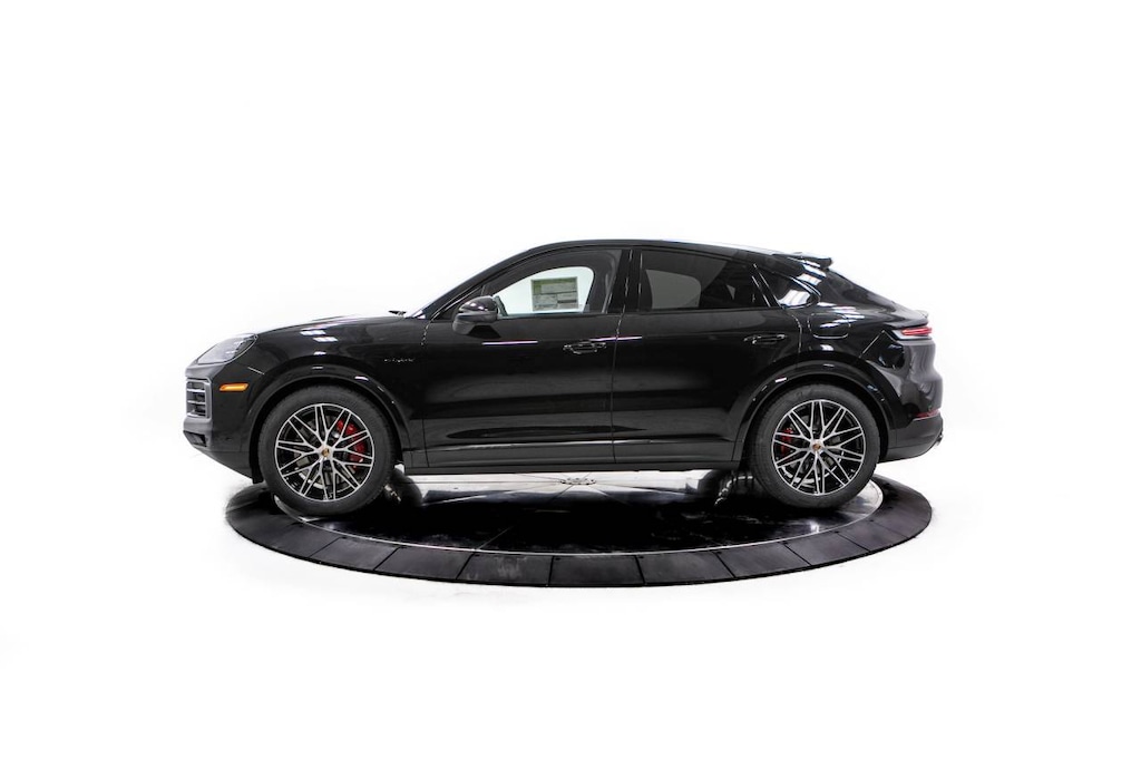 Black 2026 Porsche Cayenne E-Hybrid Coupe S AWD 8-Speed Automatic with Tiptronic 3.0L V6 Plug-In Hybrid Turbocharged 3.0L V6 Plug-In Hybrid Turbocharged, 10 Speakers, 14-Way Power Seats with Comfort Memory, 18-Way Adaptive Sport Seats Plus with Comfort Memory, 4-Wheel Disc Brakes, 4-Zone Climate Control, 8-Way Sport Seats, ABS brakes, Adaptive Cruise Control with Lane Keep Assist (LKA), Adaptive suspension, Air Conditioning, Air Quality System, Alloy wheels, AM/FM radio: SiriusXM w/360L, Apple CarPlay & Android Auto, Audio memory, Auto-dimming door mirrors, Auto-dimming Rear-View mirror, Auto-leveling suspension, Automatic temperature control, BOSE Surround Sound System, Brake assist, Bumpers: body-color, Compass, Delay-off headlights, Driver door bin, Driver vanity mirror, Dual front impact airbags, Dual front side impact airbags, Electronic Stability Control, Exterior Parking Camera Rear, Four wheel independent suspension, Front anti-roll bar, Front Bucket Seats, Front Center Armrest, Front dual zone A/C, Front reading lights, Front Ventilated Seats, Fully automatic headlights, Garage door transmitter: HomeLink, HD-Matrix Design LED Headlights, Heated door mirrors, Heated front seats, Heated GT Sport Steering Wheel in Leather, Heated steering wheel, HVAC memory, Illuminated entry, Knee airbag, Leather Seat Trim, Leather steering wheel, Low tire pressure warning, Memory seat, Navigation System, Occupant sensing airbag, Outside temperature display, Overhead airbag, Overhead console, Panic alarm, Passenger door bin, Passenger vanity mirror, Porsche Communication Management, Porsche Crest on Front Headrests, Porsche Logo and Model Designation on Rear in Black, Power door mirrors, Power driver seat, Power Liftgate, Power passenger seat, Power steering, Power windows, Premium Package Plus, Radio data system, Rain sensing wipers, Rear anti-roll bar, Rear Comfort Seats (2+1), Rear fog lights, Rear Heated Seats, Rear reading lights, Rear seat center armrest, Rear side impact airbag, Rear window defroster, Remote keyless entry, Security system, Speed control, Speed-sensing steering, Split folding rear seat, Spoiler, Sport Tailpipes in Dark Bronze, Steering wheel mounted audio controls, Tachometer, Telescoping steering wheel, Tilt steering wheel, Traction control, Trip computer, Turn signal indicator mirrors, Under Door Puddle Light Projectors, Variably intermittent wipers, Voltmeter, Wheels: 20 Cayenne S in Vesuvius Grey, Wheels: 21 RS Spyder Design, 3.0L V6 Plug-In Hybrid Turbocharged.