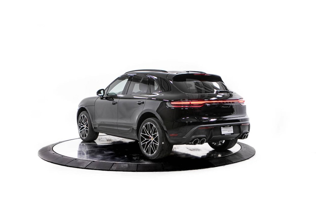 Black 2026 Porsche Macan S AWD 7-Speed Porsche Doppelkupplung (PDK) V6 14-Way Power Seats with Memory Package, 4-Wheel Disc Brakes, 8 Speakers, 8-Way Front Comfort Seats, ABS brakes, Air Conditioning, Alloy wheels, AM/FM radio: SiriusXM, Apple CarPlay, Auto-dimming door mirrors, Auto-dimming Rear-View mirror, Automatic temperature control, BOSE Surround Sound System, Brake assist, Bumpers: body-color, Delay-off headlights, Driver door bin, Driver vanity mirror, Dual front impact airbags, Dual front side impact airbags, Electric Steering Column, Electronic Stability Control, Emergency communication system, Exterior Parking Camera Rear, Four wheel independent suspension, Front anti-roll bar, Front Bucket Seats, Front Center Armrest, Front dual zone A/C, Front reading lights, Front Ventilated Seats, Fully automatic headlights, Garage door transmitter: HomeLink, Heated door mirrors, Heated front seats, Illuminated entry, Lane Change Assist (LCA), Leather Shift Knob, Leather steering wheel, LED Headlights with Porsche Dynamic Light System Plus, Low tire pressure warning, Memory seat, Navigation System, Occupant sensing airbag, Outside temperature display, Overhead airbag, Overhead console, Panic alarm, Panoramic Roof System, Passenger door bin, Passenger vanity mirror, Porsche Communication Management, Porsche Crest on Front Headrests, Porsche Logo and Model Designation in Satin Black, Power door mirrors, Power driver seat, Power Liftgate, Power passenger seat, Power steering, Power windows, Premium Package Plus, Radio data system, Rain sensing wipers, Rear air conditioning, Rear anti-roll bar, Rear Heated Seats, Rear reading lights, Rear seat center armrest, Rear side impact airbag, Rear window defroster, Rear window wiper, Remote keyless entry, Roof Rails in High Gloss Black, Security system, Sound Package Plus, Speed control, Speed-sensing steering, Split folding rear seat, Spoiler, Sport steering wheel, Sport Tailpipes in Black, Standard Seat Trim, Steering wheel mounted audio controls, Surround View, Tachometer, Telescoping steering wheel, Tilt steering wheel, Traction control, Trip computer, Turn signal indicator mirrors, Under Door Puddle Light Projectors, Variably intermittent wipers, Wheel Center Caps with Colored Porsche Crest, Wheels: 20 Macan S in Highly Polished Dark Titanium, Wheels: 21 RS Spyder Design.