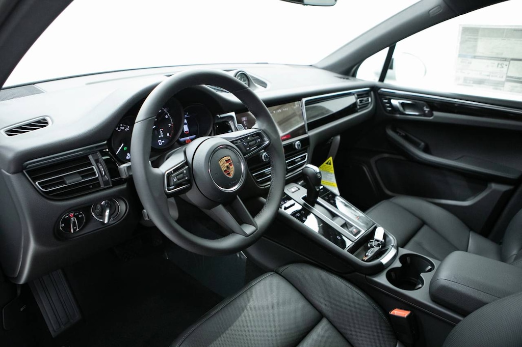 White 2026 Porsche Macan AWD 7-Speed Porsche Doppelkupplung (PDK) 2.0L Turbocharged 14-Way Power Seats w/Memory Package, 4-Wheel Disc Brakes, 8 Speakers, 8-Way Front Comfort Seats, ABS brakes, Air Conditioning, Alloy wheels, AM/FM radio: SiriusXM, Apple CarPlay, Auto-dimming door mirrors, Auto-dimming Rear-View mirror, Automatic temperature control, BOSE Surround Sound System, Brake assist, Bumpers: body-color, Clear LED Taillights, Delay-off headlights, Driver door bin, Driver vanity mirror, Dual front impact airbags, Dual front side impact airbags, Electric Steering Column, Electronic Stability Control, Emergency communication system, Exterior Package in Exterior Color, Exterior Parking Camera Rear, Four wheel independent suspension, Front anti-roll bar, Front Bucket Seats, Front Center Armrest, Front dual zone A/C, Front reading lights, Front Ventilated Seats, Fully automatic headlights, Garage door transmitter: HomeLink, Heated door mirrors, Heated front seats, Illuminated entry, Lane Change Assist (LCA), Leather Shift Knob, Leather steering wheel, LED Headlights w/Porsche Dynamic Light System Plus, Low tire pressure warning, Memory seat, Navigation System, Occupant sensing airbag, Outside temperature display, Overhead airbag, Overhead console, Panic alarm, Panoramic Roof System, Passenger door bin, Passenger vanity mirror, Porsche Communication Management, Porsche Crest on Front Headrests, Porsche Logo on Rear in Satin Black, Power door mirrors, Power driver seat, Power Liftgate, Power passenger seat, Power steering, Power windows, Premium Package Plus, Radio data system, Rain sensing wipers, Rear air conditioning, Rear anti-roll bar, Rear Heated Seats, Rear reading lights, Rear seat center armrest, Rear side impact airbag, Rear window defroster, Rear window wiper, Remote keyless entry, Roof Rails in High Gloss Black, Security system, Side Blades in Exterior Color, Sound Package Plus, Speed control, Speed-sensing steering, Split folding rear seat, Spoiler, Sport steering wheel, Sport Tailpipes in Black, Standard Seat Trim, Steering wheel mounted audio controls, Surround View, Tachometer, Telescoping steering wheel, Tilt steering wheel, Traction control, Trip computer, Turn signal indicator mirrors, Under Door Puddle Light Projectors, Variably intermittent wipers, Wheels: 19 Macan, Wheels: 21 RS Spyder Design.