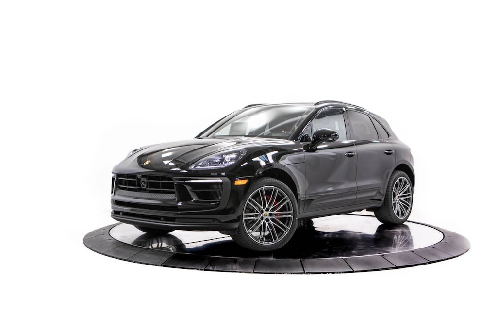 Black 2026 Porsche Macan S AWD 7-Speed Porsche Doppelkupplung (PDK) V6 14-Way Power Seats with Memory Package, 18-Way Adaptive Sport Seats Plus with Memory Package, 4-Wheel Disc Brakes, 8 Speakers, 8-Way Front Comfort Seats, ABS brakes, Air Conditioning, Alloy wheels, AM/FM radio: SiriusXM, Apple CarPlay, Auto-dimming door mirrors, Auto-dimming Rear-View mirror, Automatic temperature control, BOSE Surround Sound System, Brake assist, Bumpers: body-color, Delay-off headlights, Driver door bin, Driver vanity mirror, Dual front impact airbags, Dual front side impact airbags, Electric Steering Column, Electronic Stability Control, Emergency communication system, Exterior Parking Camera Rear, Four wheel independent suspension, Front anti-roll bar, Front Bucket Seats, Front Center Armrest, Front dual zone A/C, Front reading lights, Front Ventilated Seats, Fully automatic headlights, Garage door transmitter: HomeLink, Heated door mirrors, Heated front seats, Illuminated entry, Ionizer, Lane Change Assist (LCA), Leather Shift Knob, Leather steering wheel, LED Headlights with Porsche Dynamic Light System Plus, Low tire pressure warning, Memory seat, Navigation System, Occupant sensing airbag, Outside temperature display, Overhead airbag, Overhead console, Panic alarm, Panoramic Roof System, Passenger door bin, Passenger vanity mirror, Porsche Communication Management, Porsche Crest on Front Headrests, Porsche Logo and Model Designation in Satin Black, Power door mirrors, Power driver seat, Power Liftgate, Power passenger seat, Power steering, Power windows, Premium Package Plus, Preparation For Porsche Dashcam, Radio data system, Rain sensing wipers, Rear air conditioning, Rear anti-roll bar, Rear Heated Seats, Rear reading lights, Rear seat center armrest, Rear side impact airbag, Rear window defroster, Rear window wiper, Remote keyless entry, Roof Rails in High Gloss Black, Security system, Sound Package Plus, Speed control, Speed-sensing steering, Split folding rear seat, Spoiler, Sport steering wheel, Sport Tailpipes in Black, Standard Seat Trim, Steering wheel mounted audio controls, Surround View, Tachometer, Telescoping steering wheel, Tilt steering wheel, Traction control, Trip computer, Turn signal indicator mirrors, Under Door Puddle Light Projectors, Variably intermittent wipers, Wheel Center Caps with Colored Porsche Crest, Wheels: 20 Macan S in Highly Polished Dark Titanium, Wheels: 21 911 Turbo, Window Trim in High Gloss Black.