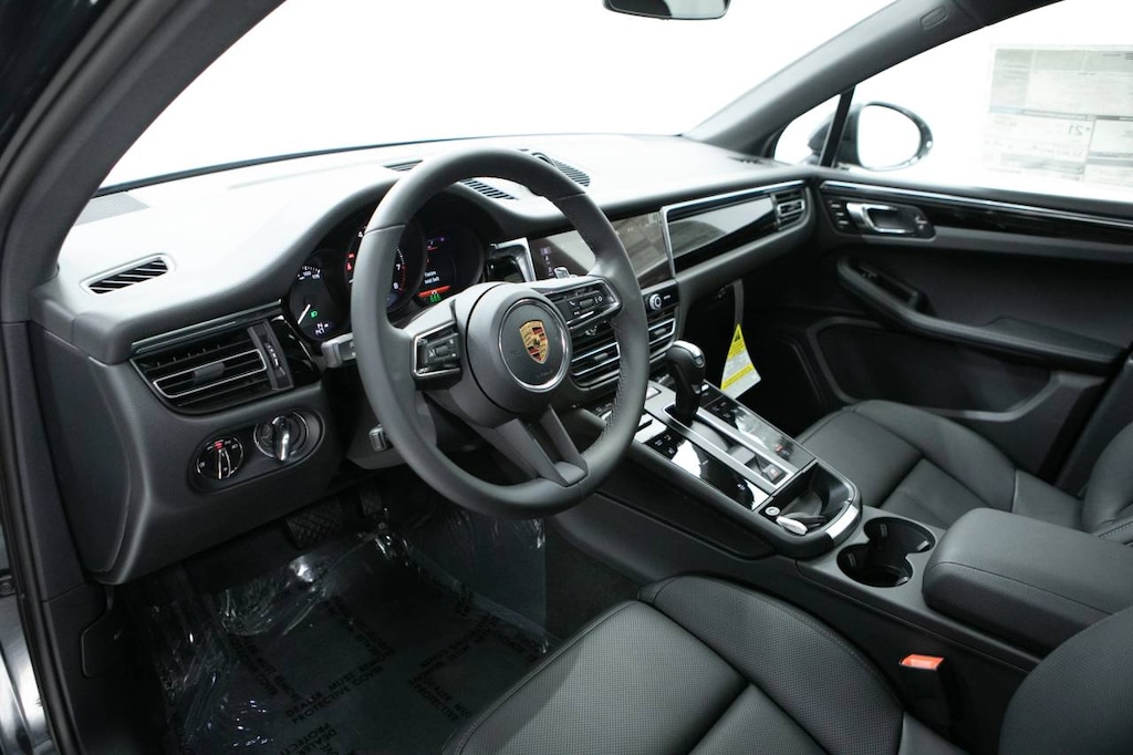 Gray Metallic 2026 Porsche Macan AWD 7-Speed Porsche Doppelkupplung (PDK) 2.0L Turbocharged 14-Way Power Seats w/Memory Package, 4-Wheel Disc Brakes, 8 Speakers, 8-Way Front Comfort Seats, ABS brakes, Air Conditioning, Alloy wheels, AM/FM radio: SiriusXM, Apple CarPlay, Auto-dimming door mirrors, Auto-dimming Rear-View mirror, Automatic temperature control, BOSE Surround Sound System, Brake assist, Bumpers: body-color, Delay-off headlights, Driver door bin, Driver vanity mirror, Dual front impact airbags, Dual front side impact airbags, Electric Steering Column, Electronic Stability Control, Emergency communication system, Exterior Parking Camera Rear, Four wheel independent suspension, Front anti-roll bar, Front Bucket Seats, Front Center Armrest, Front dual zone A/C, Front reading lights, Front Ventilated Seats, Fully automatic headlights, Garage door transmitter: HomeLink, Heated door mirrors, Heated front seats, Illuminated entry, Lane Change Assist (LCA), Leather Shift Knob, Leather steering wheel, LED Headlights w/Porsche Dynamic Light System Plus, Low tire pressure warning, Memory seat, Navigation System, Occupant sensing airbag, Outside temperature display, Overhead airbag, Overhead console, Panic alarm, Panoramic Roof System, Passenger door bin, Passenger vanity mirror, Porsche Communication Management, Power door mirrors, Power driver seat, Power Liftgate, Power passenger seat, Power steering, Power windows, Premium Package Plus, Radio data system, Rain sensing wipers, Rear air conditioning, Rear anti-roll bar, Rear Heated Seats, Rear reading lights, Rear seat center armrest, Rear side impact airbag, Rear window defroster, Rear window wiper, Remote keyless entry, Roof Rails in High Gloss Black, Security system, Sound Package Plus, Speed control, Speed-sensing steering, Split folding rear seat, Spoiler, Sport steering wheel, Standard Seat Trim, Steering wheel mounted audio controls, Surround View, Tachometer, Telescoping steering wheel, Tilt steering wheel, Traction control, Trip computer, Turn signal indicator mirrors, Variably intermittent wipers, Wheels: 19 Macan, Wheels: 21 RS Spyder Design.