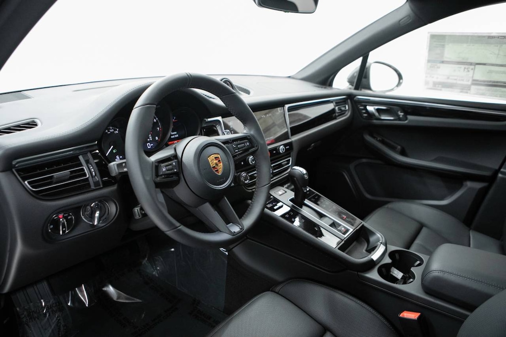 Black 2026 Porsche Macan T AWD 7-Speed Porsche Doppelkupplung (PDK) 2.0L Turbocharged 14-Way Power Seats with Memory Package, 4-Wheel Disc Brakes, 8 Speakers, 8-Way Sport Seats, ABS brakes, Air Conditioning, Alloy wheels, AM/FM radio: SiriusXM, Apple CarPlay, Auto-dimming door mirrors, Auto-dimming Rear-View mirror, Automatic temperature control, BOSE Surround Sound System, Brake assist, Bumpers: body-color, Delay-off headlights, Driver door bin, Driver vanity mirror, Dual front impact airbags, Dual front side impact airbags, Electric Steering Column, Electronic Stability Control, Emergency communication system, Exclusive Design Fuel Cap, Exterior Parking Camera Rear, Four wheel independent suspension, Front anti-roll bar, Front Bucket Seats, Front Center Armrest, Front dual zone A/C, Front reading lights, Front Ventilated Seats, Fully automatic headlights, Garage door transmitter: HomeLink, Heated door mirrors, Heated front seats, Heated steering wheel, Illuminated entry, Ionizer, Lane Change Assist (LCA), Lane Keep Assist (LKA) with Traffic Jam Assist, Leather Shift Knob, Leather steering wheel, LED Headlights with Porsche Dynamic Light System Plus, Low tire pressure warning, Macan T Interior Package Seat Trim, Memory seat, Navigation System, Occupant sensing airbag, Outside temperature display, Overhead airbag, Overhead console, Panic alarm, Panoramic Roof System, Passenger door bin, Passenger vanity mirror, Porsche Communication Management, Porsche Crest on Front and Rear Headrests, Power door mirrors, Power driver seat, Power Liftgate, Power passenger seat, Power steering, Power windows, Premium Package Plus, Preparation For Porsche Dashcam, Radio data system, Rain sensing wipers, Rear air conditioning, Rear anti-roll bar, Rear Heated Seats, Rear reading lights, Rear seat center armrest, Rear side impact airbag, Rear window defroster, Rear window wiper, Remote keyless entry, Roof Rails in High Gloss Black, Security system, Sound Package Plus, Speed control, Speed-sensing steering, Split folding rear seat, Spoiler, Sport steering wheel, Steering wheel mounted audio controls, Surround View, Tachometer, Telescoping steering wheel, Tilt steering wheel, Traction control, Trip computer, Turn signal indicator mirrors, Under Door Puddle Light Projectors, Variably intermittent wipers, Wheel Center Caps with Colored Porsche Crest, Wheels: 20 Macan S in Dark Titanium.