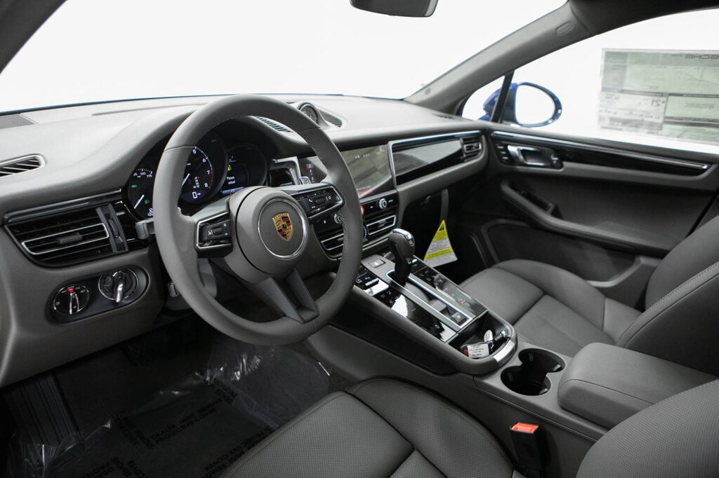 Blue Metallic 2026 Porsche Macan AWD 7-Speed Porsche Doppelkupplung (PDK) 2.0L Turbocharged 14-Way Power Seats with Memory Package, 4-Wheel Disc Brakes, 8 Speakers, 8-Way Front Comfort Seats, ABS brakes, Air Conditioning, Alloy wheels, AM/FM radio: SiriusXM, Apple CarPlay, Auto-dimming door mirrors, Auto-dimming Rear-View mirror, Automatic temperature control, Brake assist, Bumpers: body-color, Delay-off headlights, Driver door bin, Driver vanity mirror, Dual front impact airbags, Dual front side impact airbags, Electric Steering Column, Electronic Stability Control, Emergency communication system, Exterior Parking Camera Rear, Four wheel independent suspension, Front anti-roll bar, Front Bucket Seats, Front Center Armrest, Front dual zone A/C, Front reading lights, Front Ventilated Seats, Fully automatic headlights, Garage door transmitter: HomeLink, Heated door mirrors, Heated front seats, Heated Steering Wheel, Illuminated entry, Lane Change Assist (LCA), Leather Shift Knob, Leather steering wheel, LED Headlights with Porsche Dynamic Light System Plus, Low tire pressure warning, Memory seat, Navigation System, Occupant sensing airbag, Outside temperature display, Overhead airbag, Overhead console, Panic alarm, Panoramic Roof System, Passenger door bin, Passenger vanity mirror, Porsche Communication Management, Power door mirrors, Power driver seat, Power Liftgate, Power passenger seat, Power steering, Power windows, Premium Package Plus, Radio data system, Rain sensing wipers, Rear air conditioning, Rear anti-roll bar, Rear Heated Seats, Rear reading lights, Rear seat center armrest, Rear side impact airbag, Rear window defroster, Rear window wiper, Remote keyless entry, Security system, Side Blades in Exterior Color, Sound Package Plus, Speed control, Speed-sensing steering, Split folding rear seat, Spoiler, Sport steering wheel, Standard Seat Trim, Steering wheel mounted audio controls, Surround View, Tachometer, Telescoping steering wheel, Tilt steering wheel, Traction control, Trip computer, Turn signal indicator mirrors, Under Door Puddle Light Projectors, Variably intermittent wipers, Wheels: 19 Macan, Wheels: 21 RS Spyder Design.
