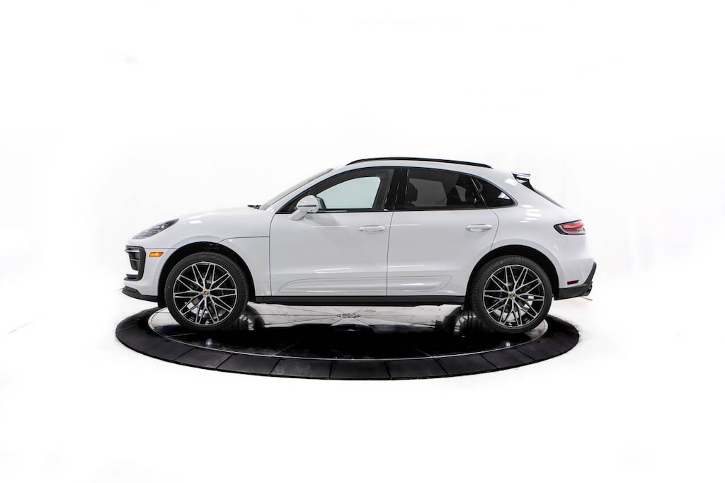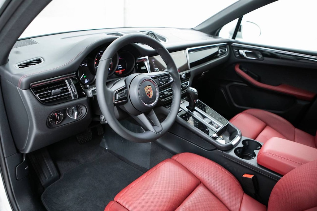 White 2026 Porsche Macan AWD 7-Speed Porsche Doppelkupplung (PDK) 2.0L Turbocharged 4-Wheel Disc Brakes, 8 Speakers, 8-Way Front Comfort Seats, ABS brakes, Air Conditioning, Alloy wheels, AM/FM radio: SiriusXM, Apple CarPlay, Auto-dimming door mirrors, Auto-dimming Rear-View mirror, Automatic temperature control, BOSE Surround Sound System, Brake assist, Bumpers: body-color, Delay-off headlights, Driver door bin, Driver vanity mirror, Dual front impact airbags, Dual front side impact airbags, Electronic Stability Control, Emergency communication system, Exterior Parking Camera Rear, Four wheel independent suspension, Front anti-roll bar, Front Bucket Seats, Front Center Armrest, Front dual zone A/C, Front reading lights, Front Ventilated Seats, Fully automatic headlights, Garage door transmitter: HomeLink, Heated door mirrors, Heated front seats, Illuminated entry, Lane Change Assist (LCA), Leather Shift Knob, Leather steering wheel, Low tire pressure warning, Memory seat, Navigation System, Occupant sensing airbag, Outside temperature display, Overhead airbag, Overhead console, Panic alarm, Panoramic Roof System, Passenger door bin, Passenger vanity mirror, Porsche Communication Management, Porsche Crest on Front Headrests, Porsche Logo in Satin Black, Power door mirrors, Power driver seat, Power Liftgate, Power passenger seat, Power steering, Power windows, Premium Package Plus, Radio data system, Rain sensing wipers, Rear air conditioning, Rear anti-roll bar, Rear Heated Seats, Rear reading lights, Rear seat center armrest, Rear side impact airbag, Rear window defroster, Rear window wiper, Remote keyless entry, Roof Rails in High Gloss Black, Security system, Side Blades in Exterior Color, Sound Package Plus, Speed control, Speed-sensing steering, Split folding rear seat, Spoiler, Sport steering wheel, Sport Tailpipes in Black, Standard Seat Trim, Steering wheel mounted audio controls, Surround View, Tachometer, Telescoping steering wheel, Tilt steering wheel, Traction control, Trip computer, Turn signal indicator mirrors, Variably intermittent wipers, Wheels: 19 Macan, Wheels: 21 RS Spyder Design.