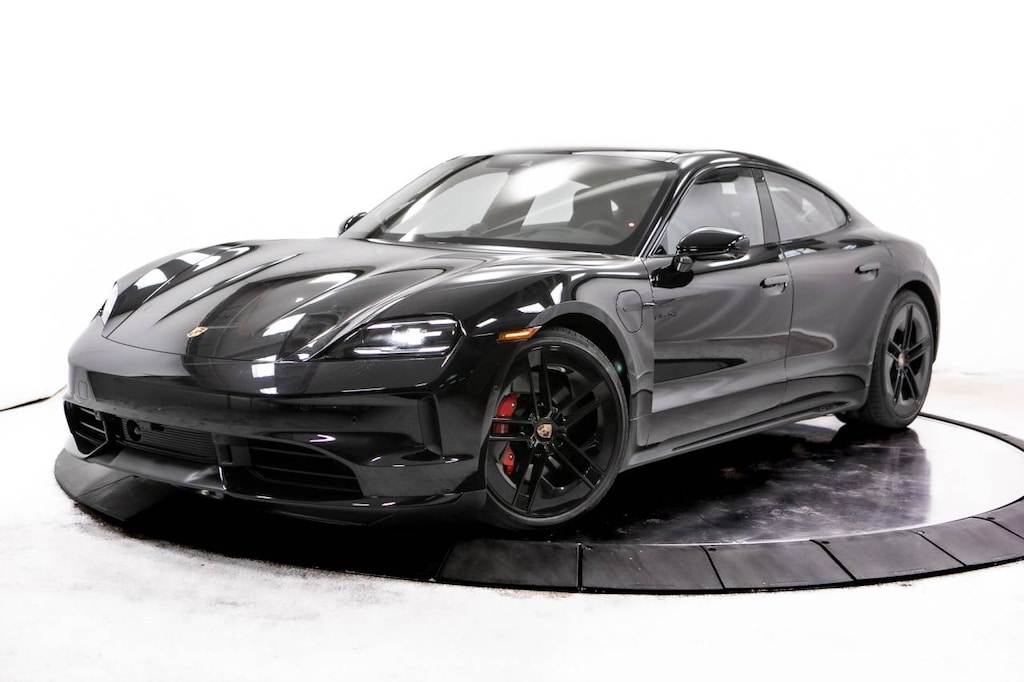 Jet Black 2026 Porsche Taycan GTS AWD 2-Speed Automatic Electric Motor 14 Speakers, 18-Way Adaptive Sport Seats Plus w/Comfort Memory, 4-Wheel Disc Brakes, ABS brakes, Adaptive Cruise Control, Adaptive suspension, Advanced 4-Zone Climate Control, Air Conditioning, Air Quality System, Alloy wheels, Apple CarPlay & Android Auto, Audio memory, Auto High-beam Headlights, Auto tilt-away steering wheel, Auto-dimming door mirrors, Auto-dimming Rear-View mirror, Auto-leveling suspension, Automatic temperature control, Brake assist, Bumpers: body-color, Compass, Delay-off headlights, Driver door bin, Driver vanity mirror, Dual front impact airbags, Dual front side impact airbags, Electronic Stability Control, Emergency communication system: Emergency Call Systems - eCall and bCall, Exterior Parking Camera Rear, Fixed Panoramic Roof in Glass, Four wheel independent suspension, Front anti-roll bar, Front Bucket Seats, Front Center Armrest, Front dual zone A/C, Front reading lights, Front Ventilated Seats, Fully automatic headlights, Garage door transmitter: HomeLink, Heated door mirrors, Heated front seats, Heated GT Sport Steering Wheel in Leather, Heated steering wheel, HVAC memory, Illuminated entry, Knee airbag, Leather/Race-Tex Seat Trim, Low tire pressure warning, Memory seat, Navigation system: Porsche Communication Management (PCM), Occupant sensing airbag, Outside temperature display, Overhead airbag, Overhead console, Panic alarm, Passenger Display, Passenger door bin, Passenger vanity mirror, Porsche Communication Management, Porsche Crest on Front and Rear Headrests, Power door mirrors, Power driver seat, Power passenger seat, Power steering, Power windows, Premium Package, Radio data system, Rain sensing wipers, Rear 2+1 Seats, Rear anti-roll bar, Rear fog lights, Rear Heated Seats, Rear reading lights, Rear seat center armrest, Rear side impact airbag, Rear window defroster, Remote keyless entry, Security system, Speed control, Speed-sensing steering, Split folding rear seat, Spoiler, Sport steering wheel, Steering wheel memory, Steering wheel mounted audio controls, Storage Package, Surround View w/Active Parking Support, Telescoping steering wheel, Tilt steering wheel, Traction control, Trip computer, Variably intermittent wipers, Wheels Painted in High Gloss Black, Wheels: 20 Taycan Turbo S Aero Design, Wheels: 21 High Gloss Blk Taycan Exclusive Design.
