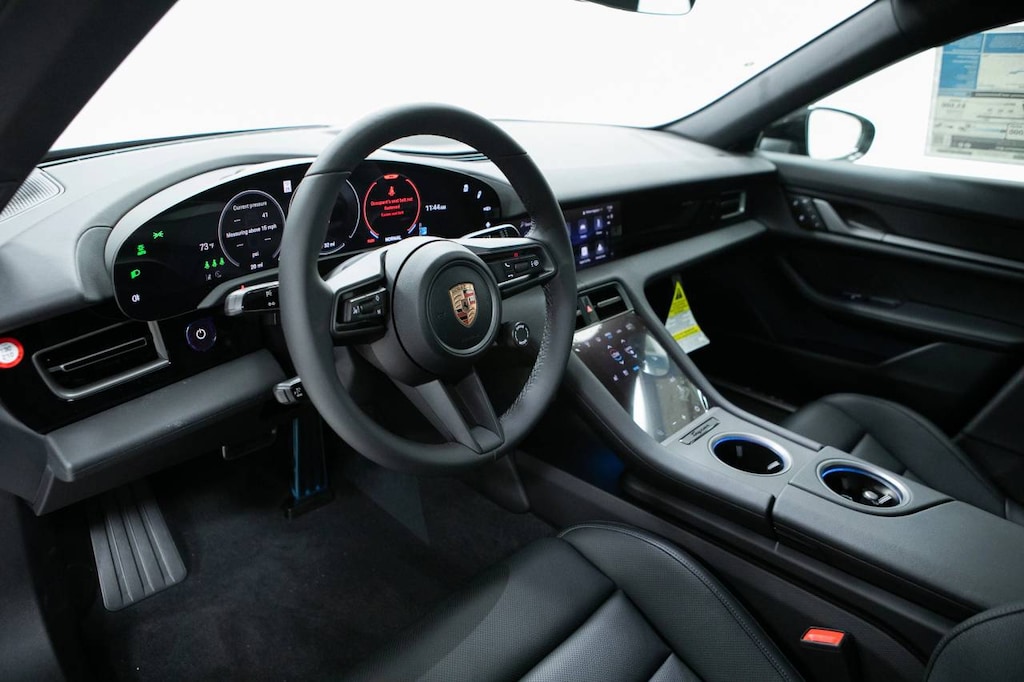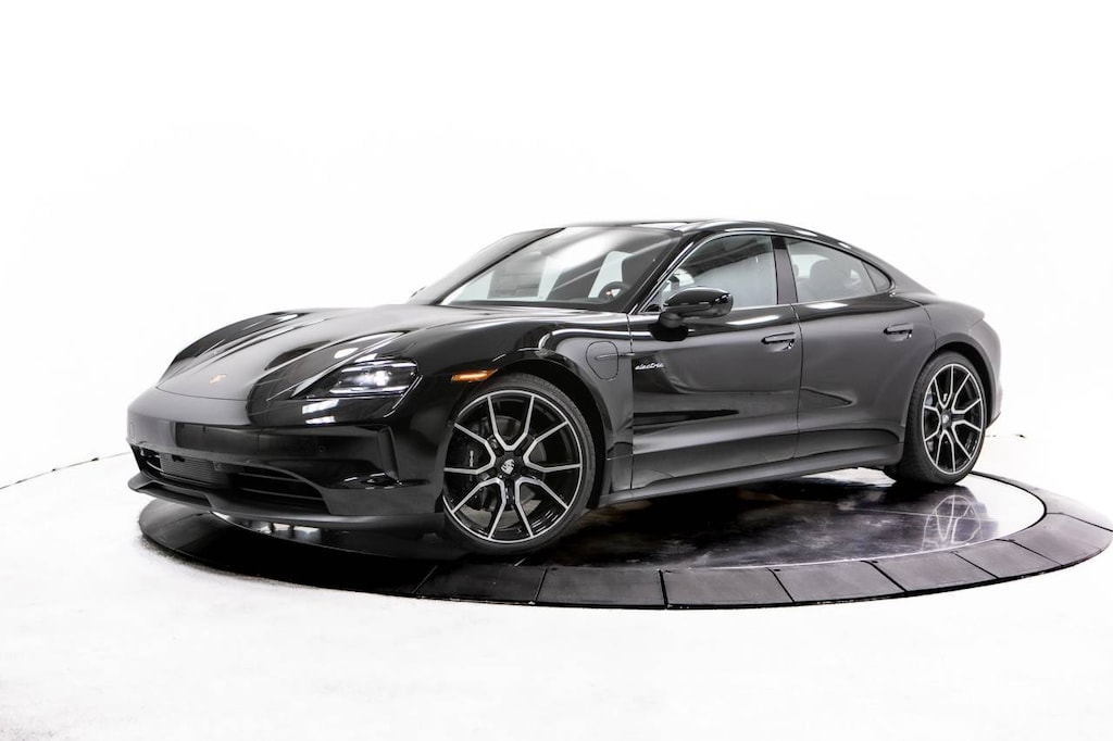 Black 2026 Porsche Taycan AWD 2-Speed Automatic Electric Motor 10 Speakers, 14-Way Comfort Seats w/Comfort Memory, 4-Wheel Disc Brakes, 8-Way Comfort Seats, ABS brakes, Adaptive suspension, Air Conditioning, Alloy wheels, Apple CarPlay & Android Auto, Artificial Leather Seat Trim, Auto High-beam Headlights, Auto-dimming door mirrors, Auto-dimming Rear-View mirror, Auto-leveling suspension, Automatic temperature control, BOSE Surround Sound System, Brake assist, Bumpers: body-color, Compass, Delay-off headlights, Driver door bin, Driver vanity mirror, Dual front impact airbags, Dual front side impact airbags, Electronic Stability Control, Emergency communication system: Emergency Call Systems - eCall and bCall, Exterior Parking Camera Rear, Fixed Panoramic Roof in Glass, Four wheel independent suspension, Front anti-roll bar, Front Bucket Seats, Front Center Armrest, Front dual zone A/C, Front reading lights, Front Ventilated Seats, Fully automatic headlights, Garage door transmitter: HomeLink, Heated door mirrors, Heated front seats, Heated steering wheel, Illuminated entry, Knee airbag, Leather steering wheel, Low tire pressure warning, Memory seat, Navigation system: Porsche Communication Management (PCM), Occupant sensing airbag, Outside temperature display, Overhead airbag, Overhead console, Panic alarm, Passenger door bin, Passenger vanity mirror, Porsche Communication Management, Porsche Crest on Front Headrests, Power door mirrors, Power driver seat, Power passenger seat, Power steering, Power windows, Radio data system, Rain sensing wipers, Rear 2+1 Seats, Rear anti-roll bar, Rear fog lights, Rear reading lights, Rear seat center armrest, Rear side impact airbag, Rear window defroster, Remote keyless entry, Security system, Speed control, Speed-sensing steering, Split folding rear seat, Spoiler, Steering wheel mounted audio controls, Surround View w/Active Parking Support, Telescoping steering wheel, Tilt steering wheel, Traction control, Trip computer, Under Door Puddle Light Projectors, Variably intermittent wipers, Wheels: 19 Taycan S Aero, Wheels: 21 RS Spyder Design.