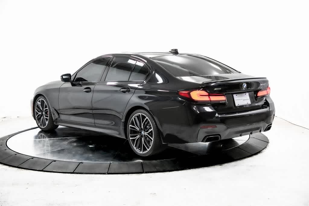 CARFAX One-Owner. Clean CARFAX. AWD, Ivory White Leather, 16 Speakers, 4-Wheel Disc Brakes, ABS brakes, Active Driving Assistant Pro, Active Park Distance Control, Adaptive suspension, Air Conditioning, Alloy wheels, AM/FM radio: SiriusXM with 360L, Apple CarPlay & Android Auto Compatibility, Auto High-beam Headlights, Auto tilt-away steering wheel, Auto-dimming door mirrors, Auto-dimming Rear-View mirror, Automatic temperature control, BMW Assist eCall, BMW TeleServices, Brake assist, Bumpers: body-color, Connected Package Pro, ConnectedDrive Services, Dakota Leather Upholstery, Delay-off headlights, Drive Recorder, Driver door bin, Driver vanity mirror, Dual front impact airbags, Dual front side impact airbags, Electronic Stability Control, Emergency communication system: BMW Assist eCall, Extended Shadowline Trim, Extended Traffic Jam Assistant, Exterior Parking Camera Rear, Four wheel independent suspension, Front & Rear Heated Seats, Front anti-roll bar, Front Bucket Seats, Front Center Armrest, Front dual zone A/C, Front reading lights, Fully automatic headlights, Garage door transmitter, Gesture Control, Gray Poplar Wood Trim, harman/kardon Surround Sound System, harman/kardon® Speakers, Head-Up Display, Heated door mirrors, Heated Front Seats, Heated front seats, Heated Steering Wheel, Illuminated entry, Leather Shift Knob, Leather steering wheel, Live Cockpit Pro, Low tire pressure warning, M Shadowline Lights, M Sport Brakes w/Red Calipers, Memory seat, Multi-Contour Seats, Navigation System, Occupant sensing airbag, Outside temperature display, Overhead airbag, Panic alarm, Parking Assistant Plus, Passenger door bin, Passenger vanity mirror, Power adjustable front head restraints, Power door mirrors, Power driver seat, Power Front Seats, Power moonroof, Power passenger seat, Power steering, Power windows, Radio data system, Radio: AM/FM Audio System, Rain sensing wipers, Rear anti-roll bar, Rear reading lights, Rear seat center armrest, Rear window defroster, Rear-View Camera, Remote keyless entry, Remote Services, Security system, SiriusXM w/360L, Speed control, Speed-sensing steering, Speed-Sensitive Wipers, Split folding rear seat, Spoiler, Sport steering wheel, Steering wheel memory, Steering wheel mounted audio controls, Surround View w/3D View, Tachometer, Telescoping steering wheel, Tilt steering wheel, Traction control, Trip computer, Turn signal indicator mirrors, Variably intermittent wipers, Wheels: 19 x 8 Fr & 19 x 9 Rr M Y-Spoke Bi-Color, Wheels: 20 x 8 Fr & 20 x 9 Rr M Y-Spoke, Wireless Charging, AWD, Ivory White Leather. Black Sapphire Metallic 2022 BMW 5 Series M550i xDrive M550i xDrive AWD 8-Speed Automatic Sport 4.4L V8 Twin Turbocharged