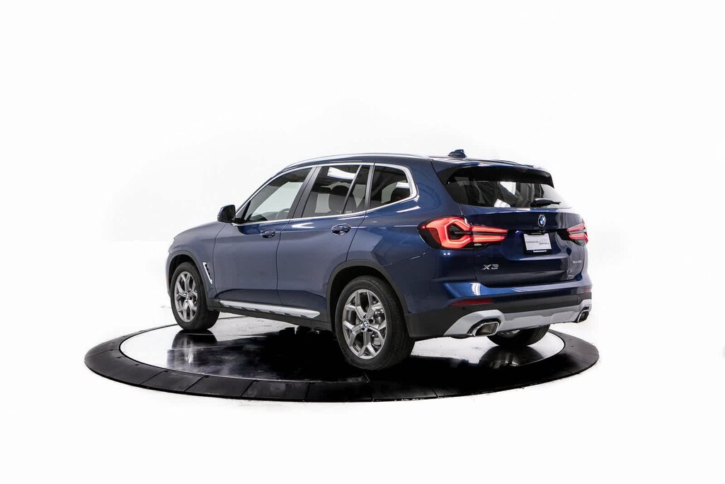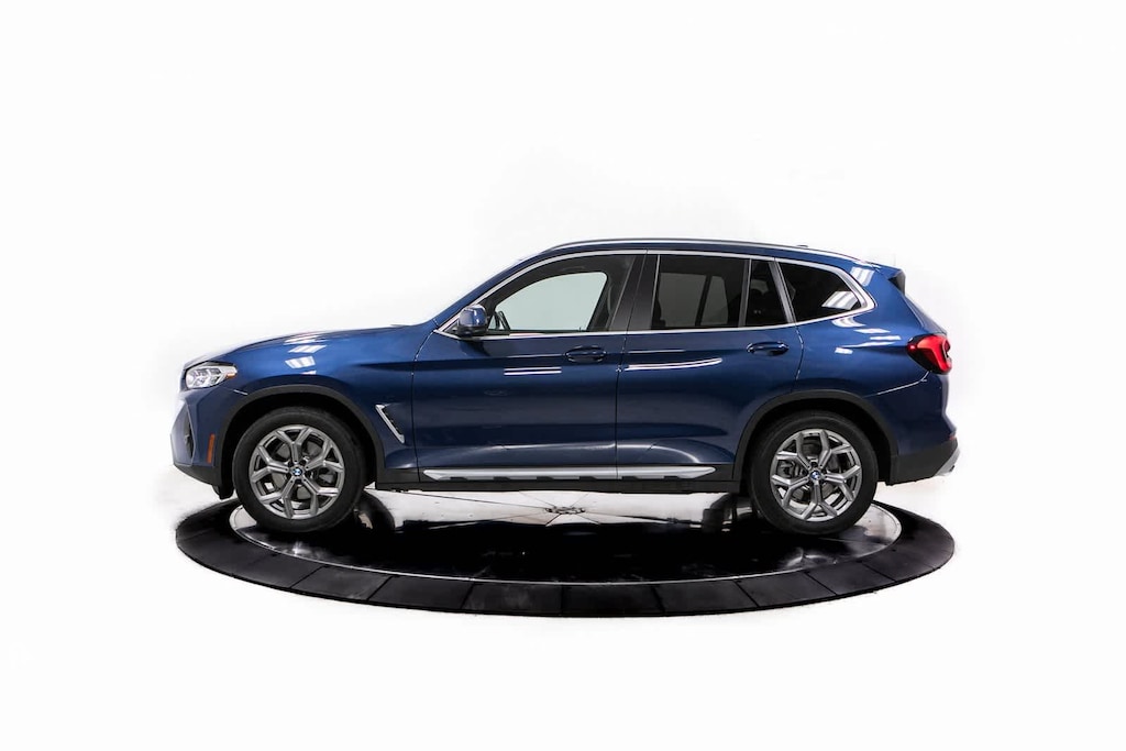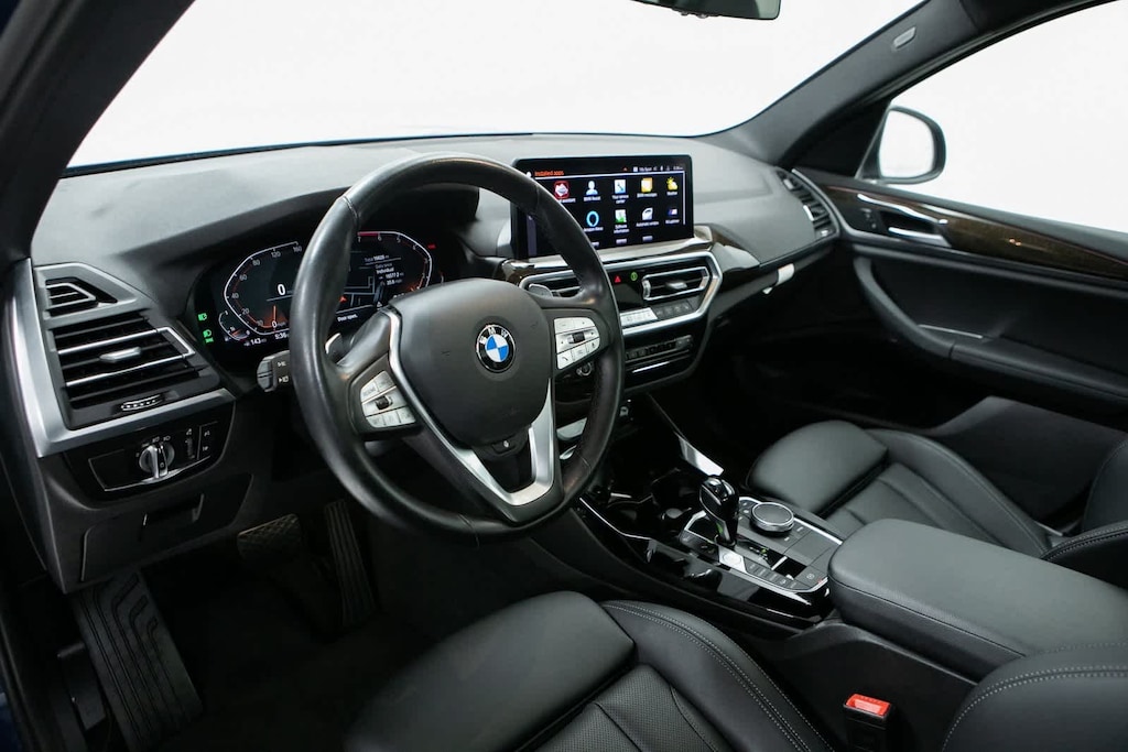 CARFAX One-Owner. Clean CARFAX. 8-Speed Automatic Sport, 12 Speakers, 3.385 Axle Ratio, 4-Wheel Disc Brakes, ABS brakes, Air Conditioning, Alloy wheels, AM/FM Radio, AM/FM radio: SiriusXM with 360L, Apple CarPlay & Android Auto Compatibility, Auto High-beam Headlights, Auto-dimming door mirrors, Auto-dimming Rear-View mirror, Automatic temperature control, BMW Assist eCall, BMW TeleServices, Brake assist, Bumpers: body-color, Comfort Access Keyless Entry, Connected Package Pro, ConnectedDrive Services, Convenience Package, Delay-off headlights, Driver door bin, Driver vanity mirror, Dual front impact airbags, Dual front side impact airbags, Electronic Stability Control, Emergency communication system: BMW Assist eCall, Enhanced Bluetooth, Exterior Parking Camera Rear, Four wheel independent suspension, Front anti-roll bar, Front Bucket Seats, Front Center Armrest, Front dual zone A/C, Front reading lights, Fully automatic headlights, Garage door transmitter, Genuine wood dashboard insert, Genuine wood door panel insert, Heated door mirrors, Heated Front Seats, Heated Steering Wheel, Hi-Fi Sound System, Illuminated entry, Knee airbag, Live Cockpit Pro w/Navigation, Low tire pressure warning, Lumbar Support, Memory seat, Navigation, Navigation System, Occupant sensing airbag, Outside temperature display, Overhead airbag, Panic alarm, Panoramic Moonroof, Passenger door bin, Passenger vanity mirror, Perforated SensaTec Upholstery, Power door mirrors, Power driver seat, Power Front Seats, Power Liftgate, Power passenger seat, Power steering, Power windows, Radio data system, Rain sensing wipers, Rear air conditioning, Rear anti-roll bar, Rear reading lights, Rear seat center armrest, Rear window defroster, Rear window wiper, Remote keyless entry, Roof rack: rails only, Security system, SiriusXM w/360L, Speed control, Speed-sensing steering, Speed-Sensitive Wipers, Split folding rear seat, Spoiler, Sport Seats, Sport steering wheel, Steering wheel mounted audio controls, Tachometer, Telescoping steering wheel, Tilt steering wheel, Traction control, Trip computer, Turn signal indicator mirrors, Variably intermittent wipers, Wheels: 19 x 7.5 Y-Spoke (Style 693), WiFi Hotspot, 8-Speed Automatic Sport. Odometer is 3911 miles below market average! Phytonic Blue Metallic 2022 BMW X3 xDrive30i xDrive30i AWD 8-Speed Automatic Sport 2.0L I4 TwinPower Turbo