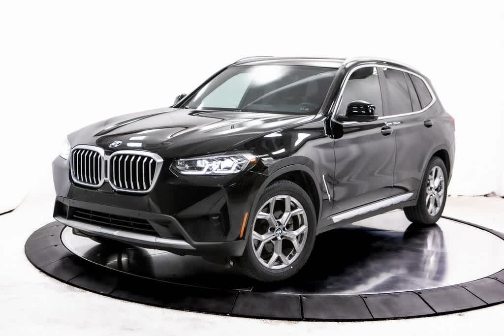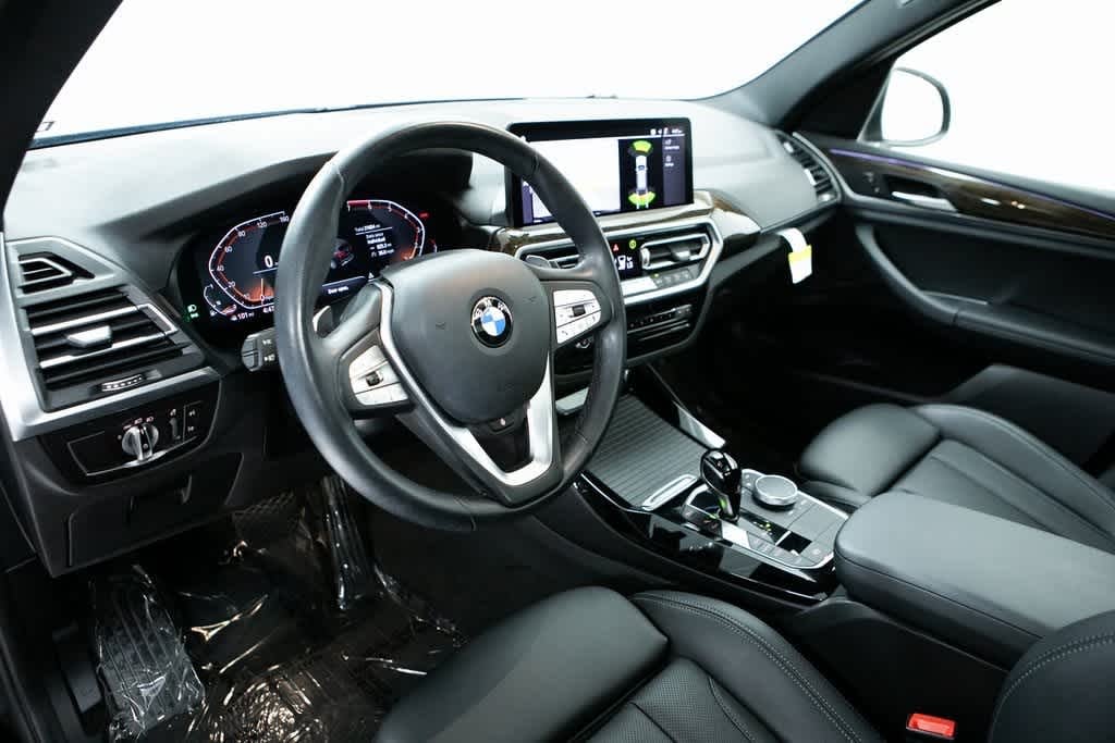 CARFAX One-Owner. 8-Speed Automatic Sport, 12 Speakers, 3.385 Axle Ratio, 4-Wheel Disc Brakes, ABS brakes, Air Conditioning, Alloy wheels, AM/FM Radio, AM/FM radio: SiriusXM with 360L, Apple CarPlay & Android Auto Compatibility, Auto High-beam Headlights, Auto-dimming door mirrors, Auto-dimming Rear-View mirror, Automatic temperature control, BMW Assist eCall, BMW TeleServices, Brake assist, Bumpers: body-color, Comfort Access Keyless Entry, Connected Package Pro, ConnectedDrive Services, Delay-off headlights, Driver door bin, Driver vanity mirror, Dual front impact airbags, Dual front side impact airbags, Electronic Stability Control, Emergency communication system: BMW Assist eCall, Enhanced Bluetooth, Exterior Parking Camera Rear, Four wheel independent suspension, Front anti-roll bar, Front Bucket Seats, Front Center Armrest, Front dual zone A/C, Front reading lights, Fully automatic headlights, Garage door transmitter, Genuine wood dashboard insert, Genuine wood door panel insert, Gesture Control, Heated door mirrors, Heated Front Seats, Heated Steering Wheel, Hi-Fi Sound System, Illuminated entry, Knee airbag, Live Cockpit Pro w/Navigation, Low tire pressure warning, Lumbar Support, Memory seat, Navigation, Navigation System, Occupant sensing airbag, Outside temperature display, Overhead airbag, Panic alarm, Panoramic Moonroof, Passenger door bin, Passenger vanity mirror, Perforated SensaTec Upholstery, Power door mirrors, Power driver seat, Power Front Seats, Power Liftgate, Power passenger seat, Power steering, Power windows, Premium Package 2, Radio data system, Rain sensing wipers, Rear air conditioning, Rear anti-roll bar, Rear reading lights, Rear seat center armrest, Rear window defroster, Rear window wiper, Remote keyless entry, Roof rack: rails only, Security system, SiriusXM w/360L, Speed control, Speed-sensing steering, Speed-Sensitive Wipers, Split folding rear seat, Spoiler, Sport Seats, Sport steering wheel, Steering wheel mounted audio controls, Tachometer, Telescoping steering wheel, Tilt steering wheel, Traction control, Trip computer, Turn signal indicator mirrors, Variably intermittent wipers, Wheels: 19 x 7.5 Y-Spoke (Style 693), WiFi Hotspot, 8-Speed Automatic Sport. Odometer is 9431 miles below market average! Jet Black 2022 BMW X3 sDrive30i sDrive30i RWD 8-Speed Automatic Sport 2.0L I4 TwinPower Turbo