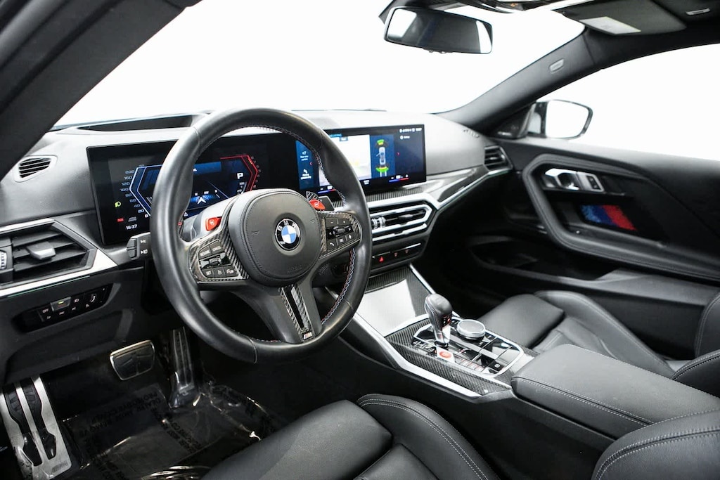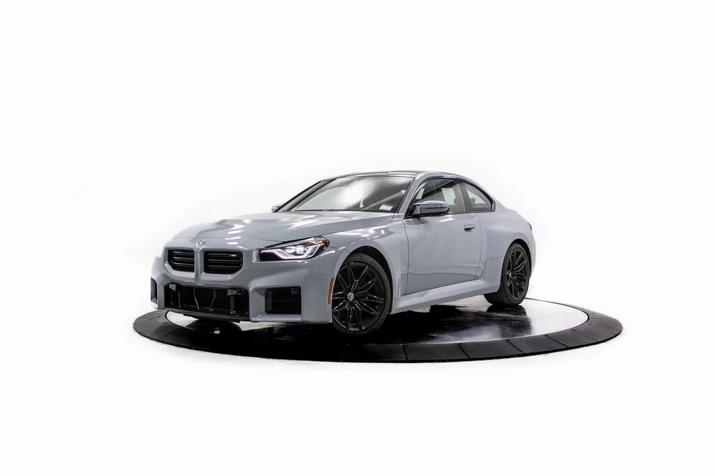 CARFAX One-Owner. Clean CARFAX. 4-Wheel Disc Brakes, ABS brakes, Adaptive Full LED Lights, Adaptive suspension, Air Conditioning, Alloy wheels, AM/FM radio: SiriusXM, AM/FM Stereo, Apple CarPlay Compatibility, Auto-dimming door mirrors, Auto-dimming Rear-View mirror, Automatic High Beams, Automatic temperature control, BMW Assist eCall, BMW M 50 Years Emblems, BMW TeleServices, Brake assist, Bumpers: body-color, Carbon Fiber Trim, Connected Package Pro, ConnectedDrive Services, Delay-off headlights, Driver door bin, Driver vanity mirror, Dual front impact airbags, Dual front side impact airbags, Electronic Stability Control, Emergency communication system: BMW Assist eCall, Exterior Parking Camera Rear, Four wheel independent suspension, Front anti-roll bar, Front Bucket Seats, Front Center Armrest, Front dual zone A/C, Front reading lights, Fully automatic headlights, Garage door transmitter, Hands-Free Bluetooth & USB Audio Connection, harman/kardon Surround Sound System, harman/kardon® Speakers, Head restraints memory, Heated door mirrors, Heated Front Seats, Heated front seats, Illuminated entry, Leather Shift Knob, Lighting Package, Live Cockpit Pro, Low tire pressure warning, Lumbar Support, M Carbon Roof, M Sport Seats, Memory seat, Navigation, Navigation System, Occupant sensing airbag, Outside temperature display, Overhead airbag, Panic alarm, Passenger door bin, Passenger vanity mirror, Power adjustable front head restraints, Power door mirrors, Power driver seat, Power Front Seats, Power moonroof, Power passenger seat, Power steering, Power windows, Radio data system, Rain sensing wipers, Rear anti-roll bar, Rear seat center armrest, Rear window defroster, Remote Engine Start, Remote keyless entry, Security system, SiriusXM Satellite Radio, Speed control, Speed-sensing steering, Speed-Sensitive Wipers, Split folding rear seat, Spoiler, Sport steering wheel, Steering wheel mounted audio controls, Tachometer, Telescoping steering wheel, Tilt steering wheel, Traction control, Trip computer, Turn signal indicator mirrors, Variably intermittent wipers, Vernasca Leather Upholstery, Wheels: 19 x 9.5 Fr & 20 x 10.5 Rr 930M (1E6), Widescreen Display. Odometer is 13281 miles below market average! Brooklyn Gray Metallic 2023 BMW M2 Base RWD 8-Speed Automatic Sport 3.0L I6