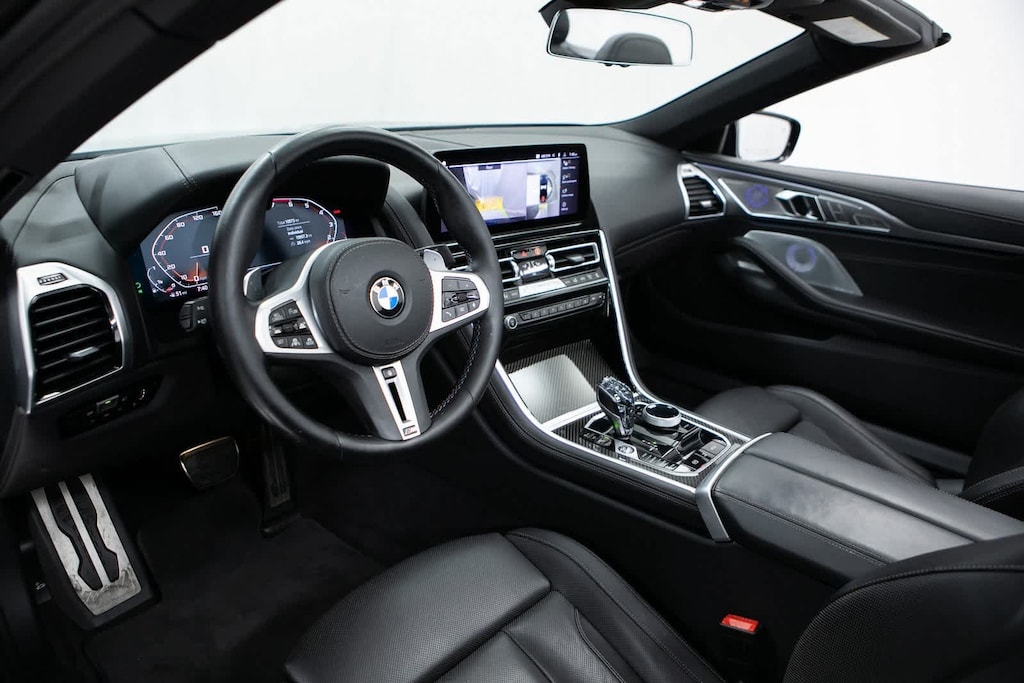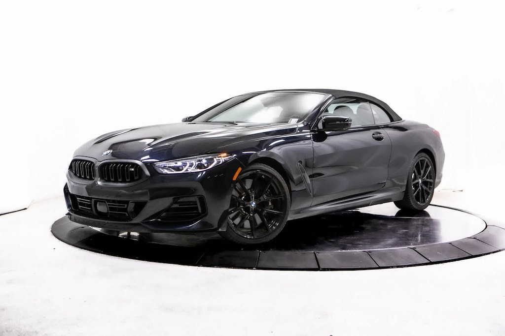 CARFAX One-Owner. Clean CARFAX. 16 Speakers, 4-Wheel Disc Brakes, ABS brakes, Active Blind Spot Detection, Active Driving Assistant Pro, Active Park Distance Control, Adaptive suspension, Air Conditioning, Alloy wheels, AM/FM radio: SiriusXM, Apple CarPlay & Android Auto Compatibility, Auto High-beam Headlights, Auto tilt-away steering wheel, Auto-dimming door mirrors, Auto-dimming Rear-View mirror, Automatic temperature control, BMW Assist eCall, BMW TeleServices, Bowers & Wilkins Diamond Surround Sound System, Brake assist, Bumpers: body-color, Carbon Fiber Trim, Connected Package Pro, ConnectedDrive Services, Convertible roof lining, Convertible roof wind blocker, Delay-off headlights, Door auto-latch, Driver door bin, Driver vanity mirror, Dual front impact airbags, Dual front side impact airbags, Electronic Stability Control, Emergency communication system: BMW Assist eCall, Enhanced USB & Bluetooth, Extended Merino Leather Upholstery, Extended Shadowline Trim, Extended Traffic Jam Assistant, Exterior Parking Camera Rear, Four wheel independent suspension, Front anti-roll bar, Front Bucket Seats, Front Center Armrest, Front dual zone A/C, Front reading lights, Front Ventilated Seats, Fully automatic headlights, Garage door transmitter, Glass Controls, Glass rear window, harman/kardon Surround Sound System, harman/kardon® Speakers, Heads-Up Display, Heated door mirrors, Heated front seats, Heated Front Seats, Armrests & Steering Wheel, Heated steering wheel, Illuminated entry, Integrated roll-over protection, Leather Shift Knob, Leather steering wheel, Live Cockpit Pro w/Navi, Low tire pressure warning, M Shadowline Lights, M Sport Brakes w/Black Calipers, Memory seat, Moonlight Black SoftTop, Multi-Functional Seats, Navigation System, Neck Warmer, Occupant sensing airbag, Outside temperature display, Panic alarm, Parking Assistant Plus, Passenger door bin, Passenger vanity mirror, Power convertible roof, Power door mirrors, Power driver seat, Power passenger seat, Power steering, Power windows, Radio data system, Radio: AM/FM Audio System, Rain sensing wipers, Rear anti-roll bar, Rear window defroster, Rear-View Camera, Remote keyless entry, Security system, SiriusXM Satellite Radio w/1 Year Subscription, Speed control, Speed-sensing steering, Speed-Sensitive Wipers, Split folding rear seat, Sport steering wheel, Steering wheel memory, Steering wheel mounted audio controls, Surround View w/3D View, Tachometer, Telescoping steering wheel, Tilt steering wheel, Traction control, Trip computer, Turn signal indicator mirrors, Variably intermittent wipers, Ventilated front seats, Wheels: 20 x 8 Fr & 20 x 9 Rr Double Spoke, Wheels: 20 x 8 Fr & 20 x 9 Rr M V-Spoke, WiFi Hotspot, Wireless Charging. Carbon Black Metallic 2024 BMW 8 Series M850i xDrive M850i xDrive AWD 8-Speed Automatic Sport 4.4L V8 32V TwinPower Turbo